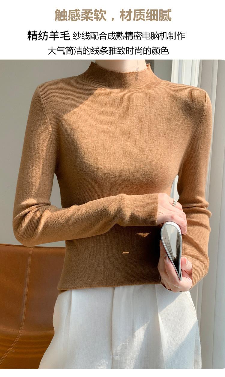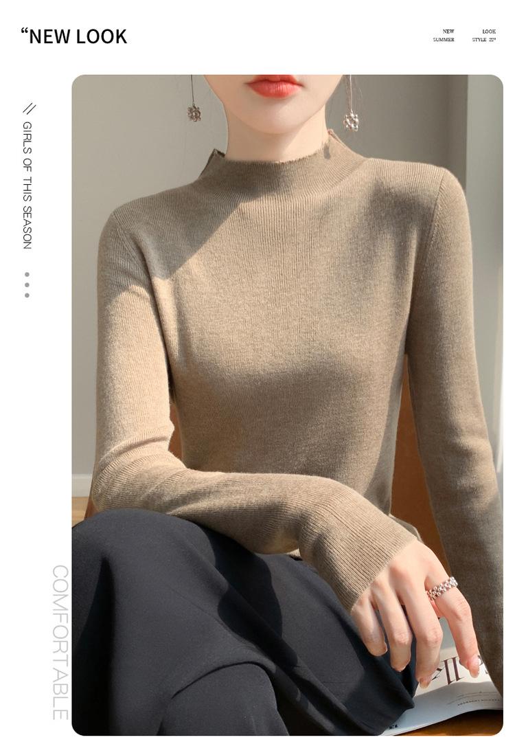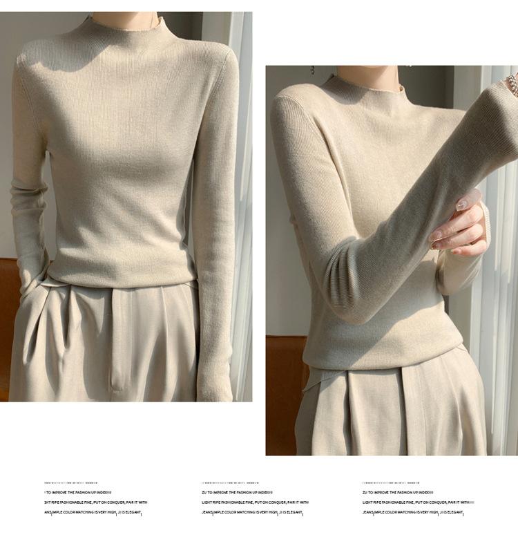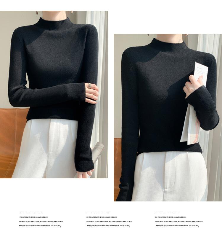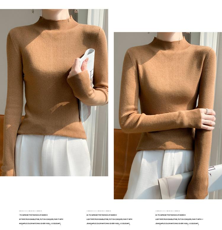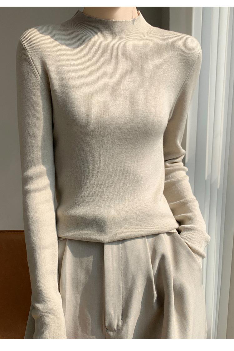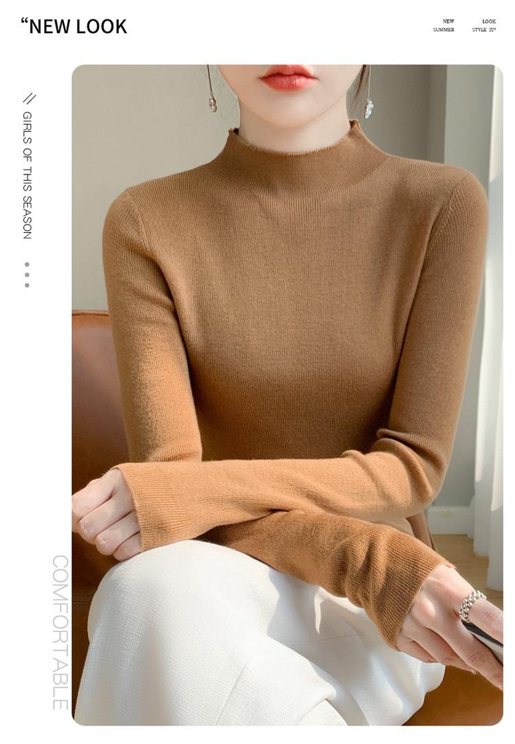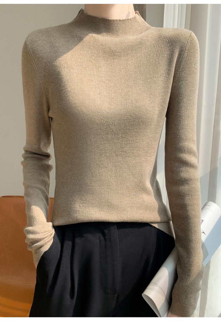 Lana Peinada Suave Cera 2025 Otoño e Invierno Nuevo Suéter Corto para Mujer Estilo Coreano Cuello Medio Alto Color Puro Ajustado Tejido para Fondo