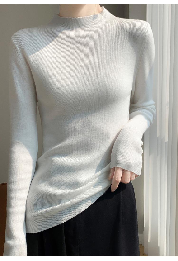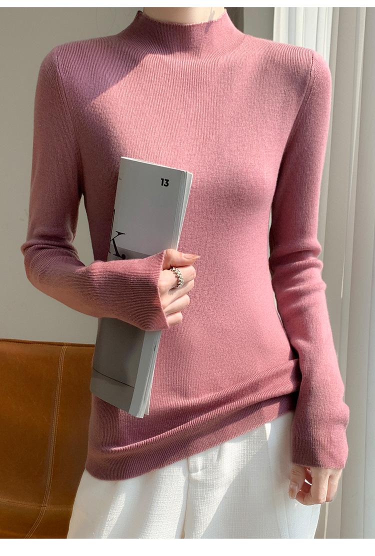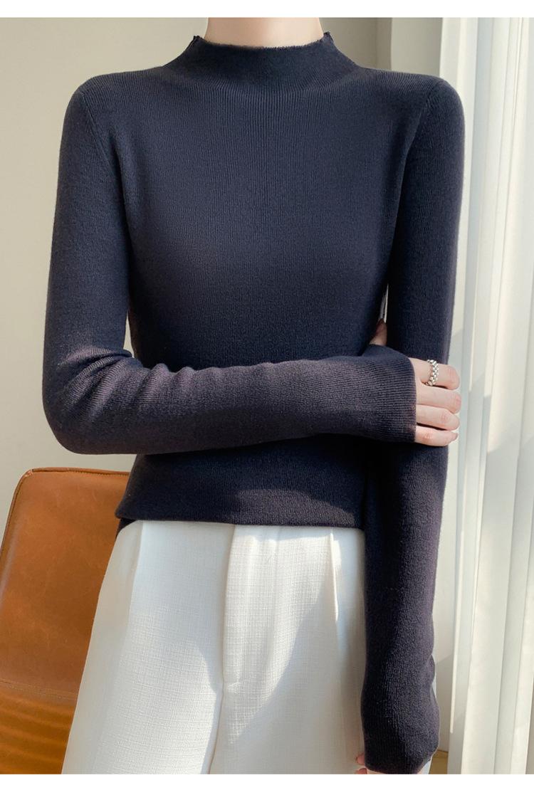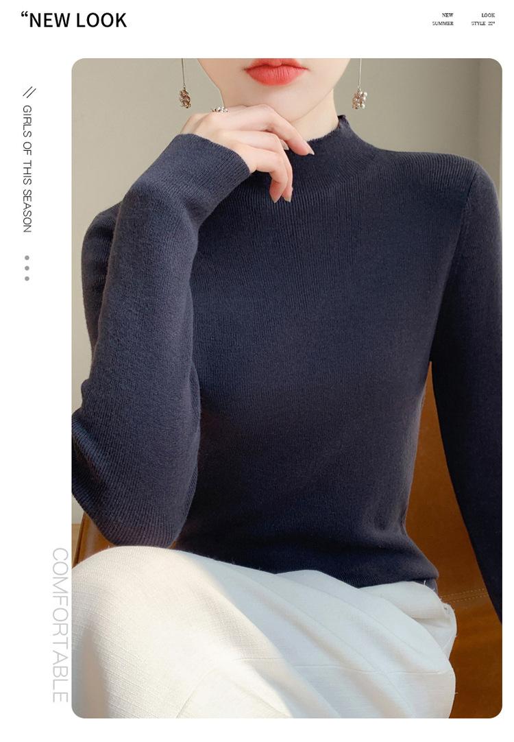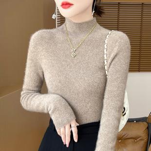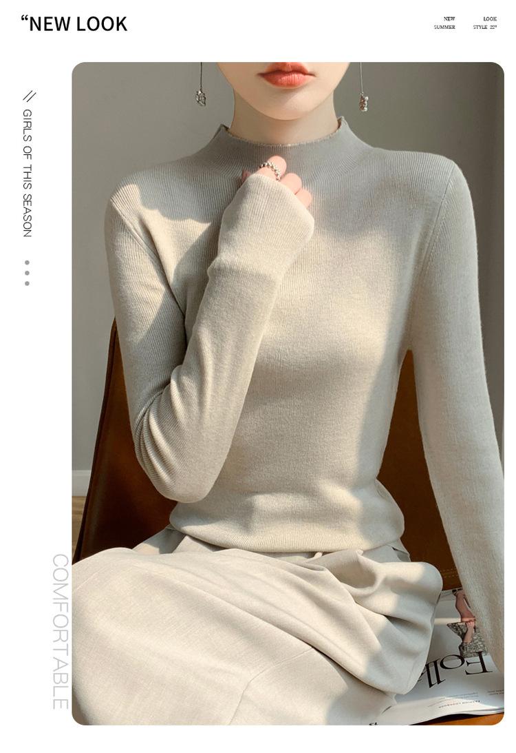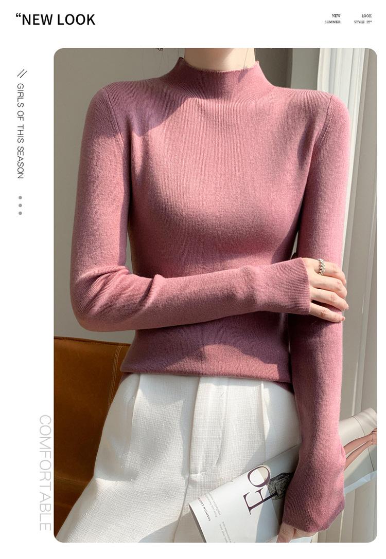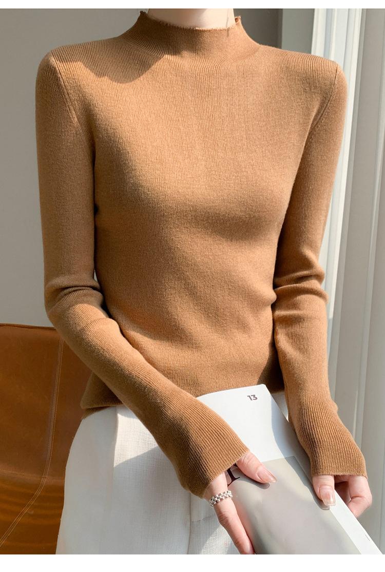 Lana Peinada Suave Cera 2025 Otoño e Invierno Nuevo Suéter Corto para Mujer Estilo Coreano Cuello Medio Alto Color Puro Ajustado Tejido para Fondo