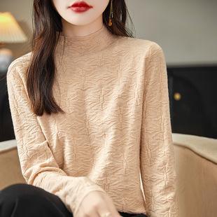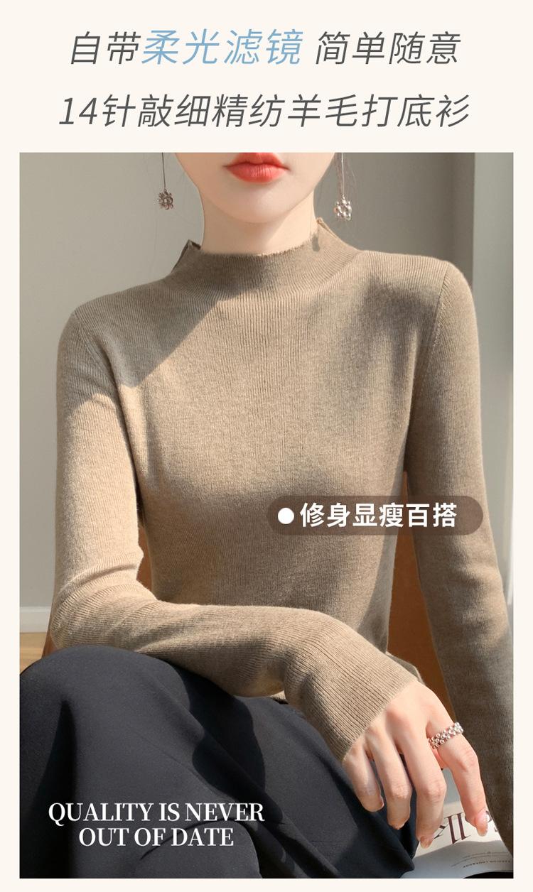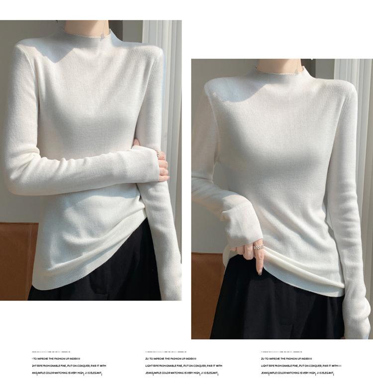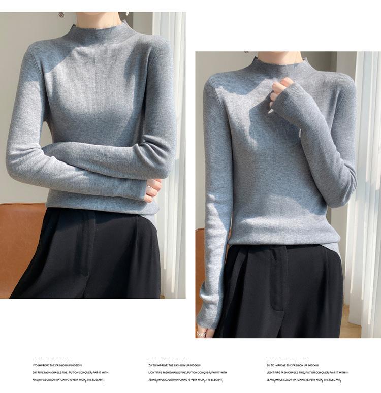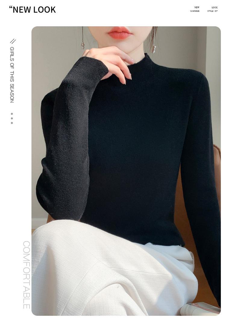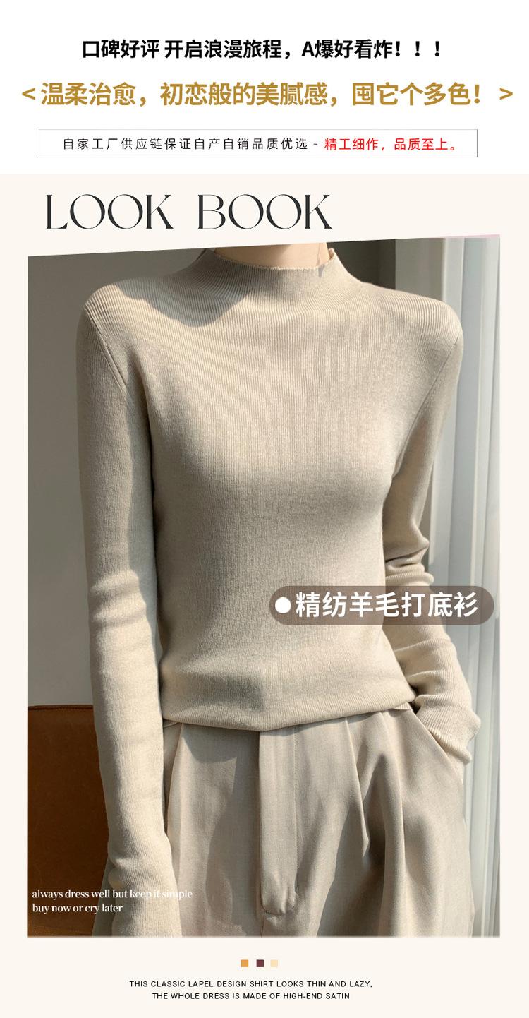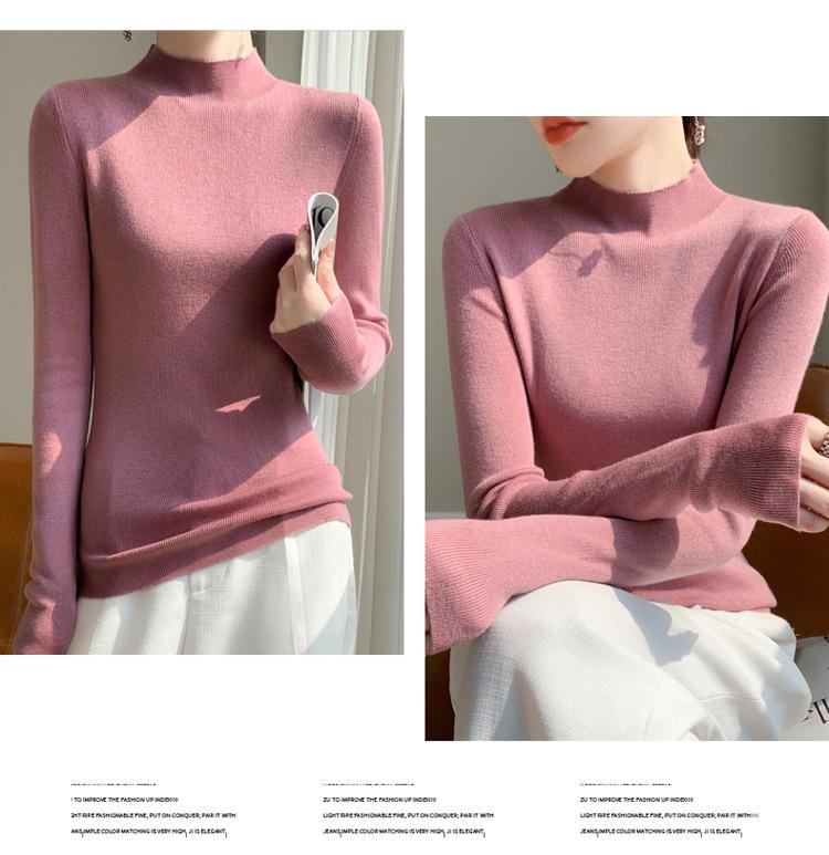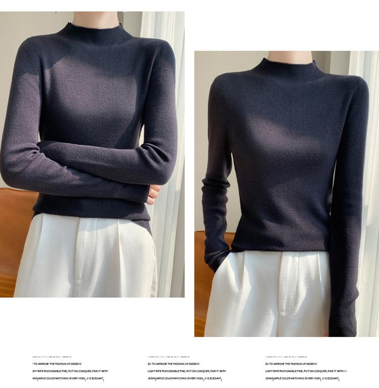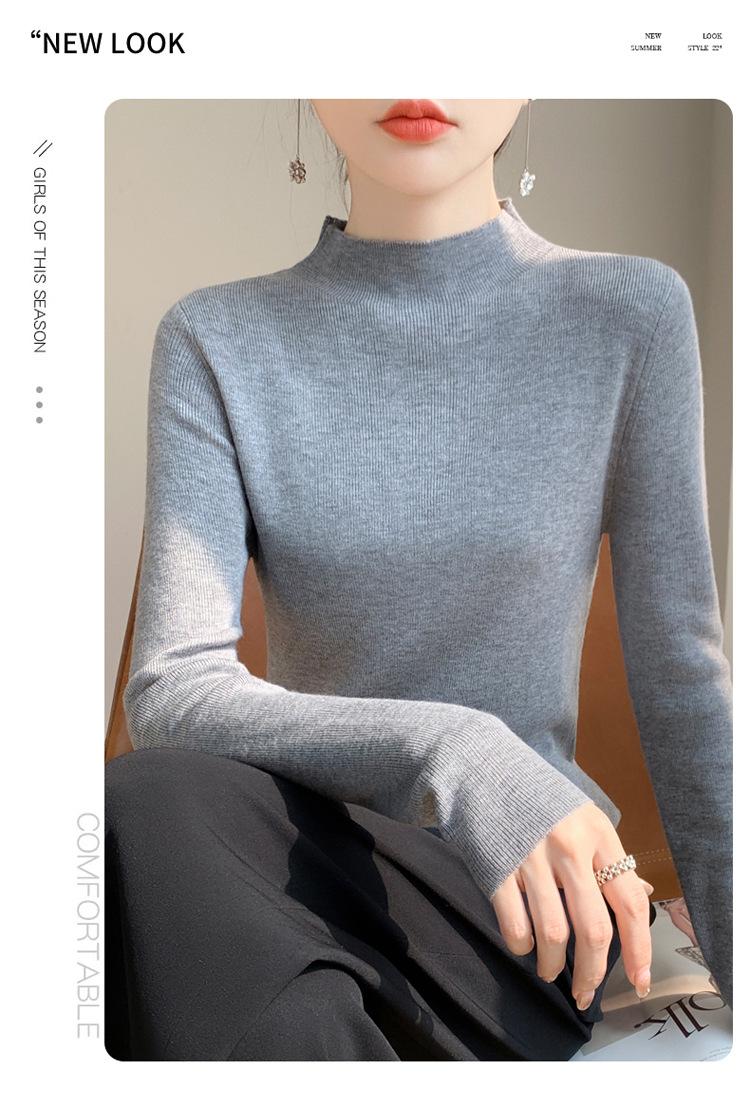 Lana Peinada Suave Cera 2025 Otoño e Invierno Nuevo Suéter Corto para Mujer Estilo Coreano Cuello Medio Alto Color Puro Ajustado Tejido para Fondo