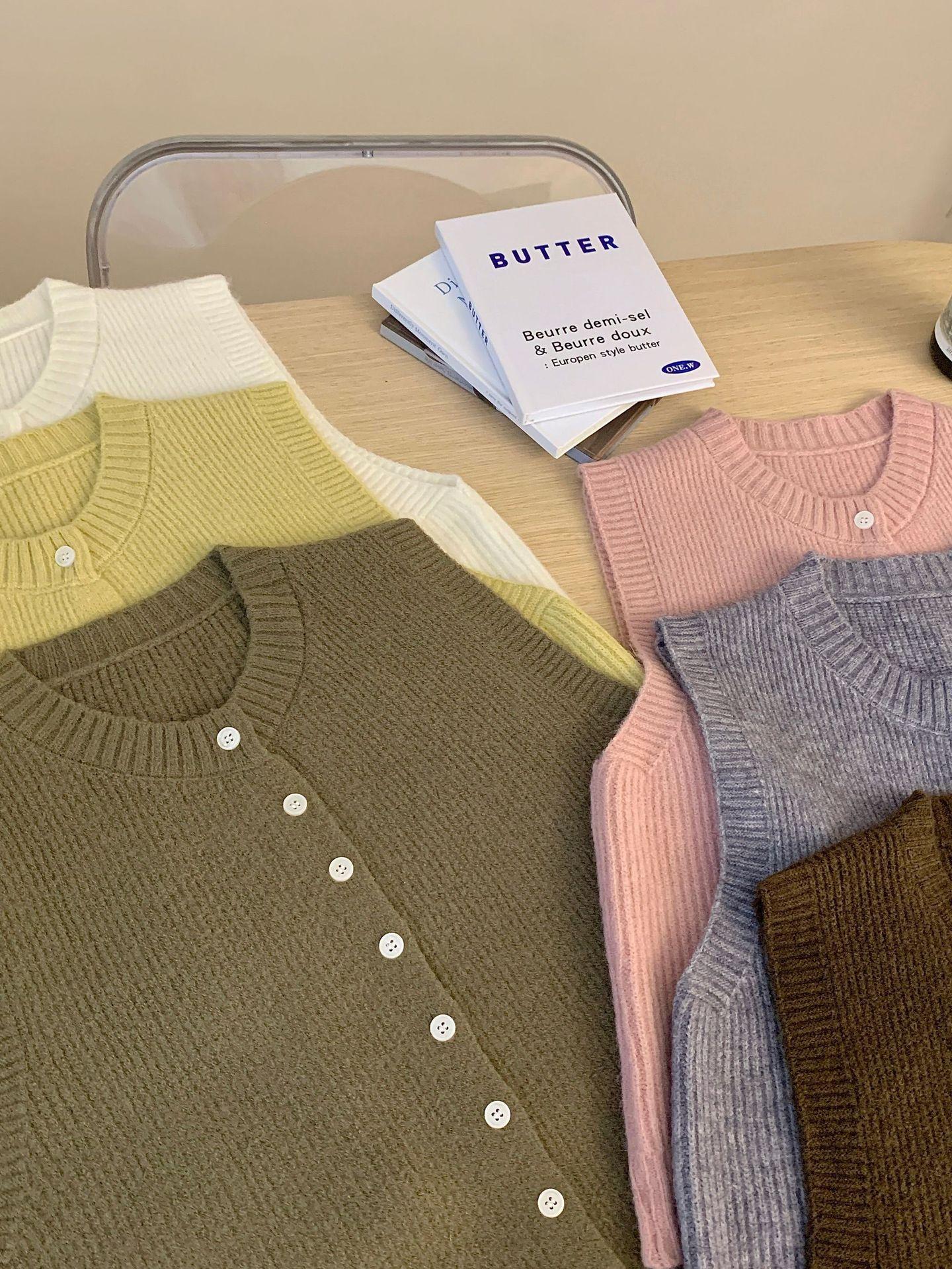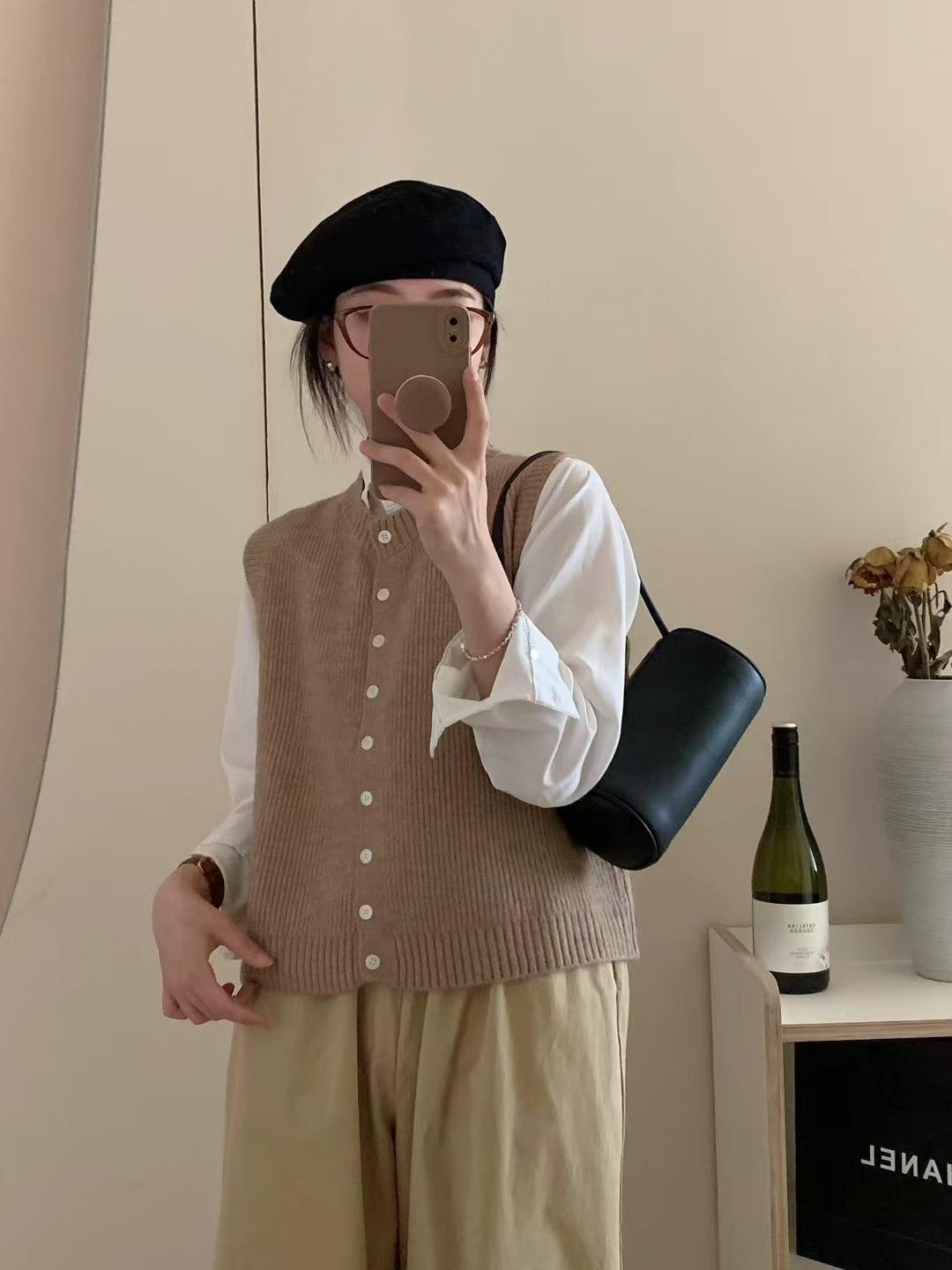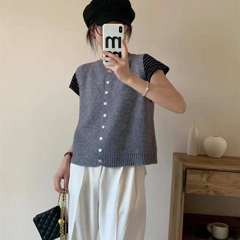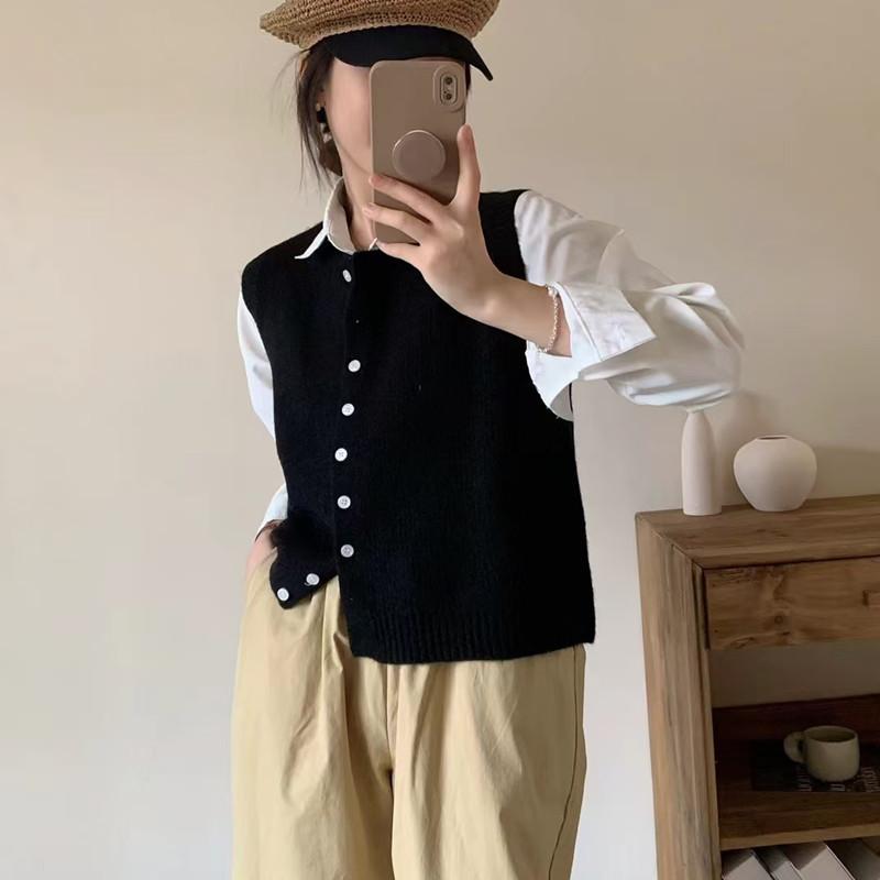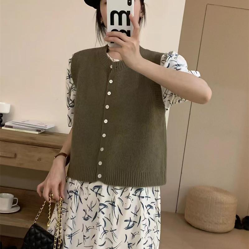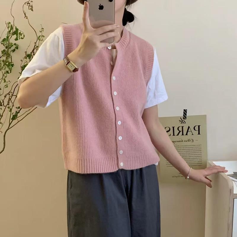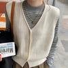 Chaleco de punto estilo coreano para mujer, suéter sin mangas con cuello redondo, holgado, de color sólido, para primavera y otoño, 2024