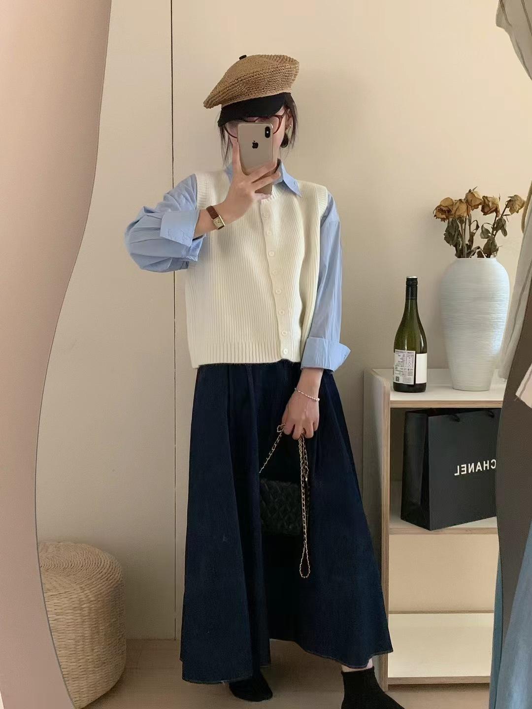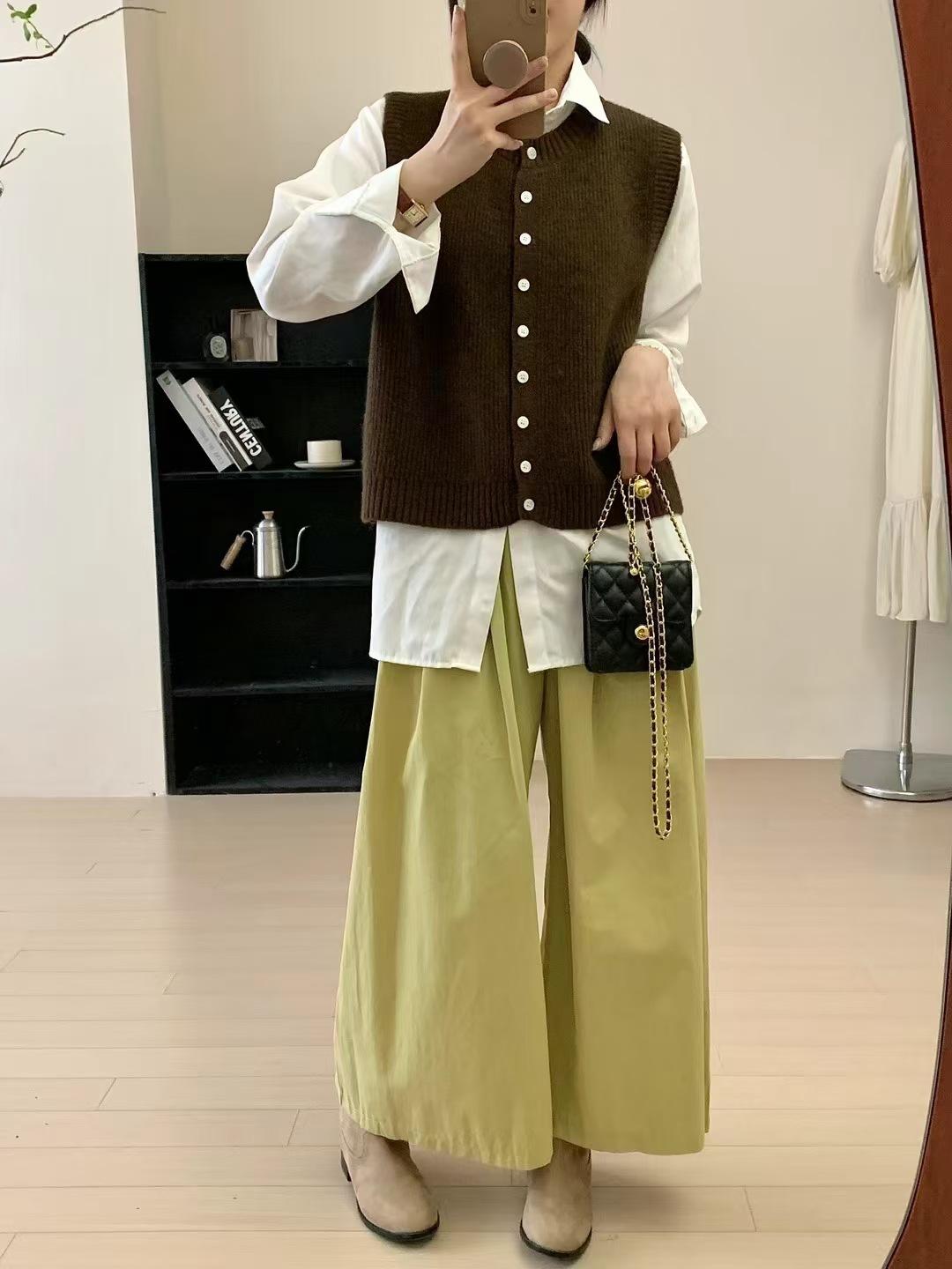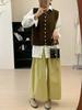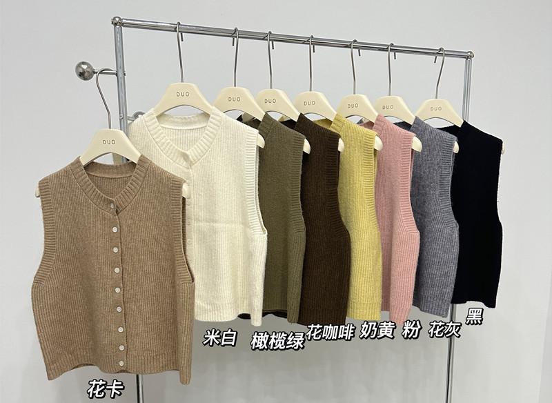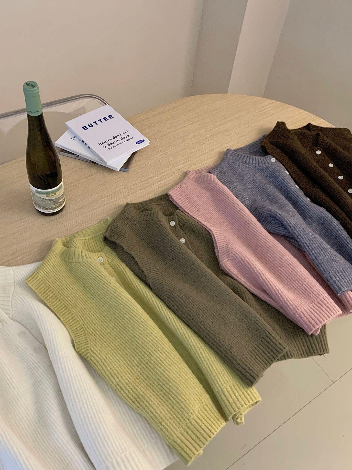 Chaleco de punto estilo coreano para mujer, suéter sin mangas con cuello redondo, holgado, de color sólido, para primavera y otoño, 2024
