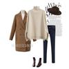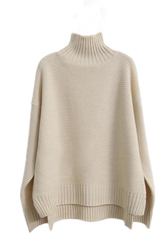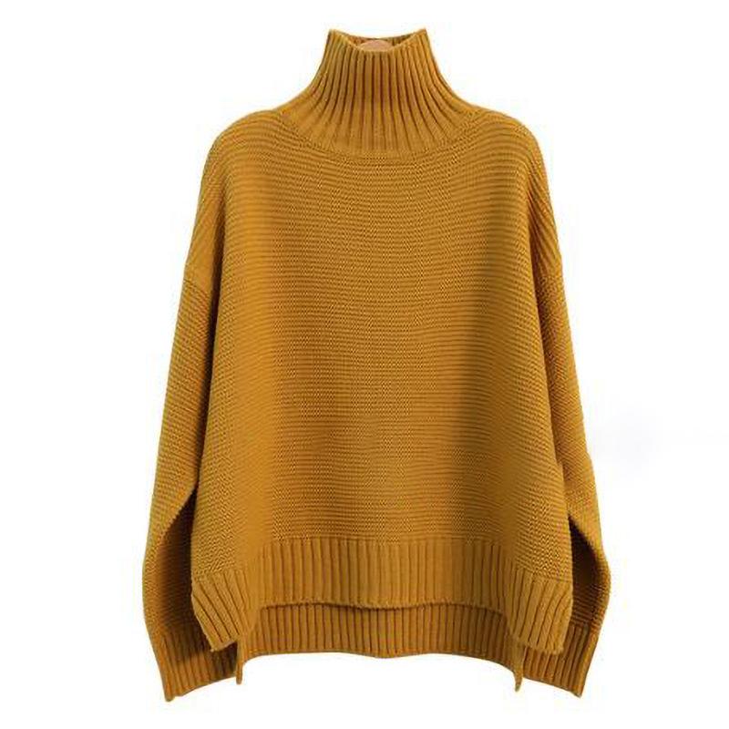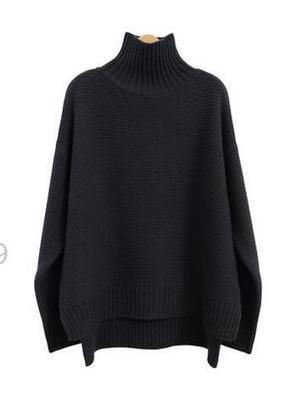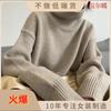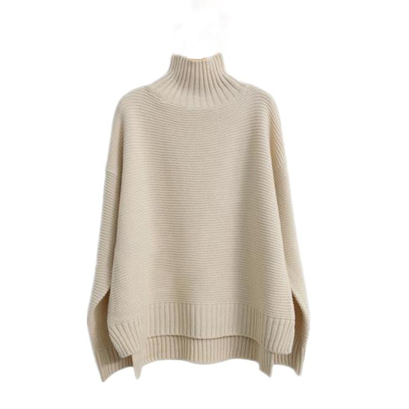 Suéter de Cachemira Europeo y Americano de Otoño e Invierno para Mujer Suéter de Cuello Alto Estilo Holgazán Suelto de Punto Suéter Base Camisa Gruesa Irregular