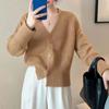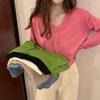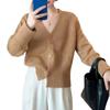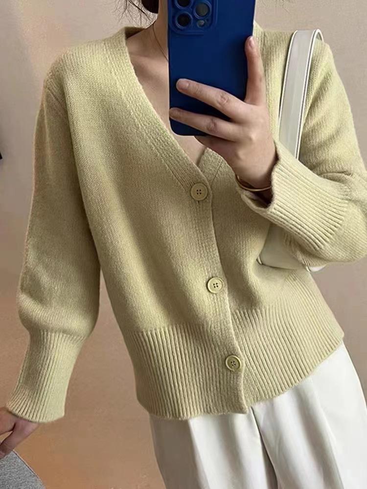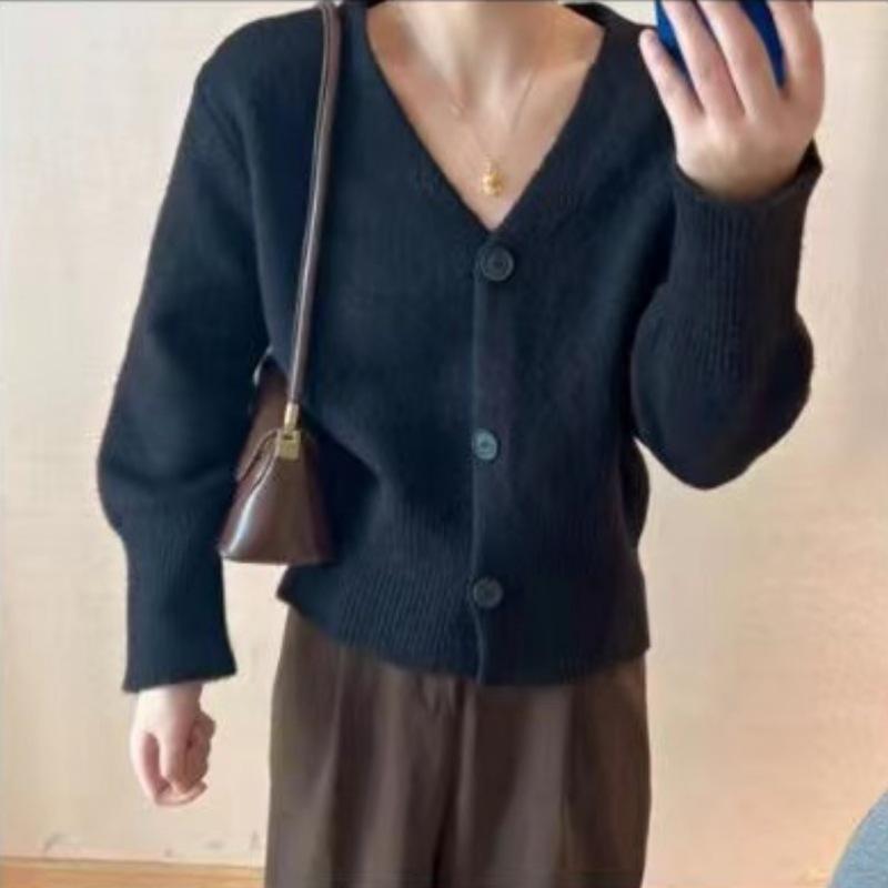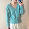 Estilo Coreano Cuello en V Color Puro Tejido de Punto Prendas de Punto Tops para Mujer 2024 Otoño e Invierno Nuevo Estilo Estilo Relajado Chaqueta Holgada Versátil para Mujer