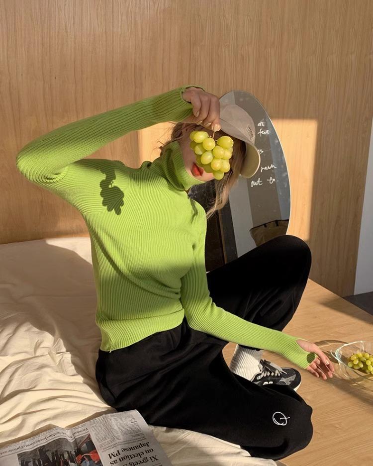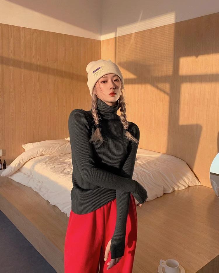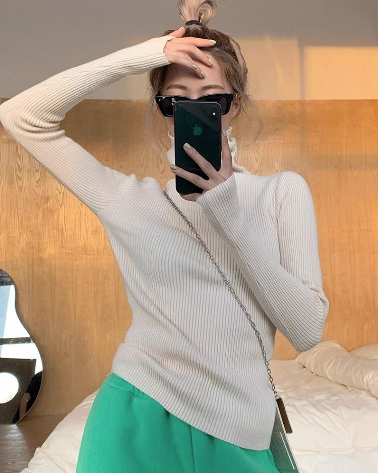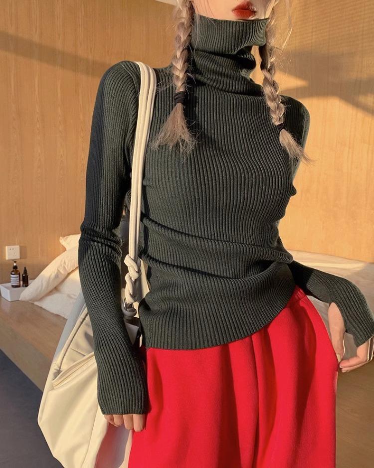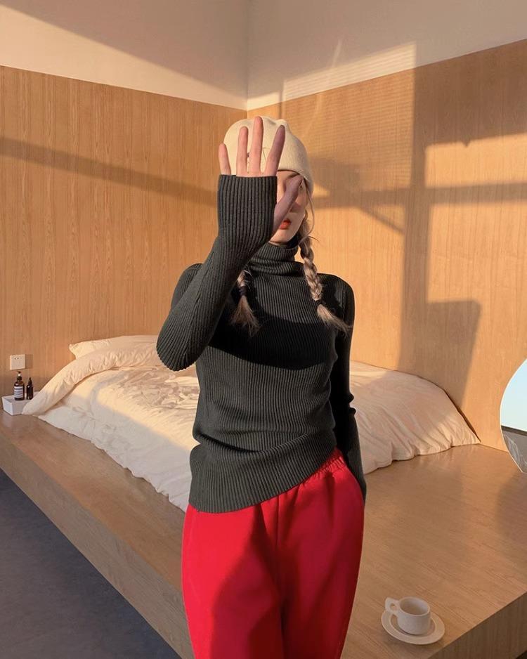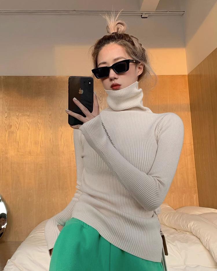 Suéter de Cuello Alto Dui Dui Invierno Engrosado Dedo Suéter para Mujer Otoño e Invierno Nuevo Estilo Camisa de Fondo Tejida Estilo Occidental Más Fácil de Combinar Top