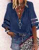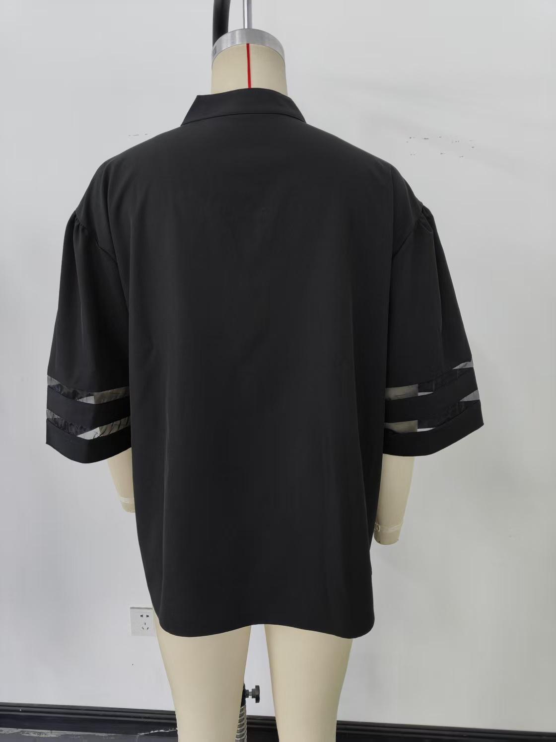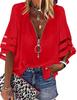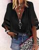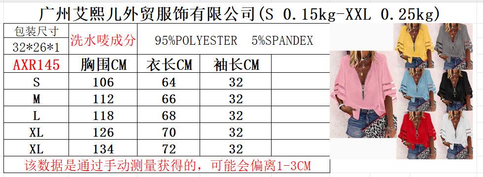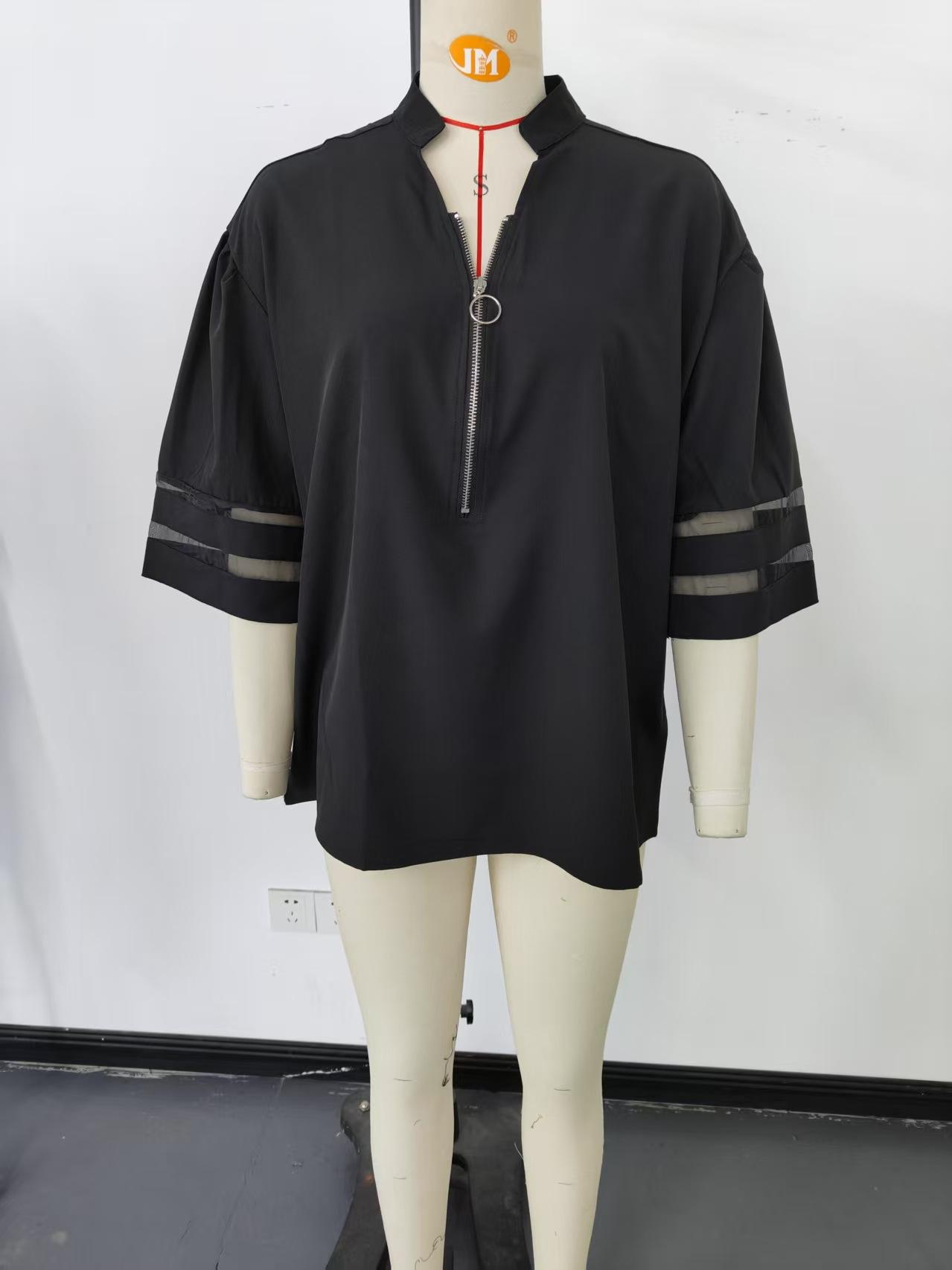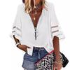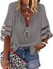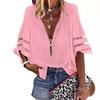 Camisa Nueva Europea y Americana de Amazon 2025 con Cremallera y Cuello en V, Manga Media Acampanada, Costuras de Malla, Camisa Casual Holgada para Mujer