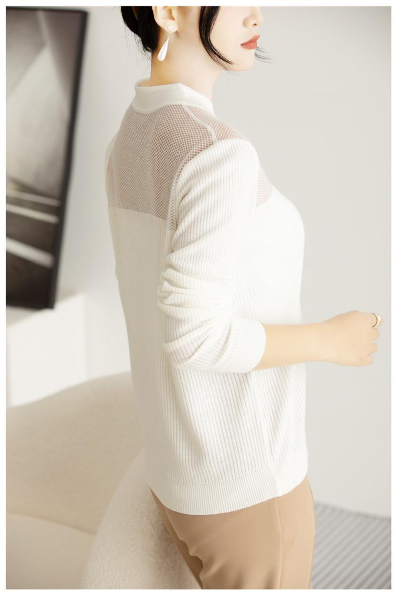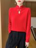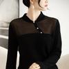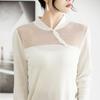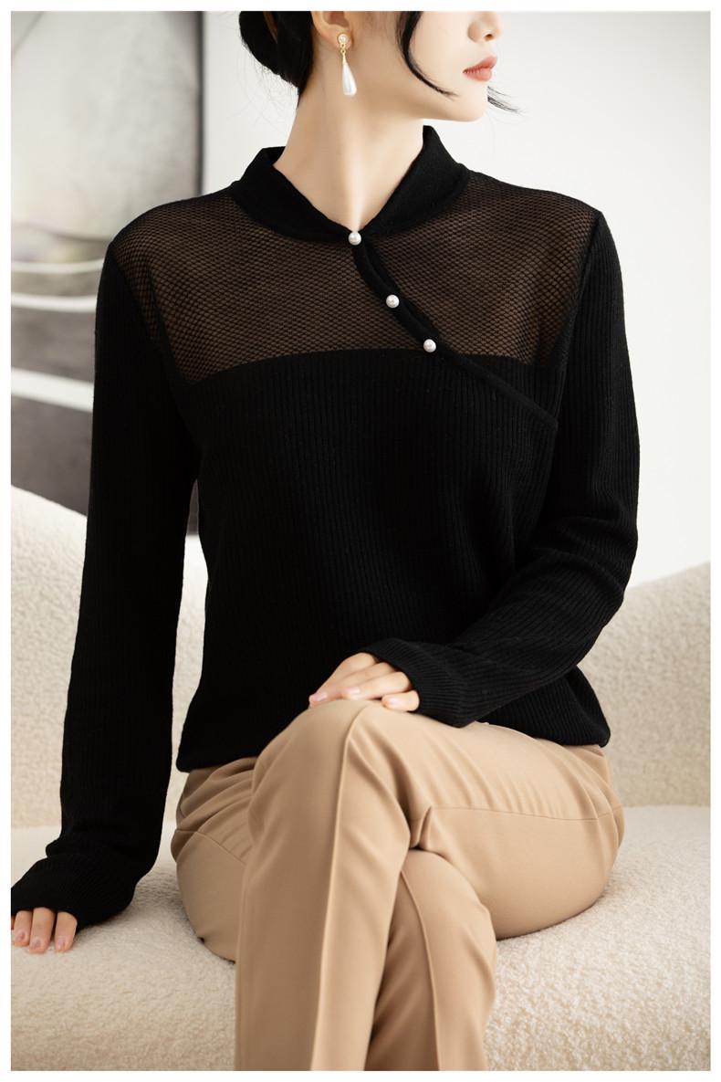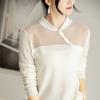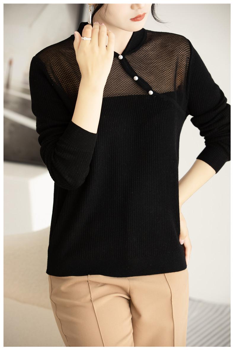 Suéter de Punto con Botones Estilo Chino para Mujer, Delgado Modelo Nuevo de Otoño, Suéter Camisa Base de Lana Organza Calado para Mujer