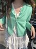 Suéter cárdigan de manga larga exterior de estilo coreano nuevo de buena calidad 2023 para mujer, tejido suave y encerado, abrigo fino, camisa con aire acondicionado
