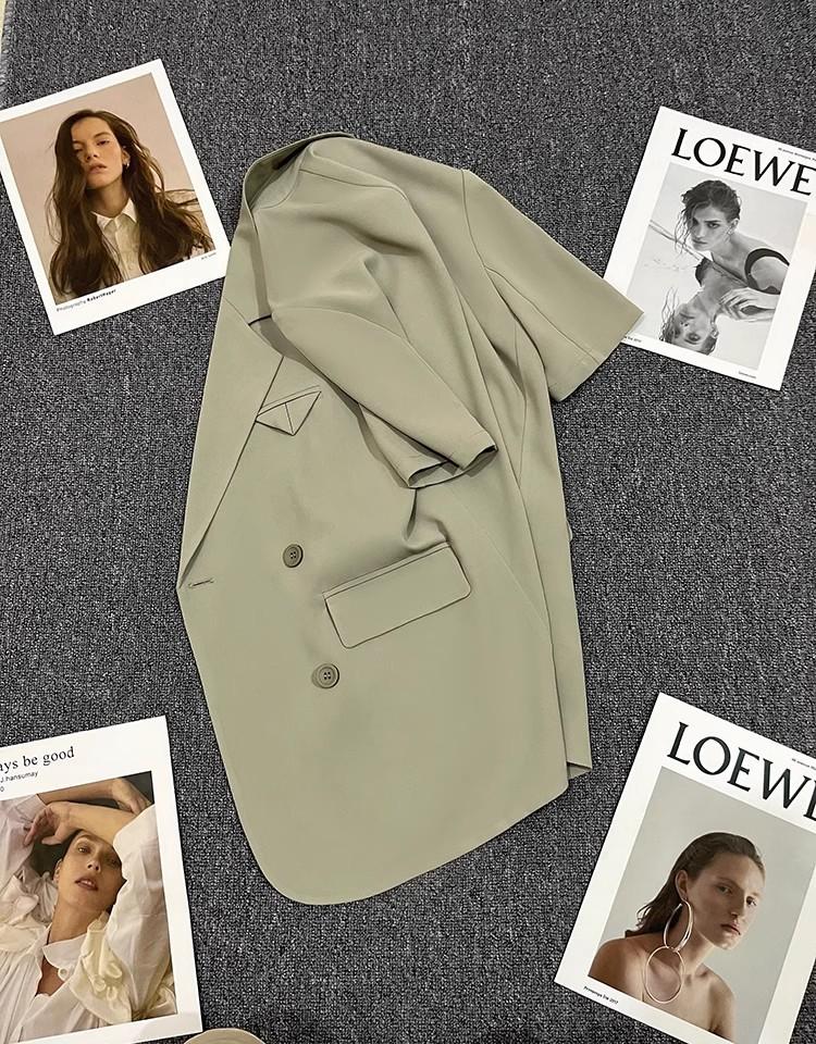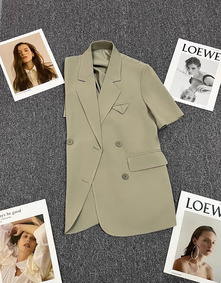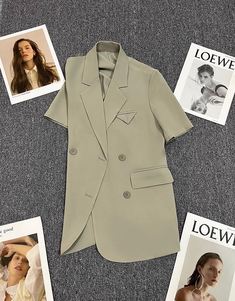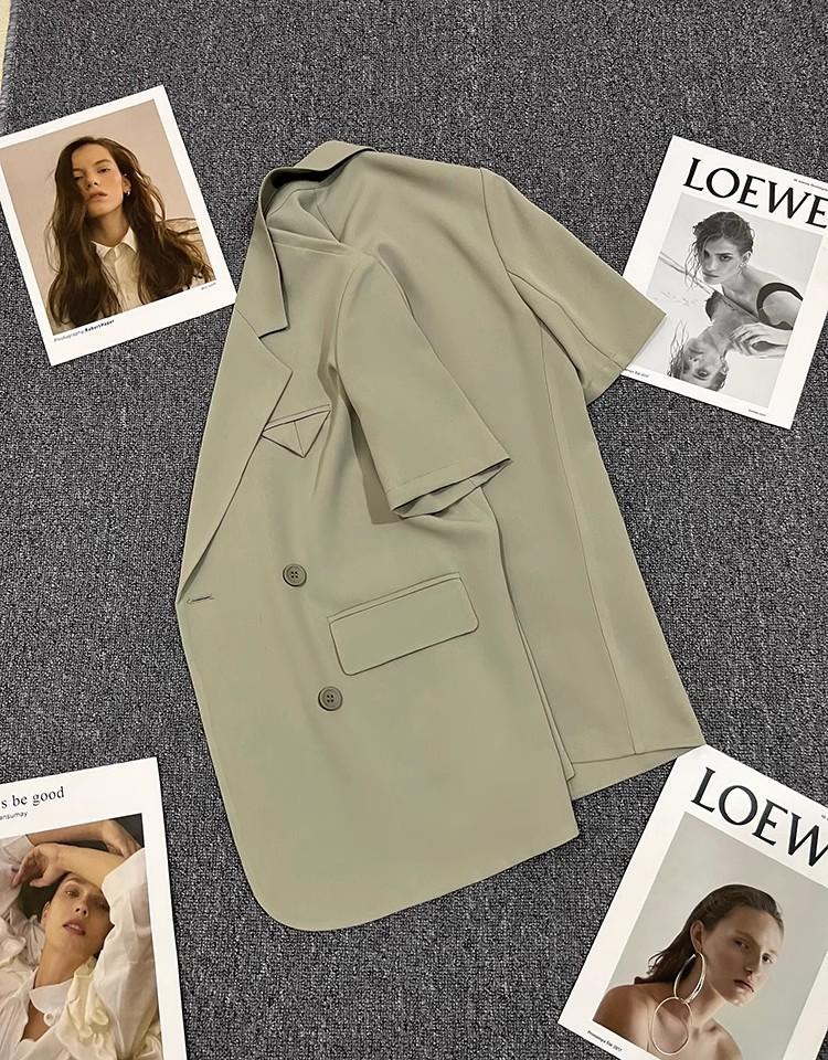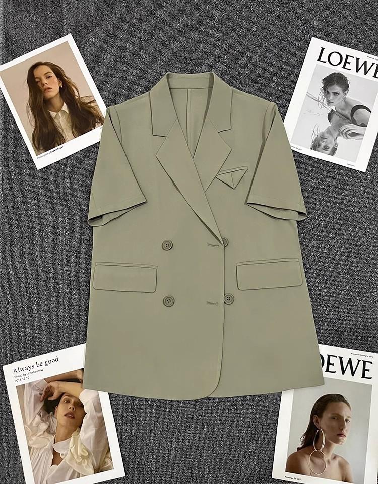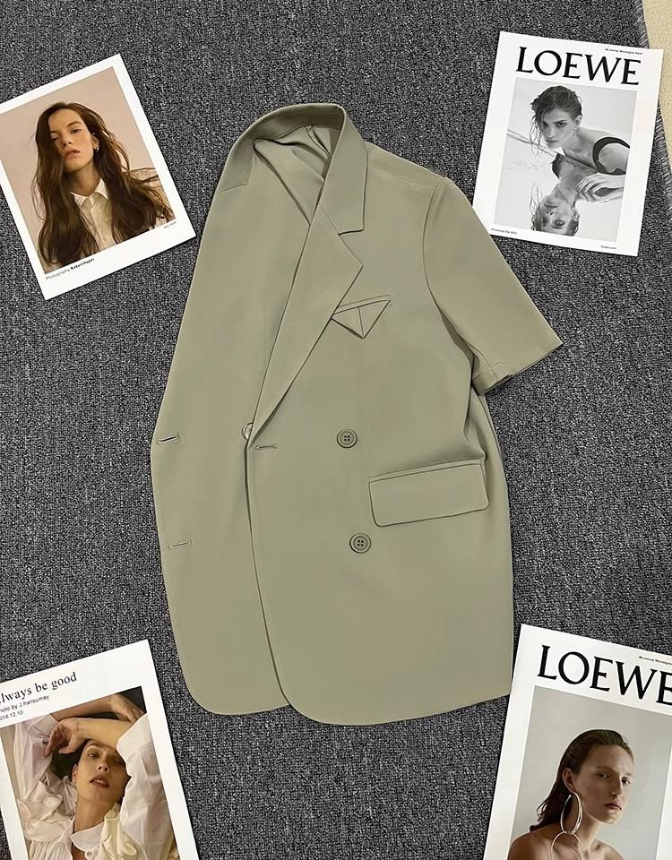 Blazer Delgado Verde Retro para Mujer 2023 Verano Nuevo Diseño Casual Moda Temperamento Nicho Traje