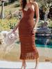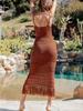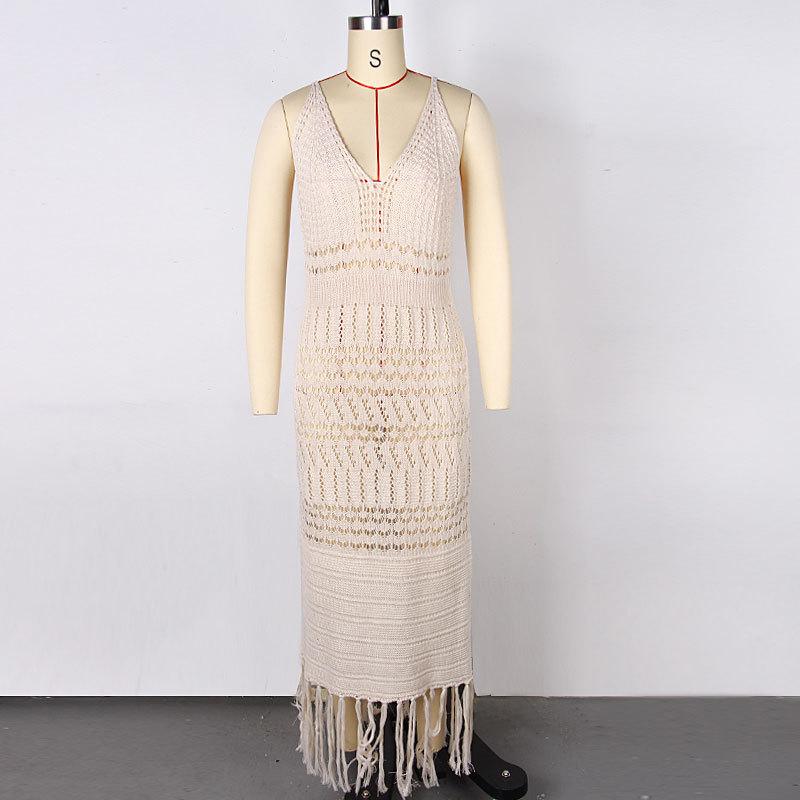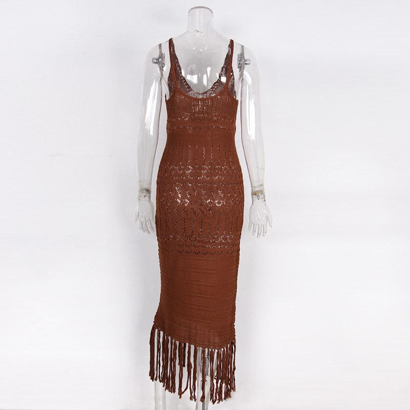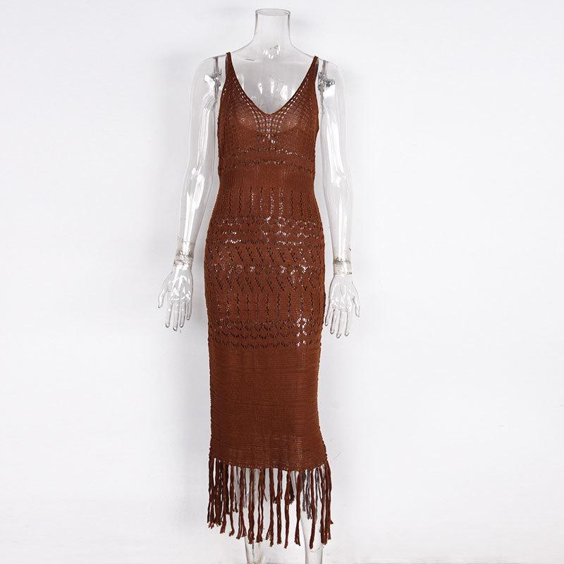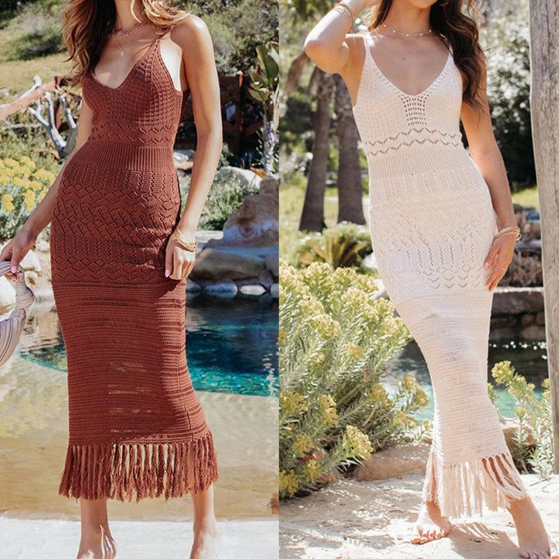 Amazon Europeo y Americano Transfronterizo Sexy Tejido Calado Borla Encubrimiento de Playa Bikini Traje de Baño Falda de Playa Camisa Protección Solar