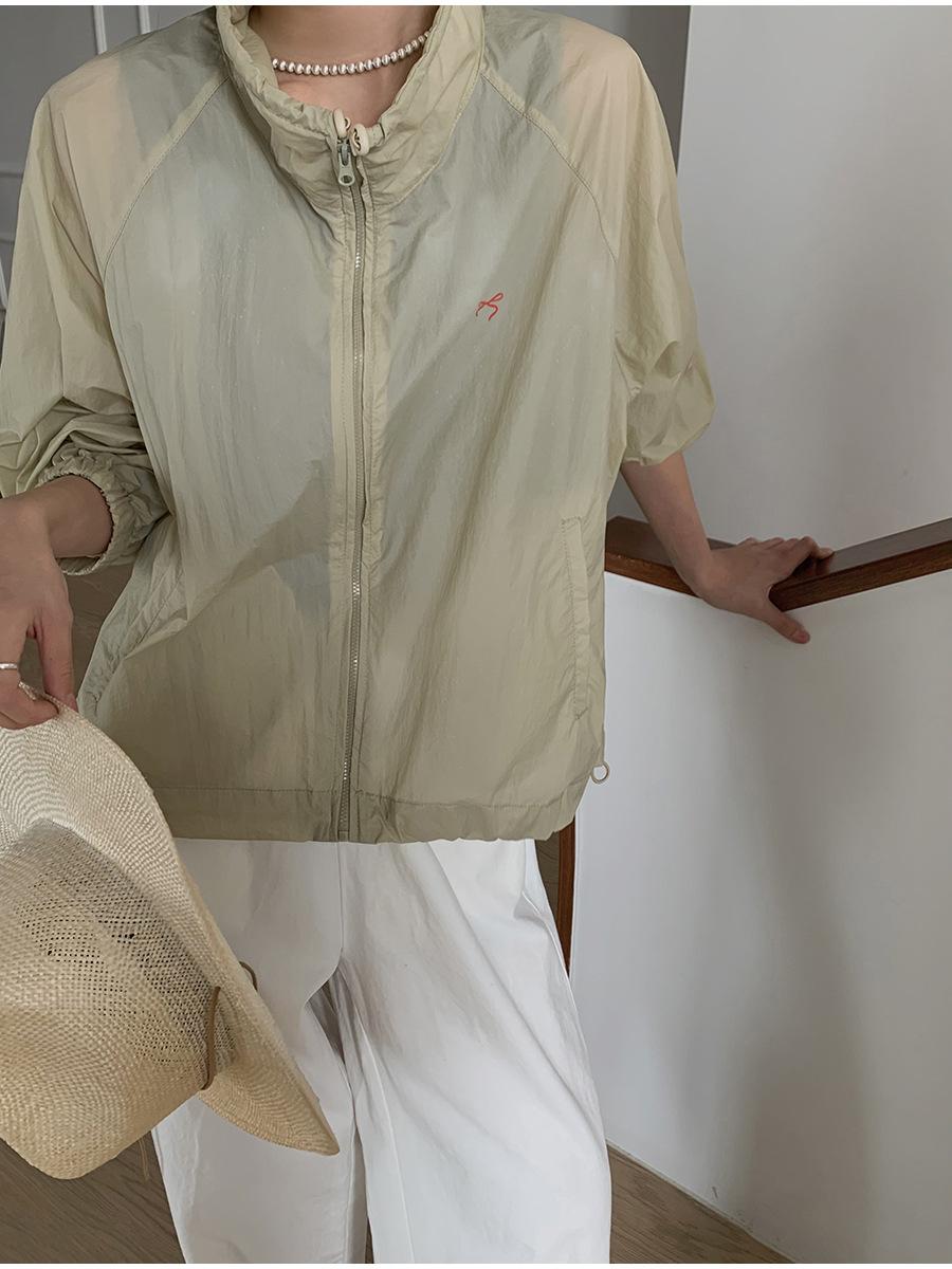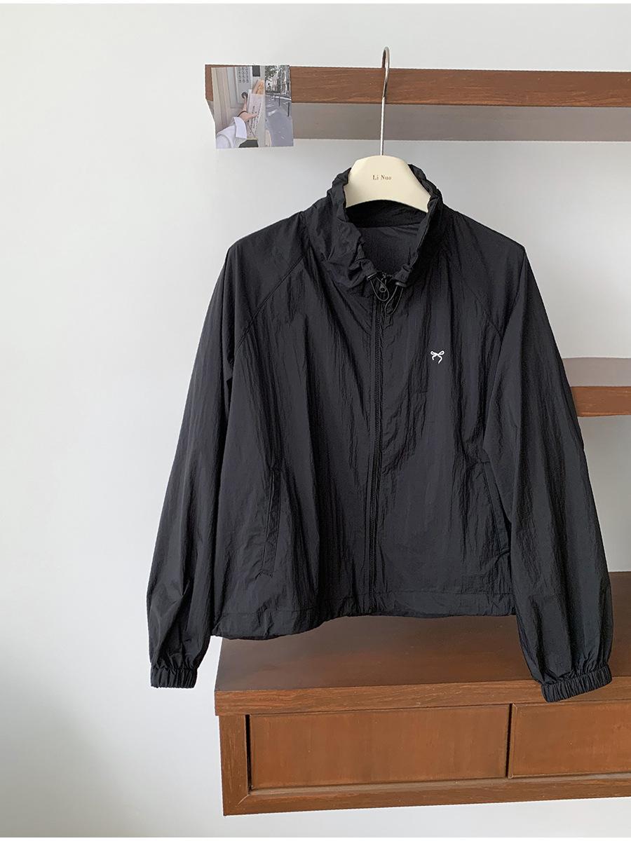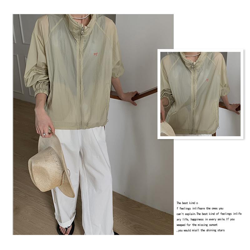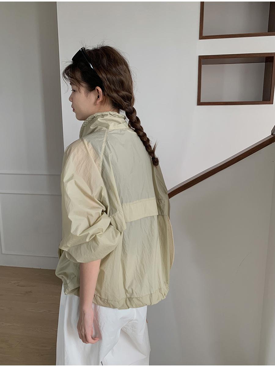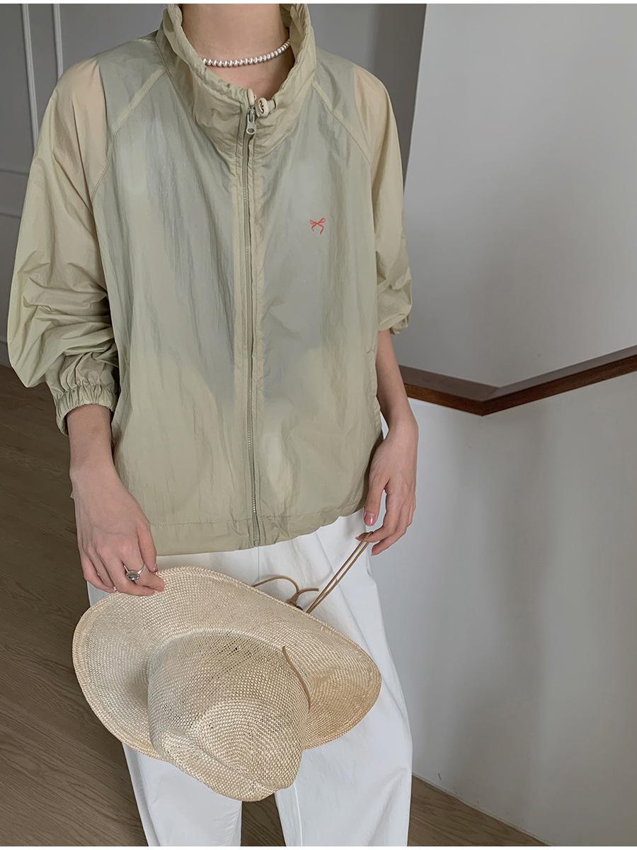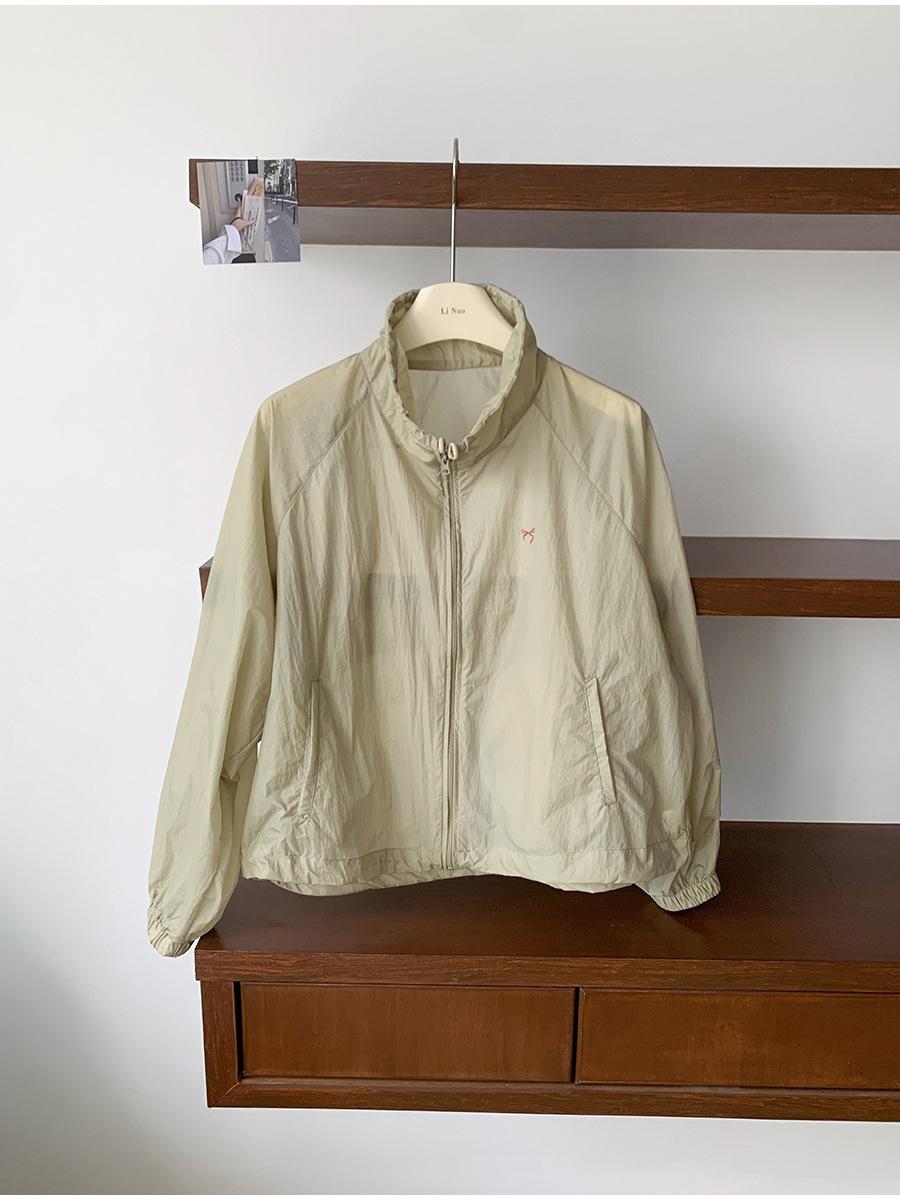 Lino Senderismo Exterior Cuello Alto Chaqueta Protección Solar para Mujer 2025 Verano Nuevo Casual Suelta Estampada Cremallera Chaqueta