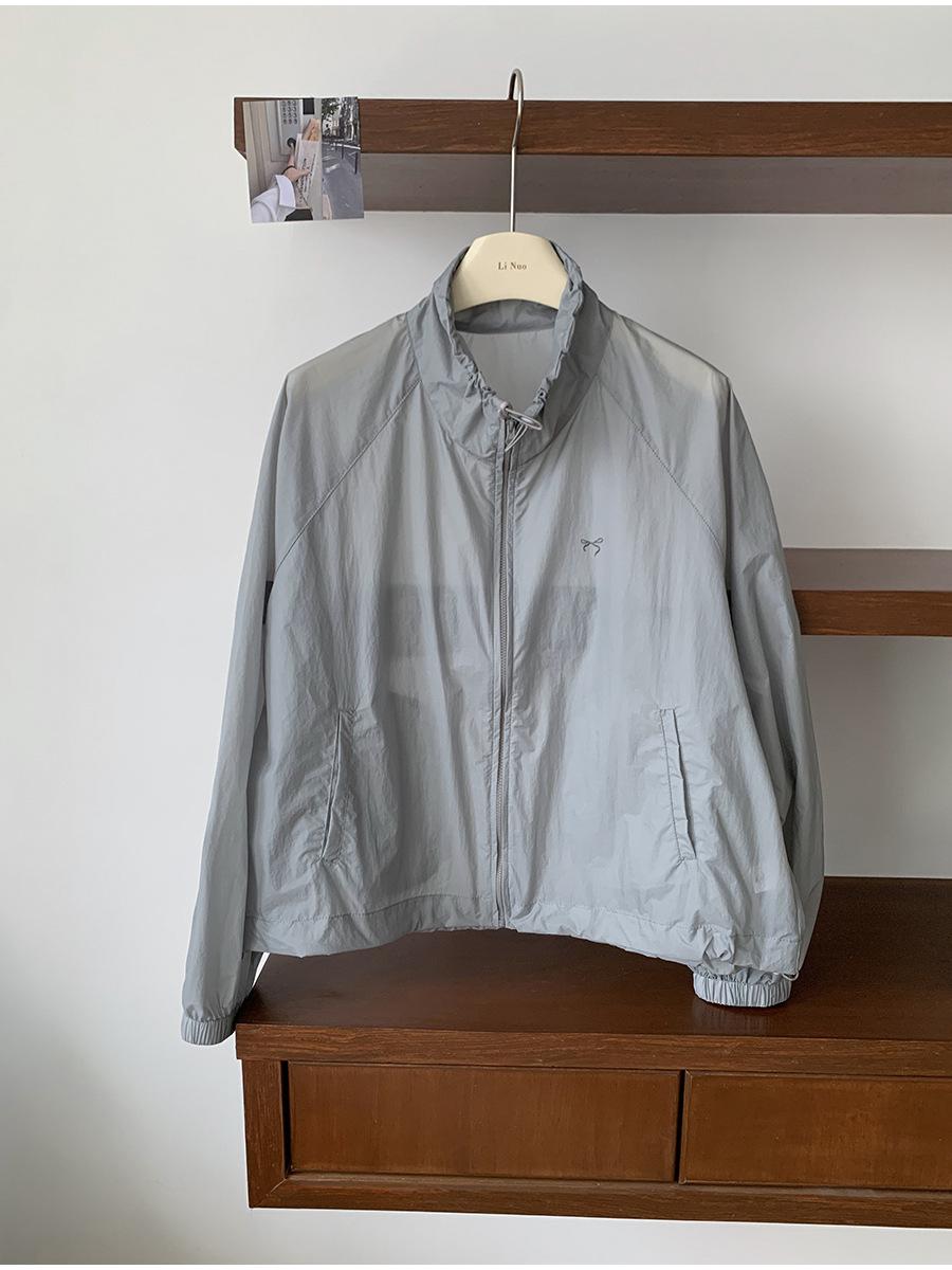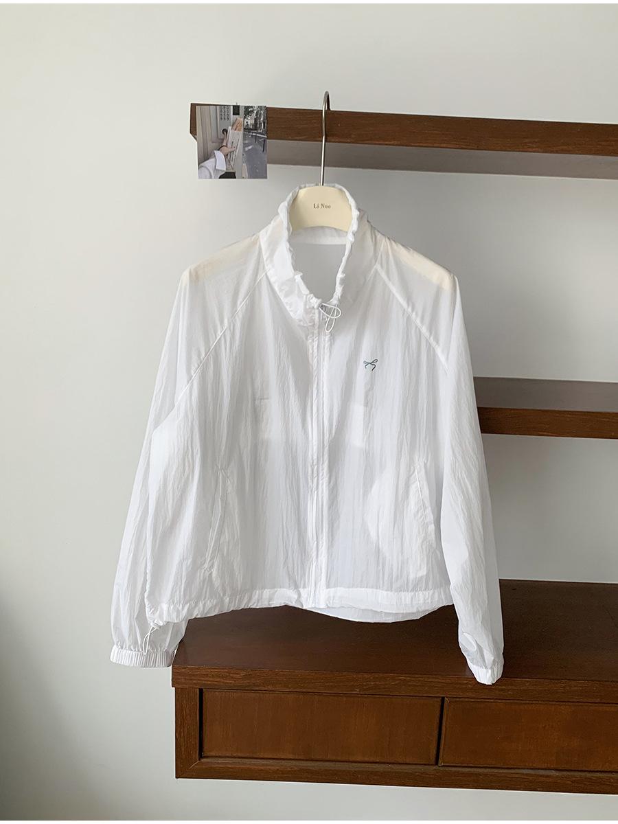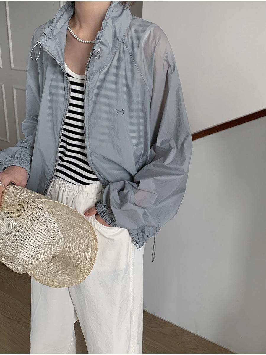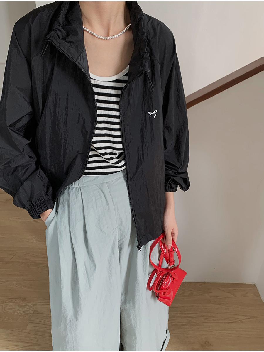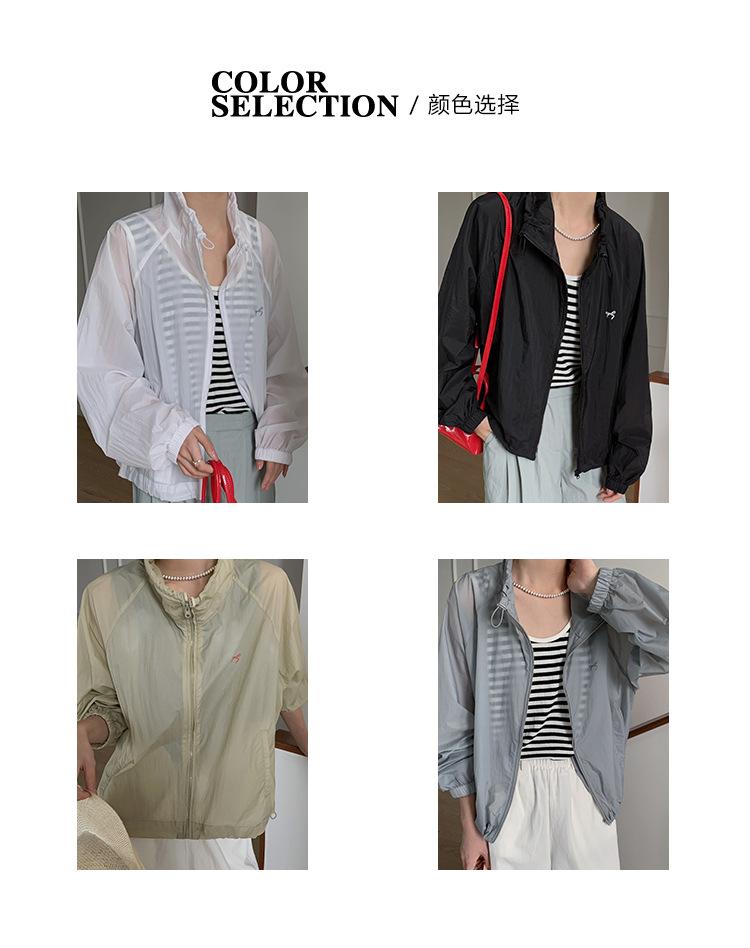 Lino Senderismo Exterior Cuello Alto Chaqueta Protección Solar para Mujer 2025 Verano Nuevo Casual Suelta Estampada Cremallera Chaqueta