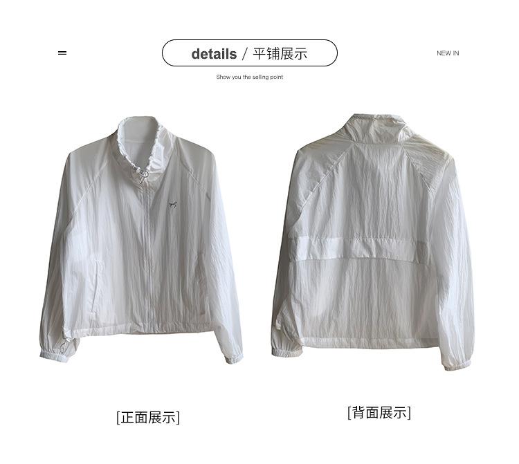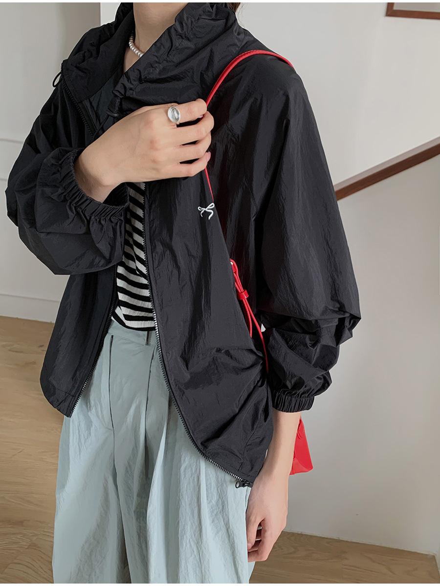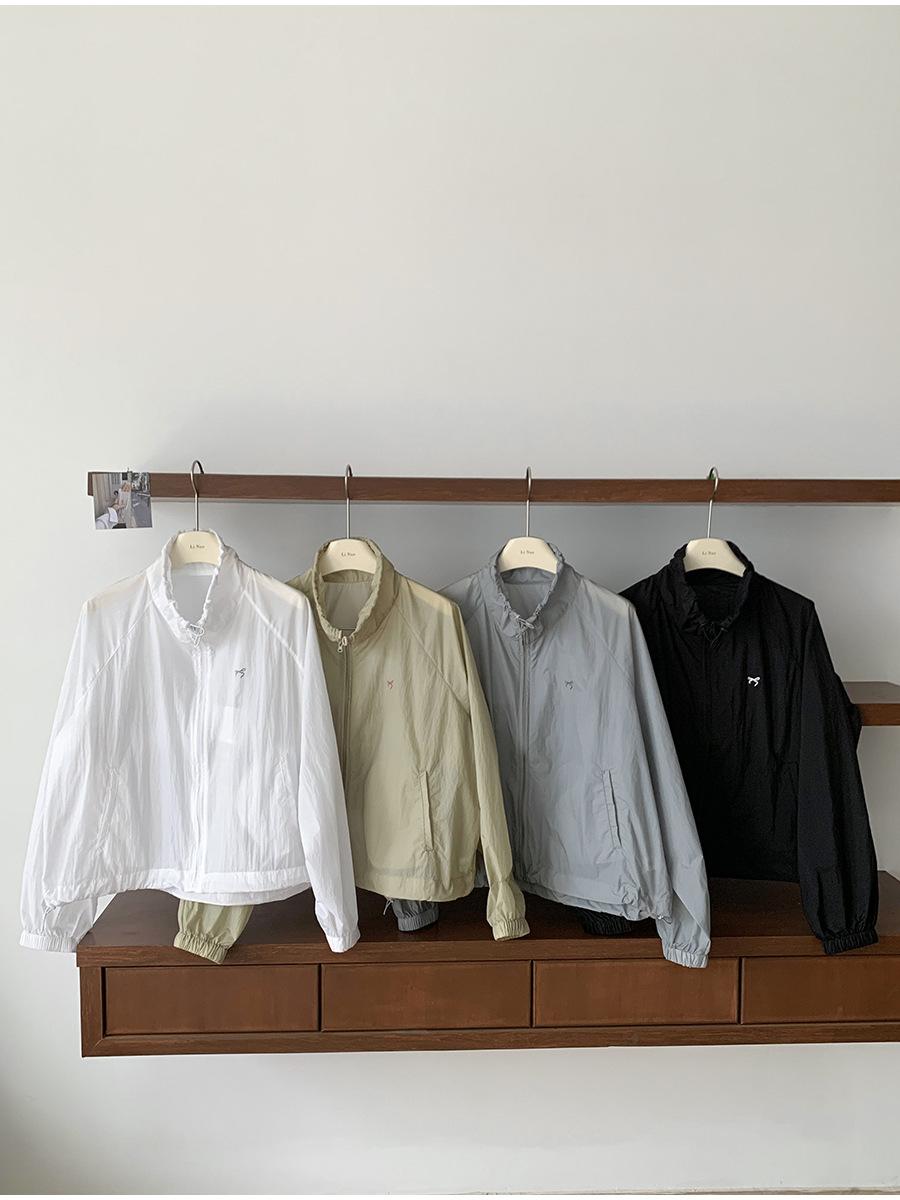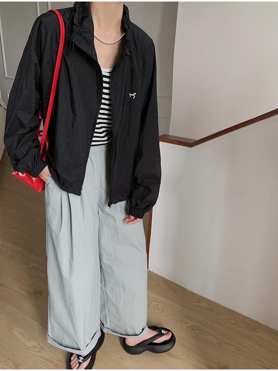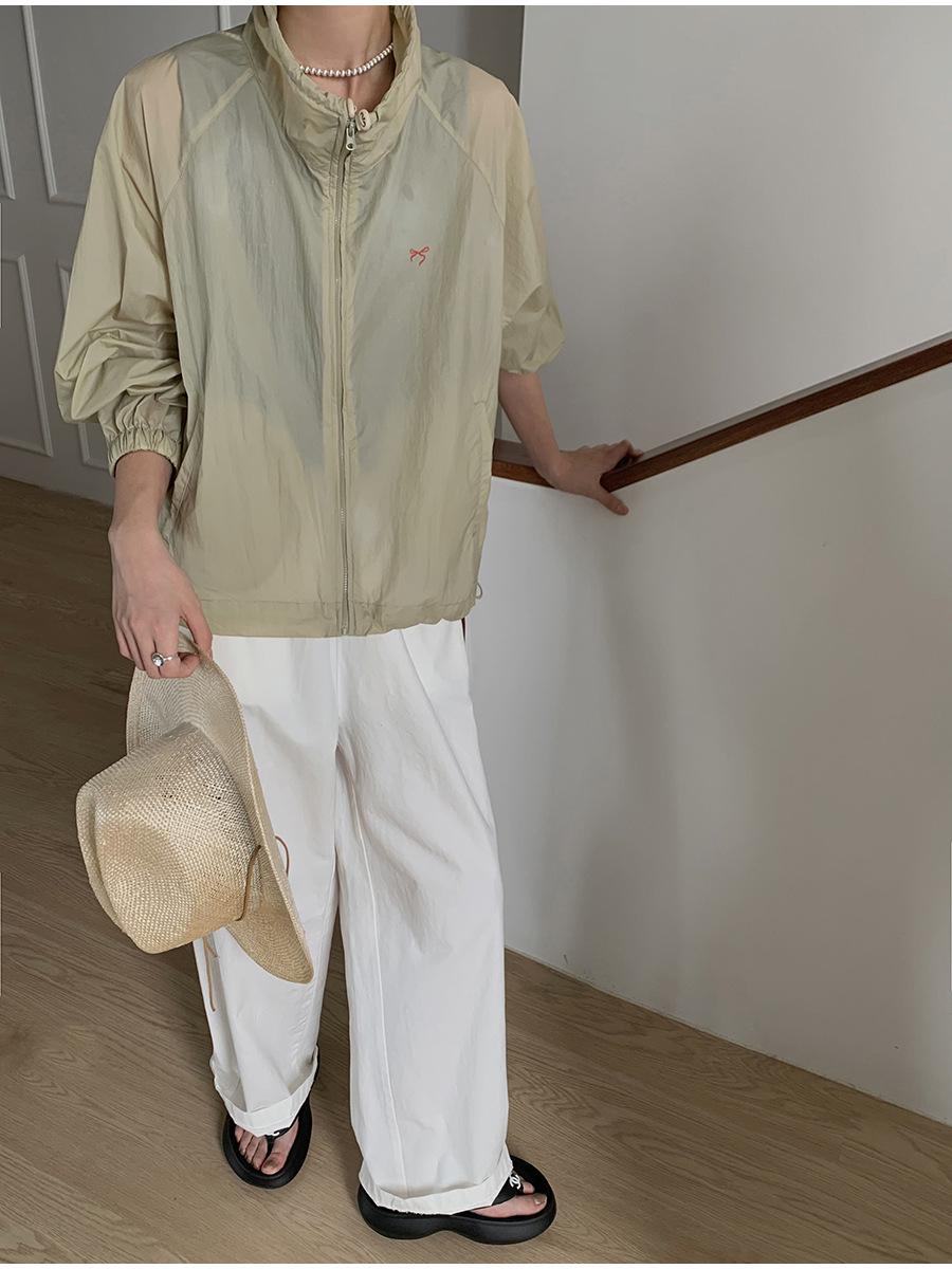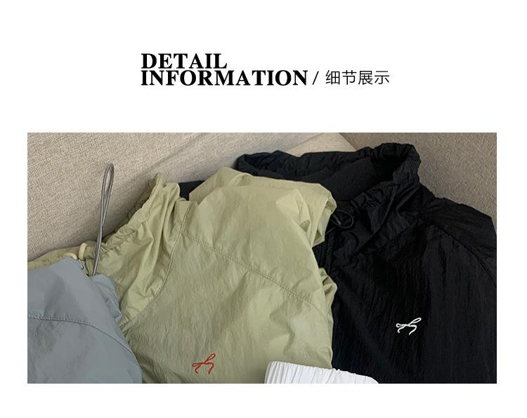 Lino Senderismo Exterior Cuello Alto Chaqueta Protección Solar para Mujer 2025 Verano Nuevo Casual Suelta Estampada Cremallera Chaqueta