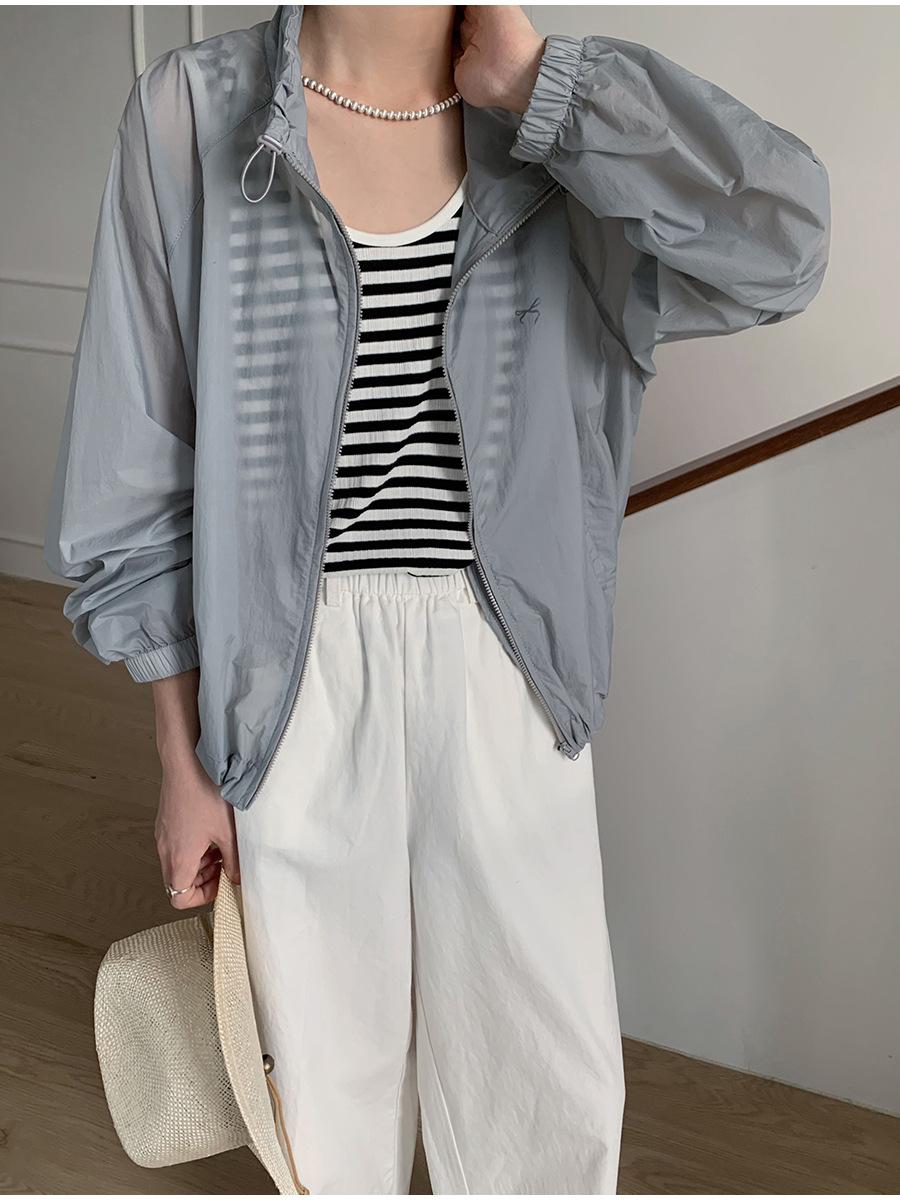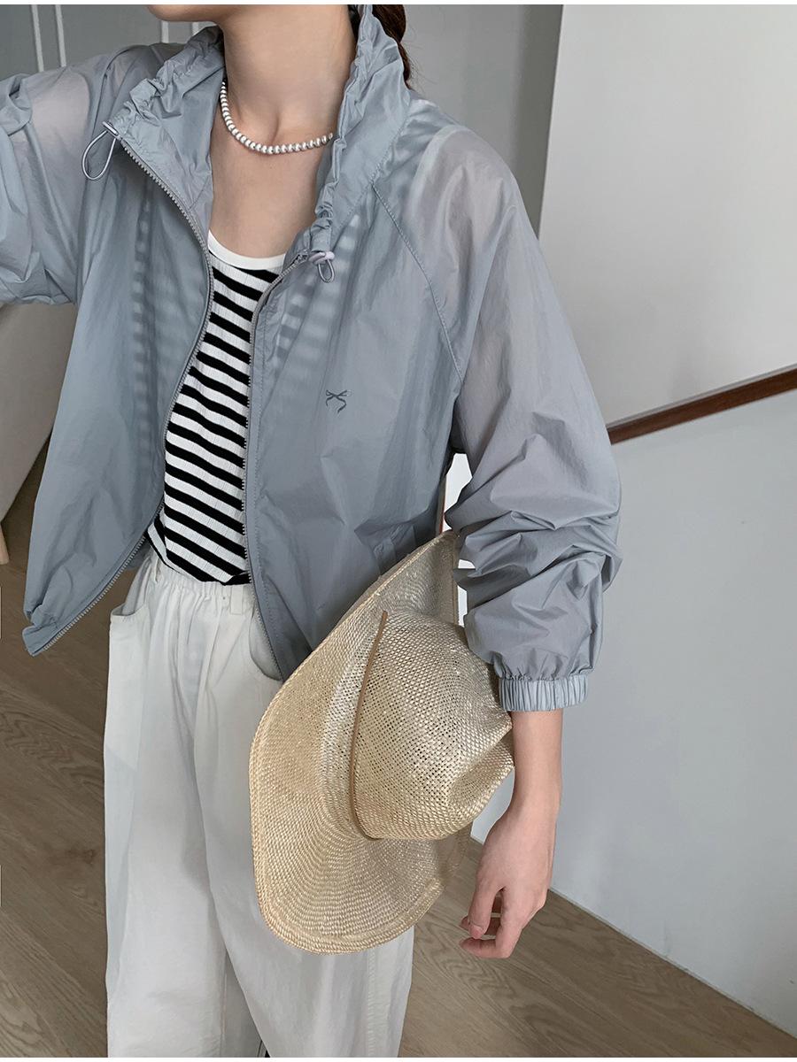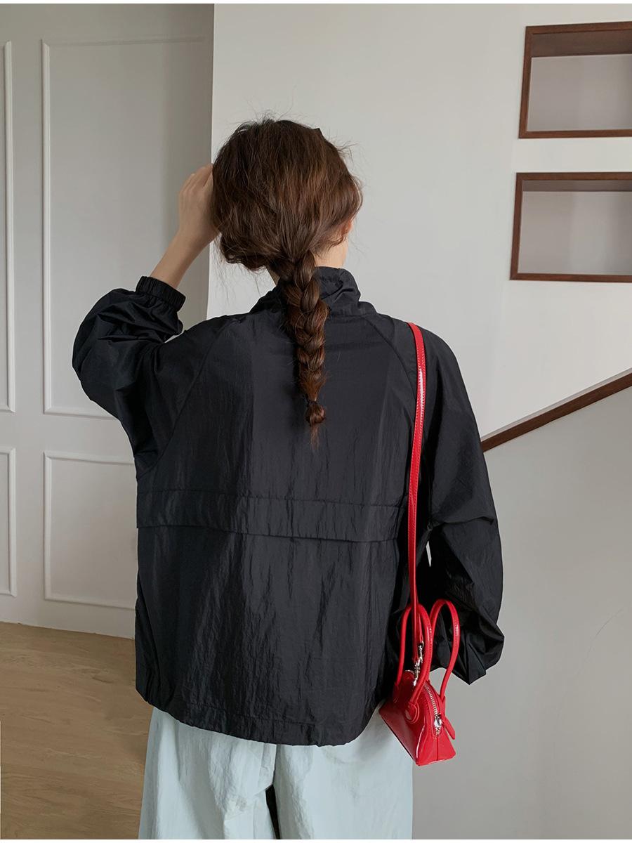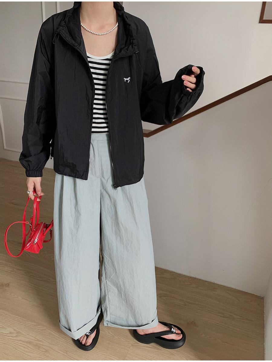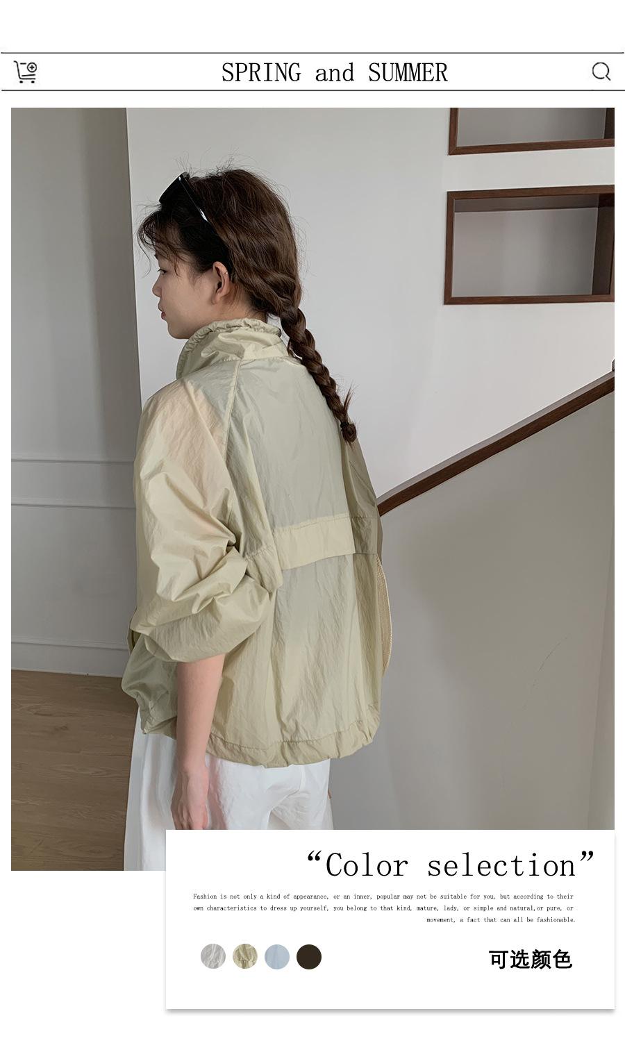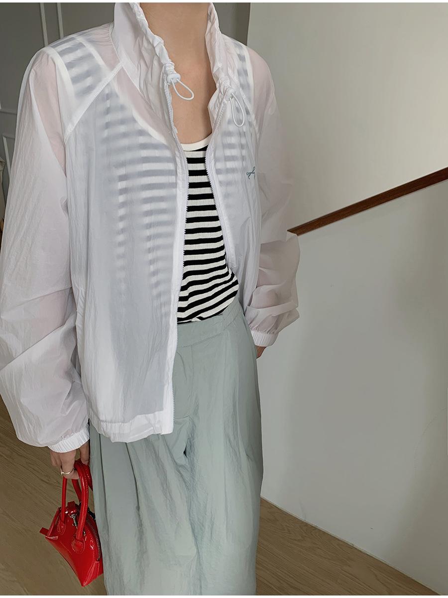 Lino Senderismo Exterior Cuello Alto Chaqueta Protección Solar para Mujer 2025 Verano Nuevo Casual Suelta Estampada Cremallera Chaqueta