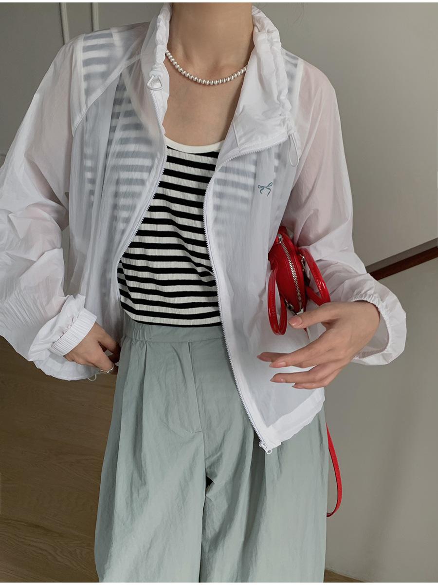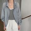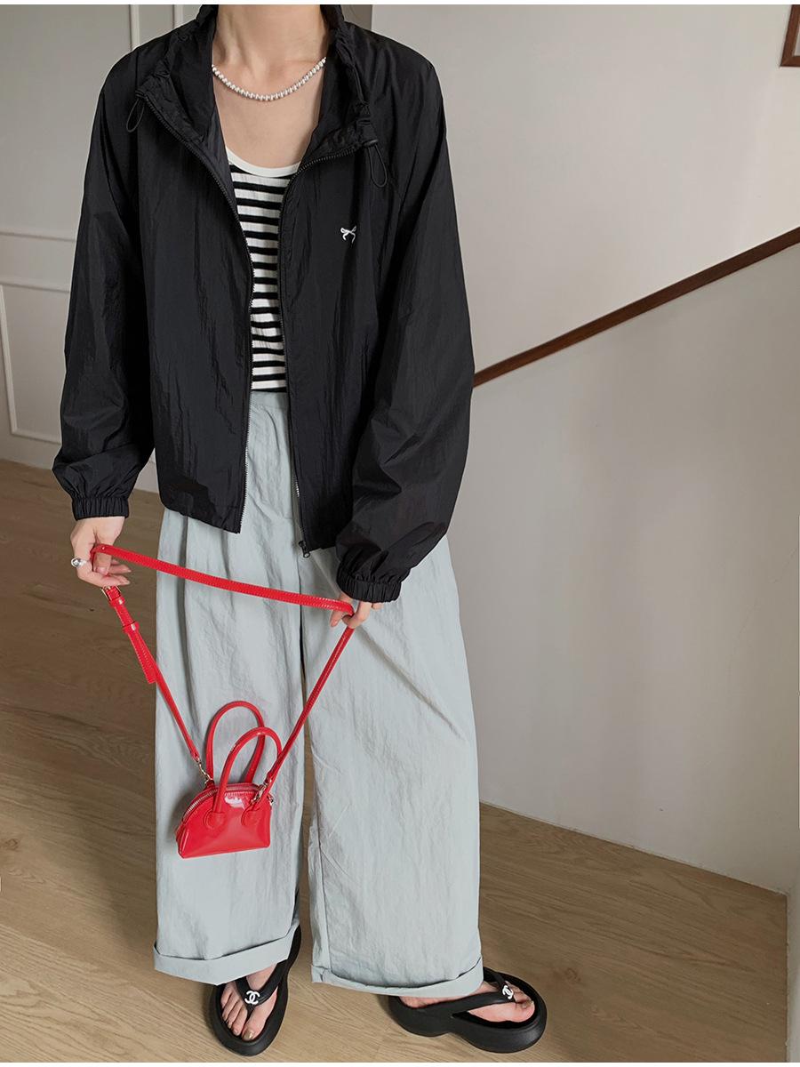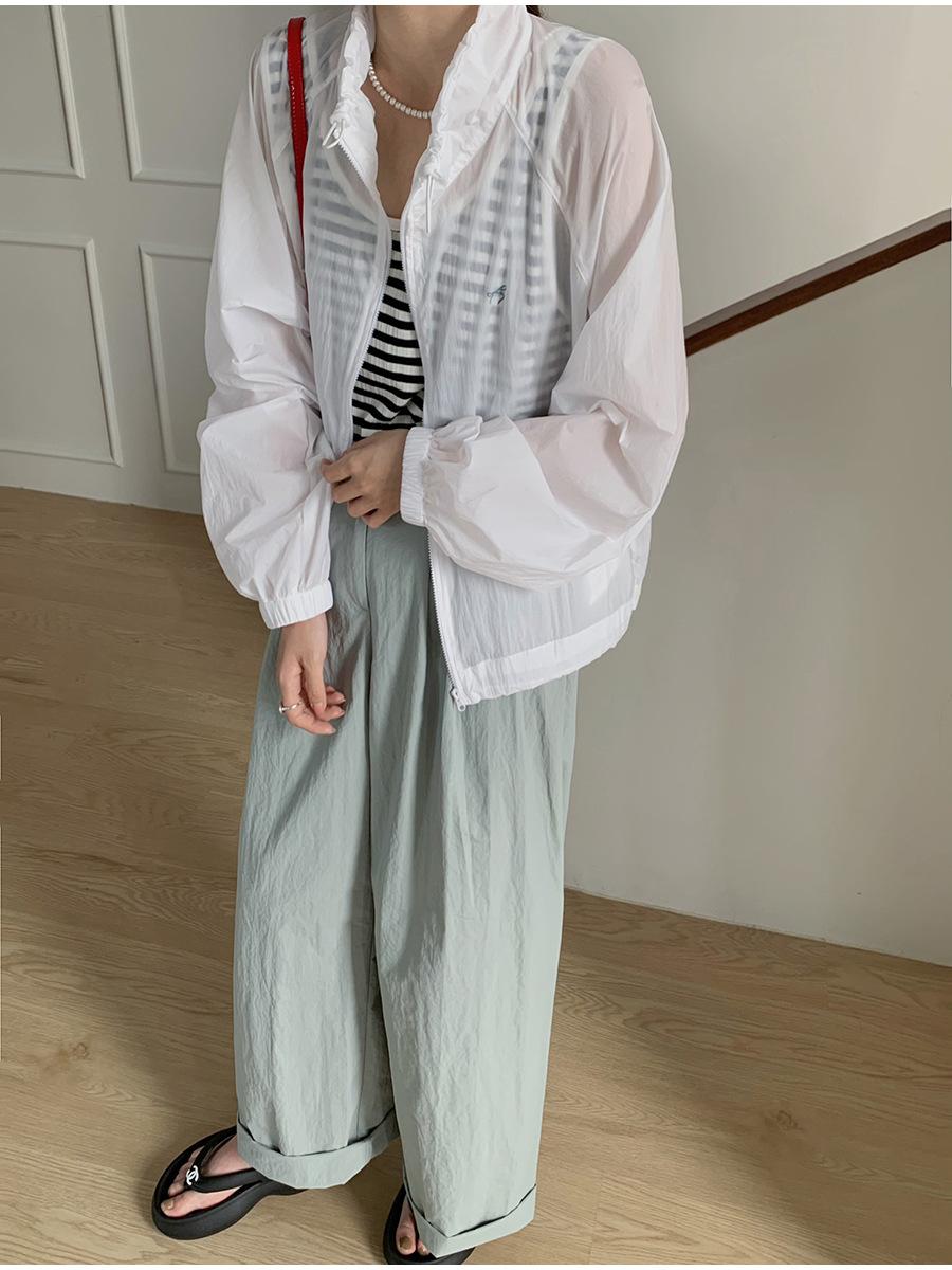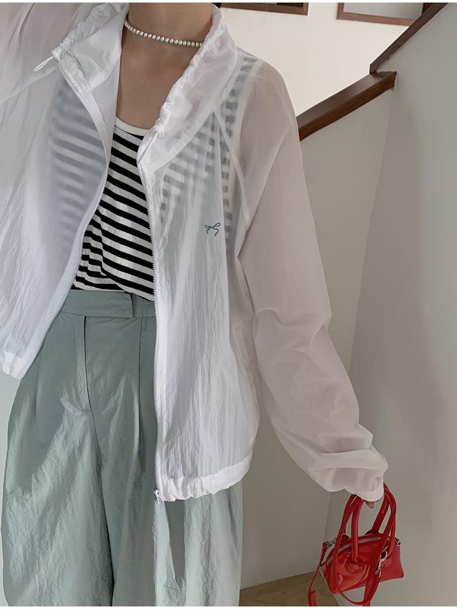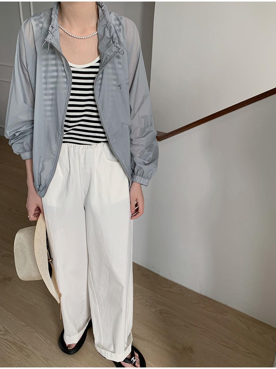Lino Senderismo Exterior Cuello Alto Chaqueta Protección Solar para Mujer 2025 Verano Nuevo Casual Suelta Estampada Cremallera Chaqueta