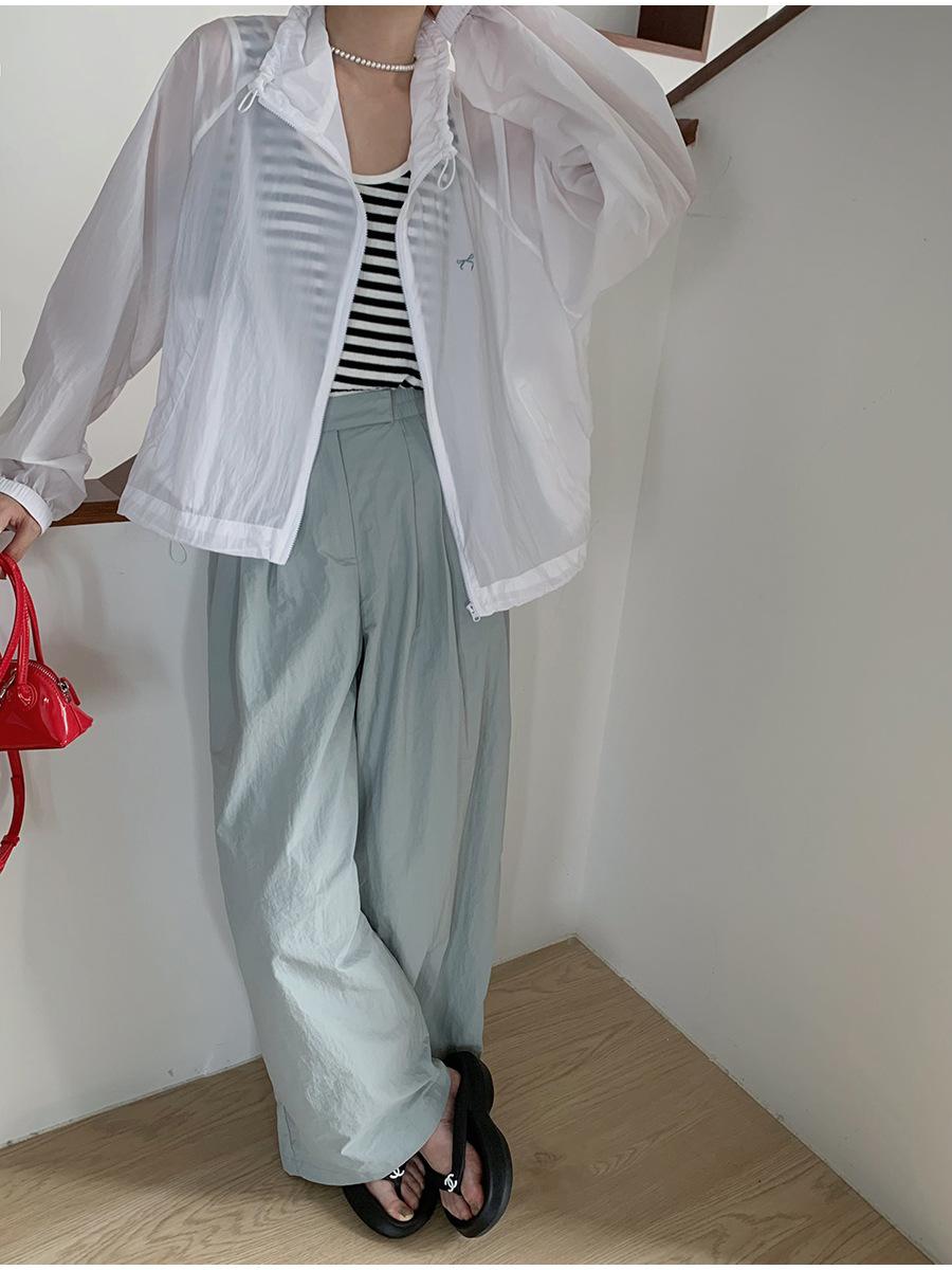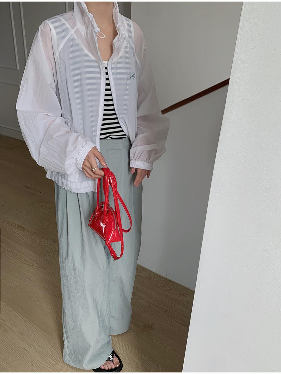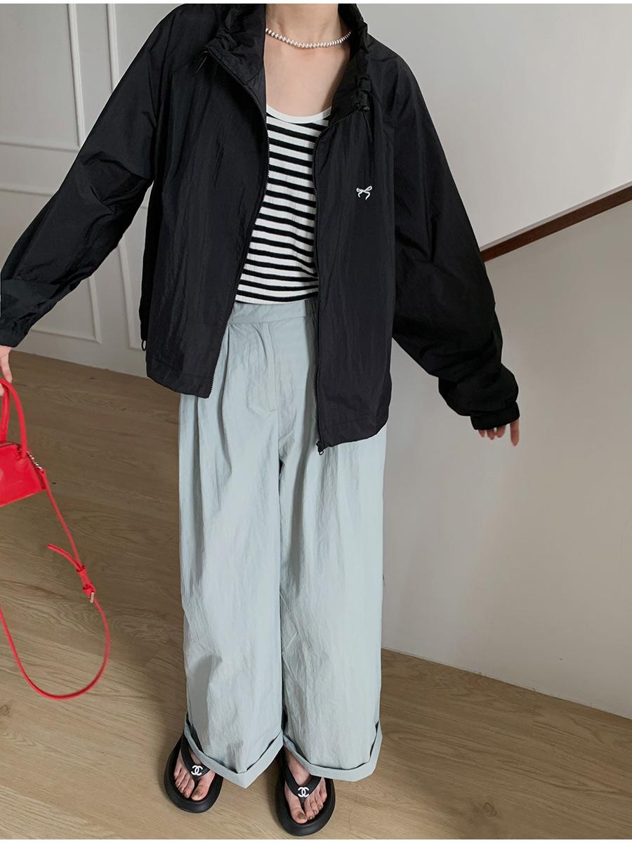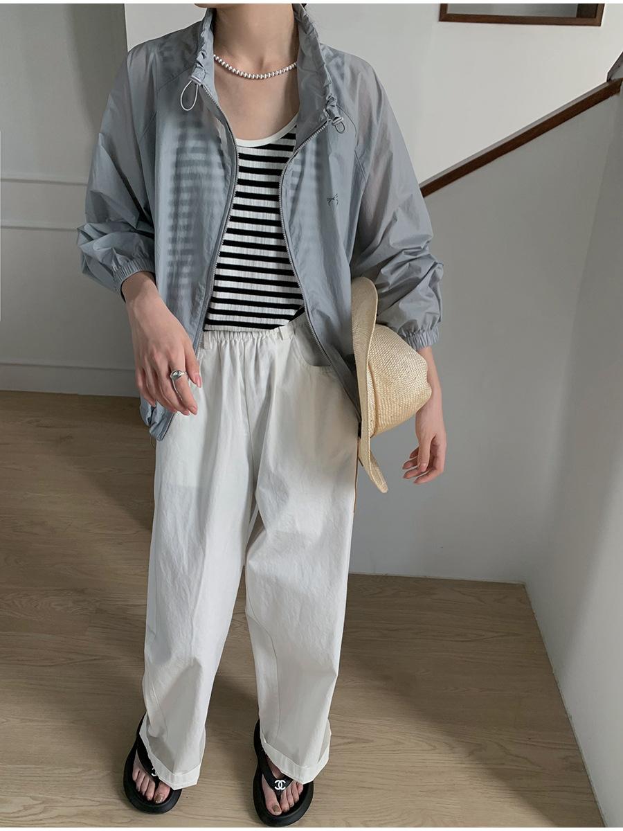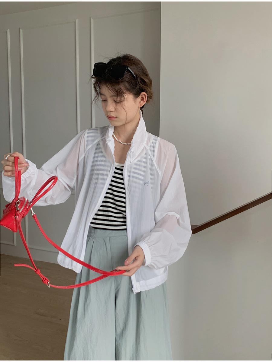 Lino Senderismo Exterior Cuello Alto Chaqueta Protección Solar para Mujer 2025 Verano Nuevo Casual Suelta Estampada Cremallera Chaqueta