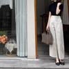 Pantalones de traje casuales de cintura alta para mujer, sentido del diseño, combinados con pantalones rectos de nueve puntos de pierna ancha