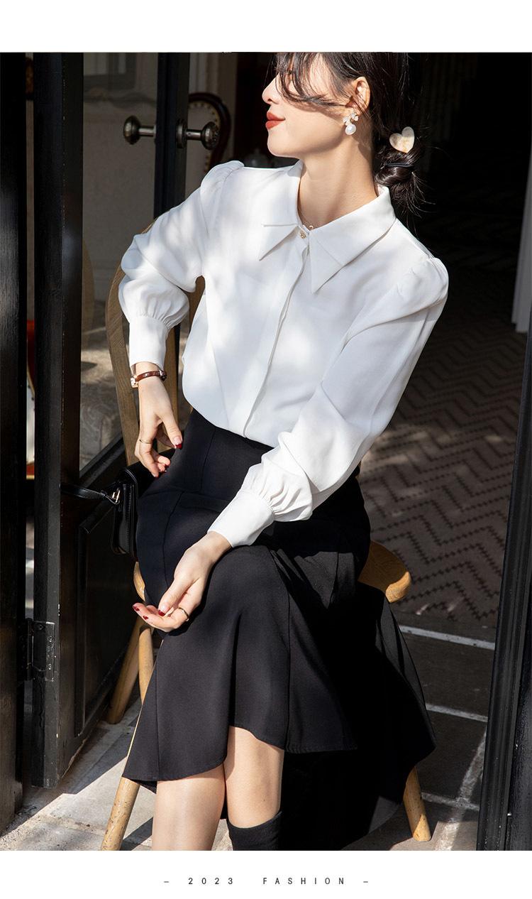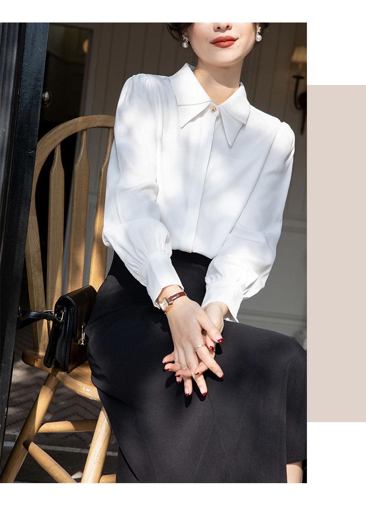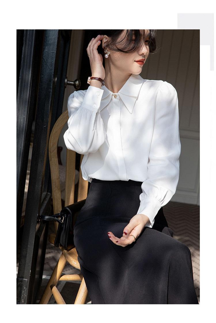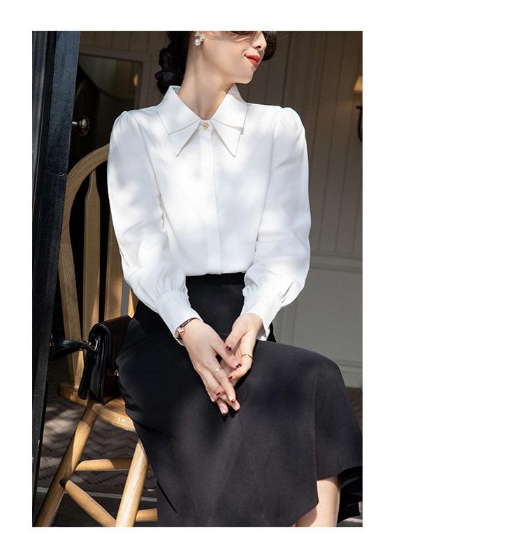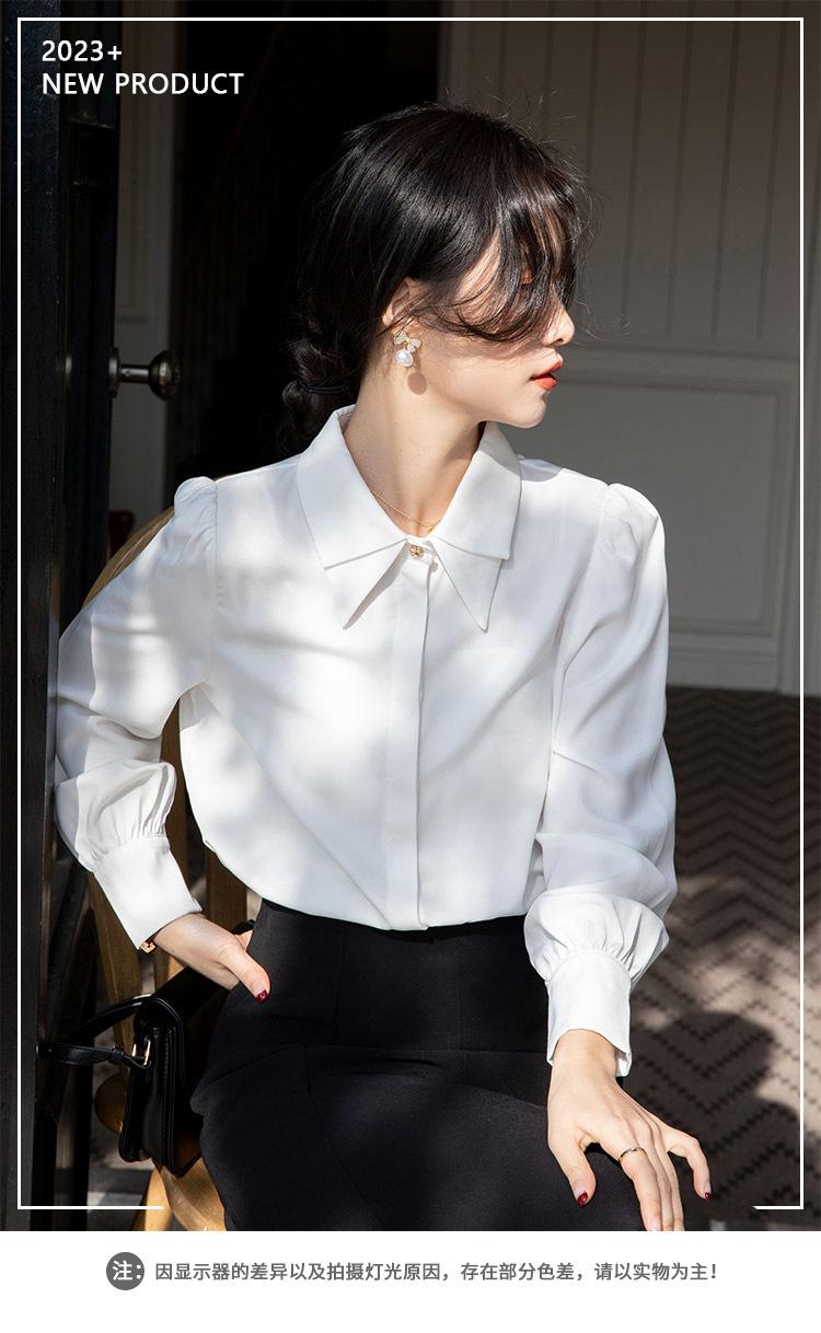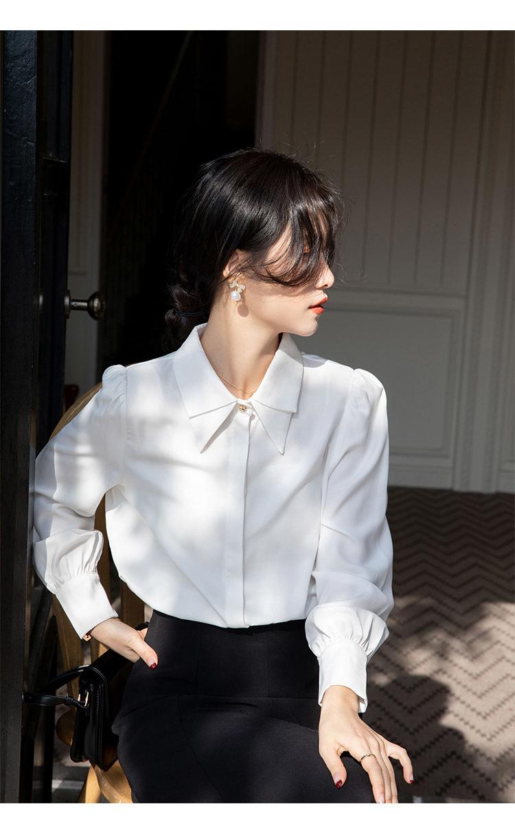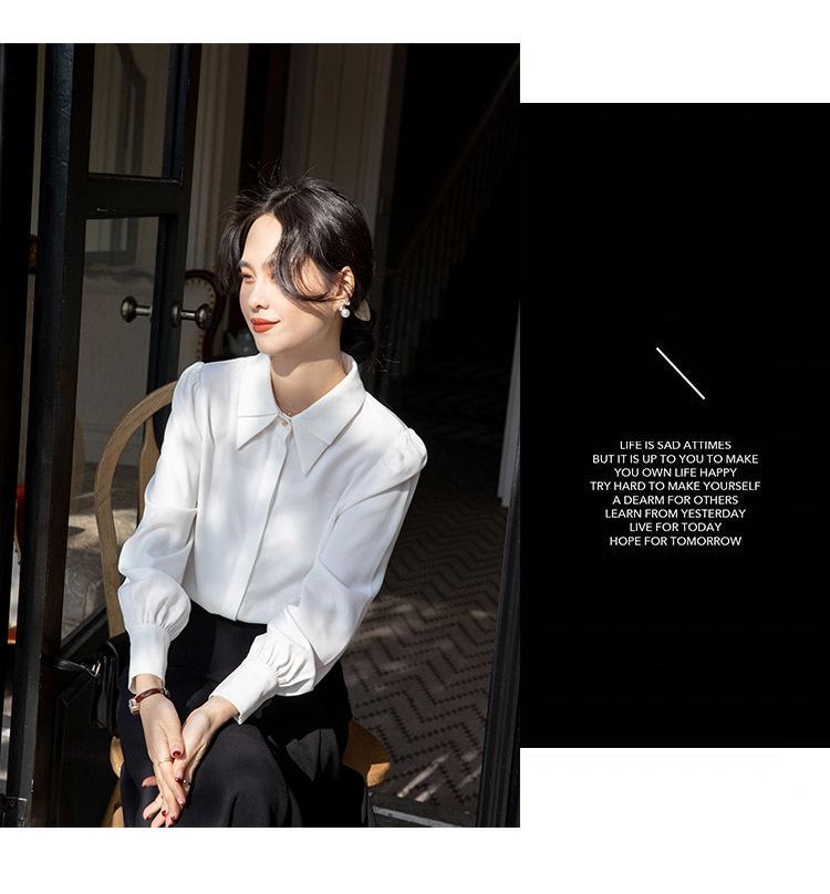 Camisa blanca fresca de manga larga para mujer Primavera 2024 Nuevo diseño Sense Niche Top francés con mangas abullonadas que combina con todo