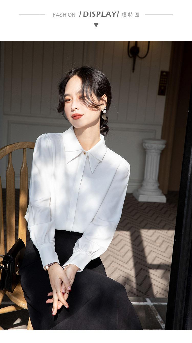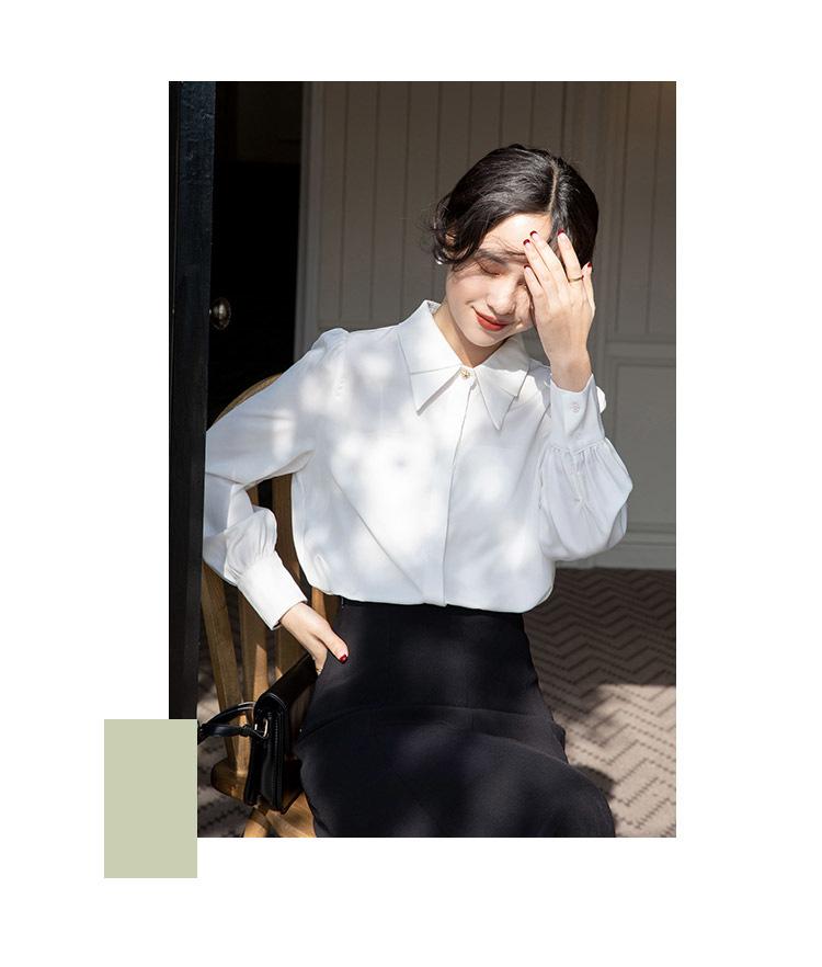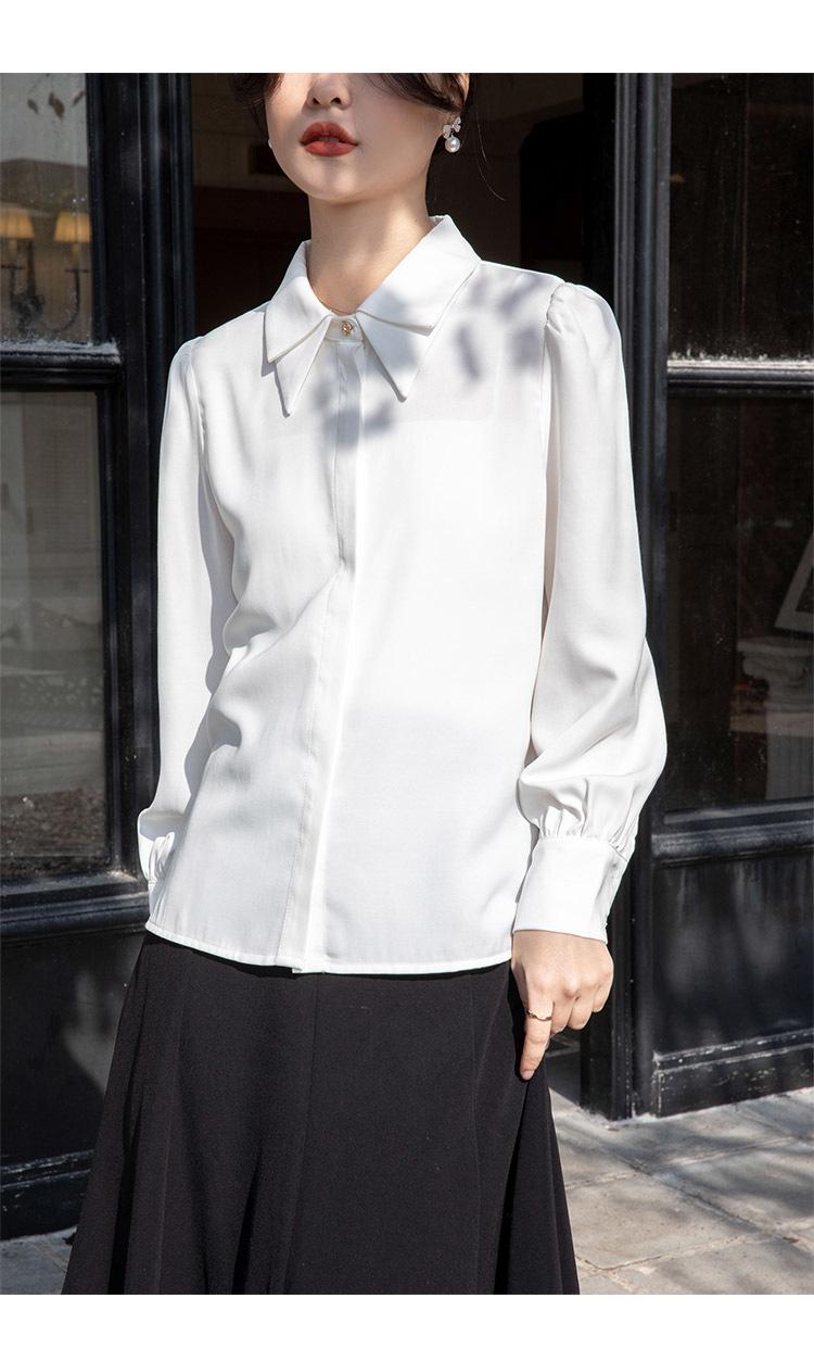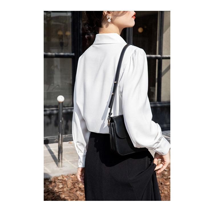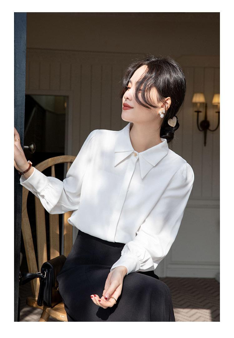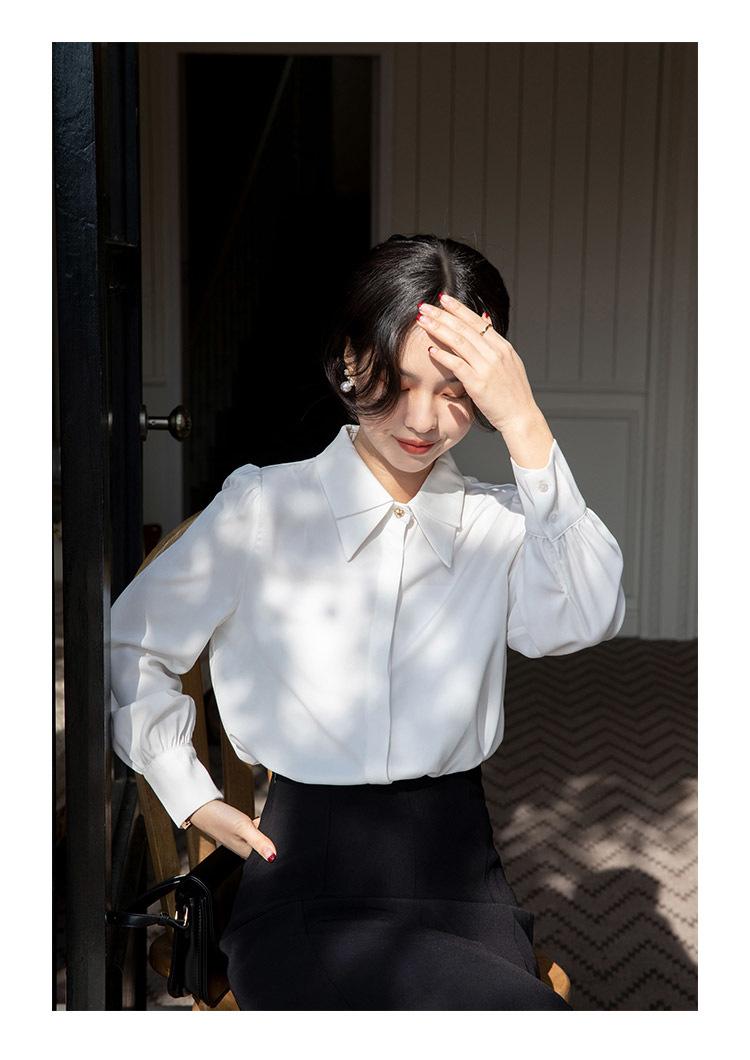 Camisa blanca fresca de manga larga para mujer Primavera 2024 Nuevo diseño Sense Niche Top francés con mangas abullonadas que combina con todo