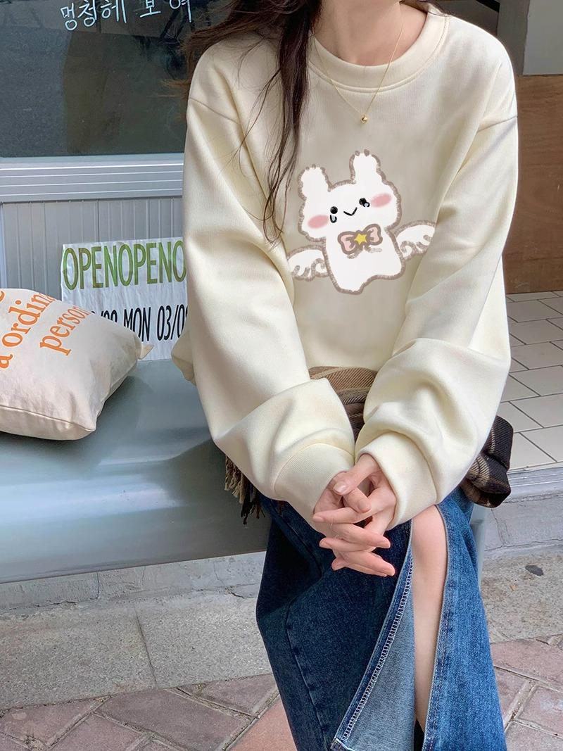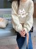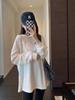 Sudadera de cuello redondo suave y delicada color albaricoque para mujer, otoño e invierno con forro polar, top holgado moderno de alta gama estilo retro americano