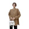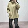 Foto Real de Productos Nuevos Japoneses y Coreanos, Sudaderas Holgadas de Color Puro de Largo Medio Nuevas de Otoño e Invierno para Mujer, Tops Casuales de Algodón para Mujer