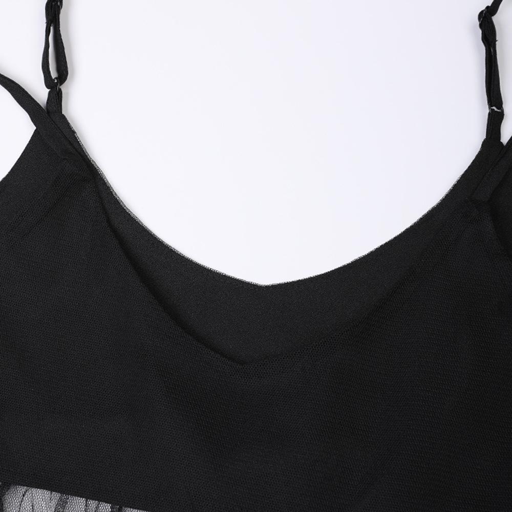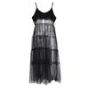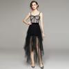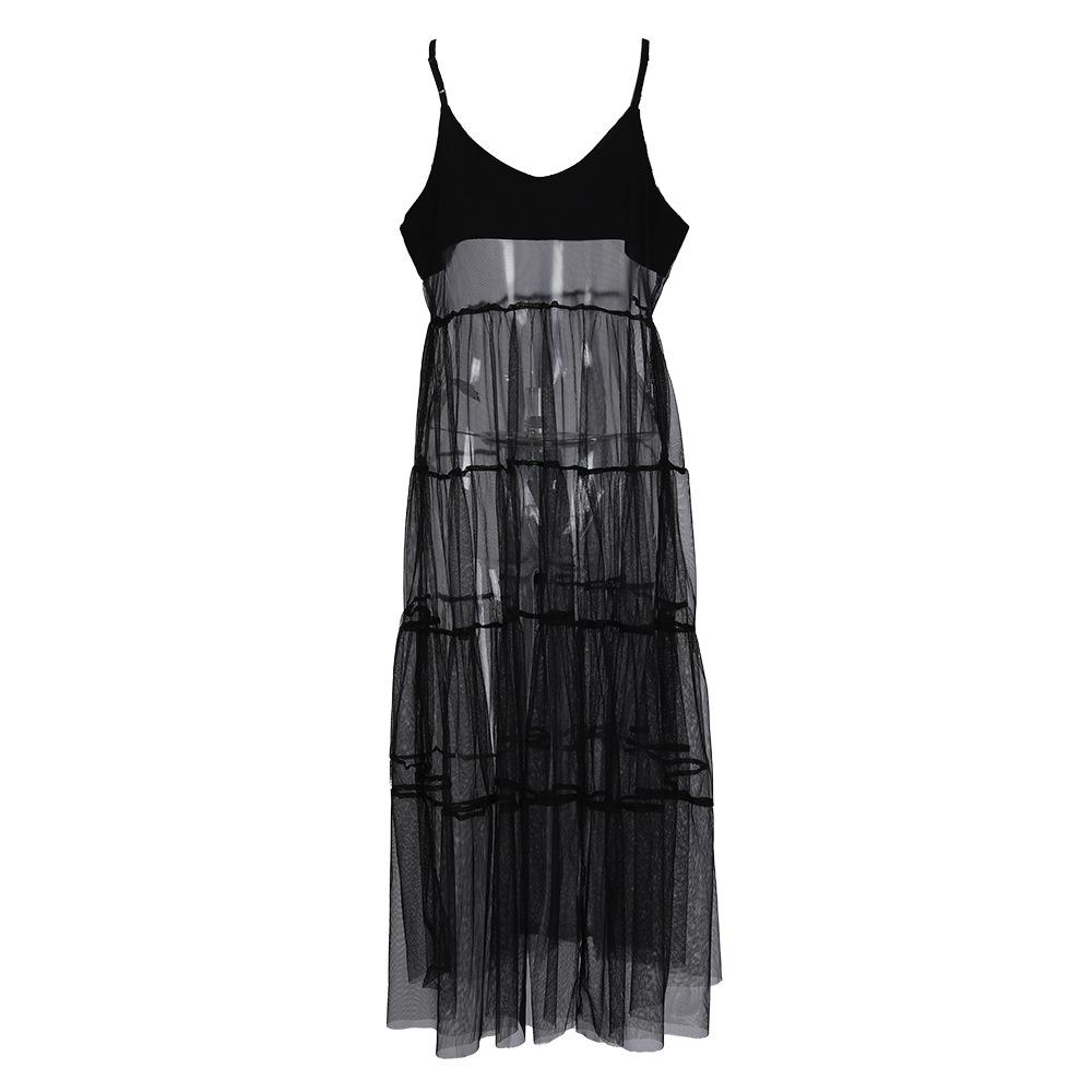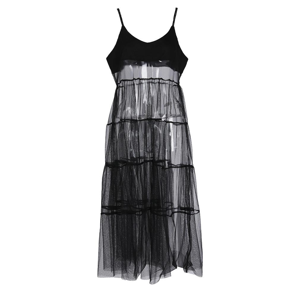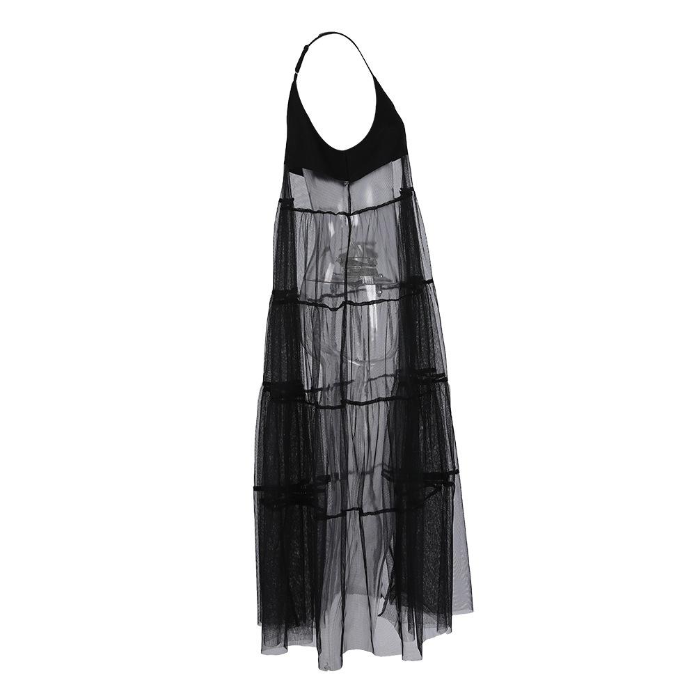 Falda de tirantes de encaje de malla de nicho para vacaciones, nuevo verano para mujer, vestido largo oscuro sexy con tirantes descubiertos