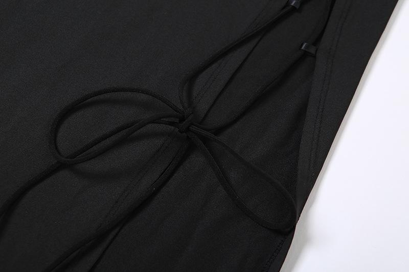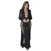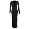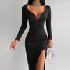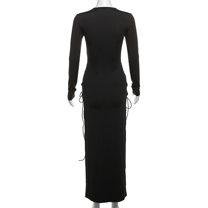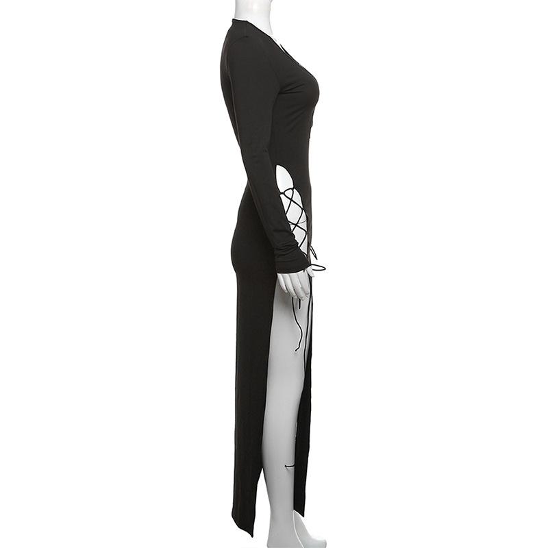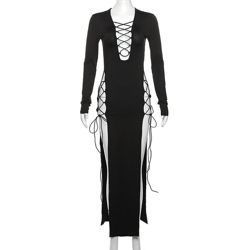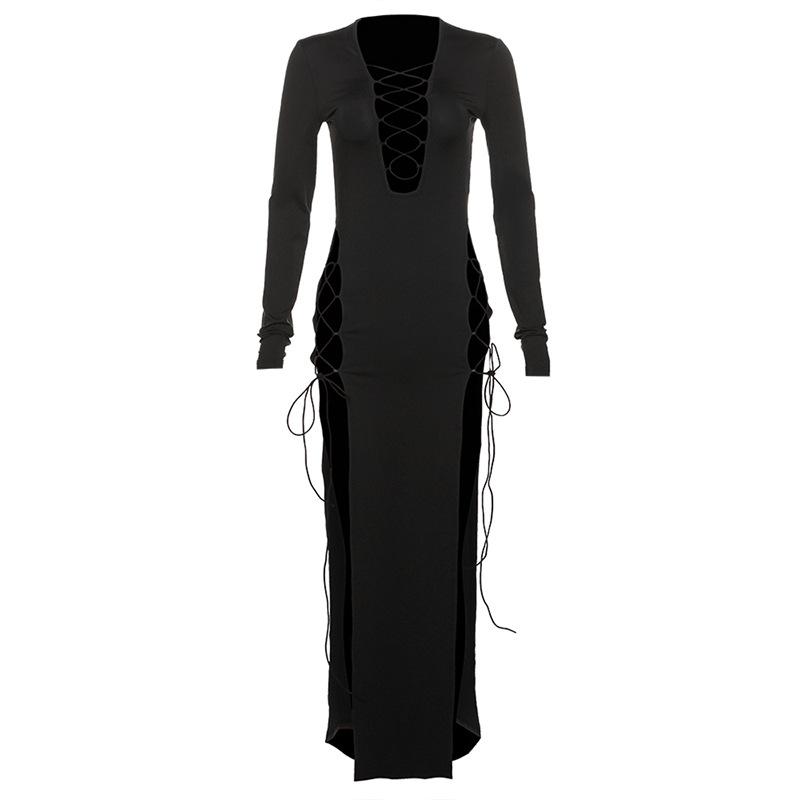 Ropa de mujer europea y americana INS primavera 2024 nuevo vestido largo ajustado de color sólido con abertura alta y escote en V profundo sexy con cordones