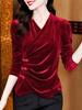 Compra 2023 Nueva Moda de Otoño Elegante Versátil Cruz Cuello en V Terciopelo Abotonado Manga Larga Chic Top de Mujer al por mayor en Joom.pro