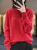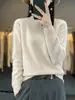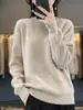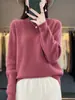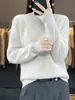 Suéter holgado de color sólido de manga larga con cuello redondo de lana pura para mujer, estilo coreano, otoño e invierno de 2023