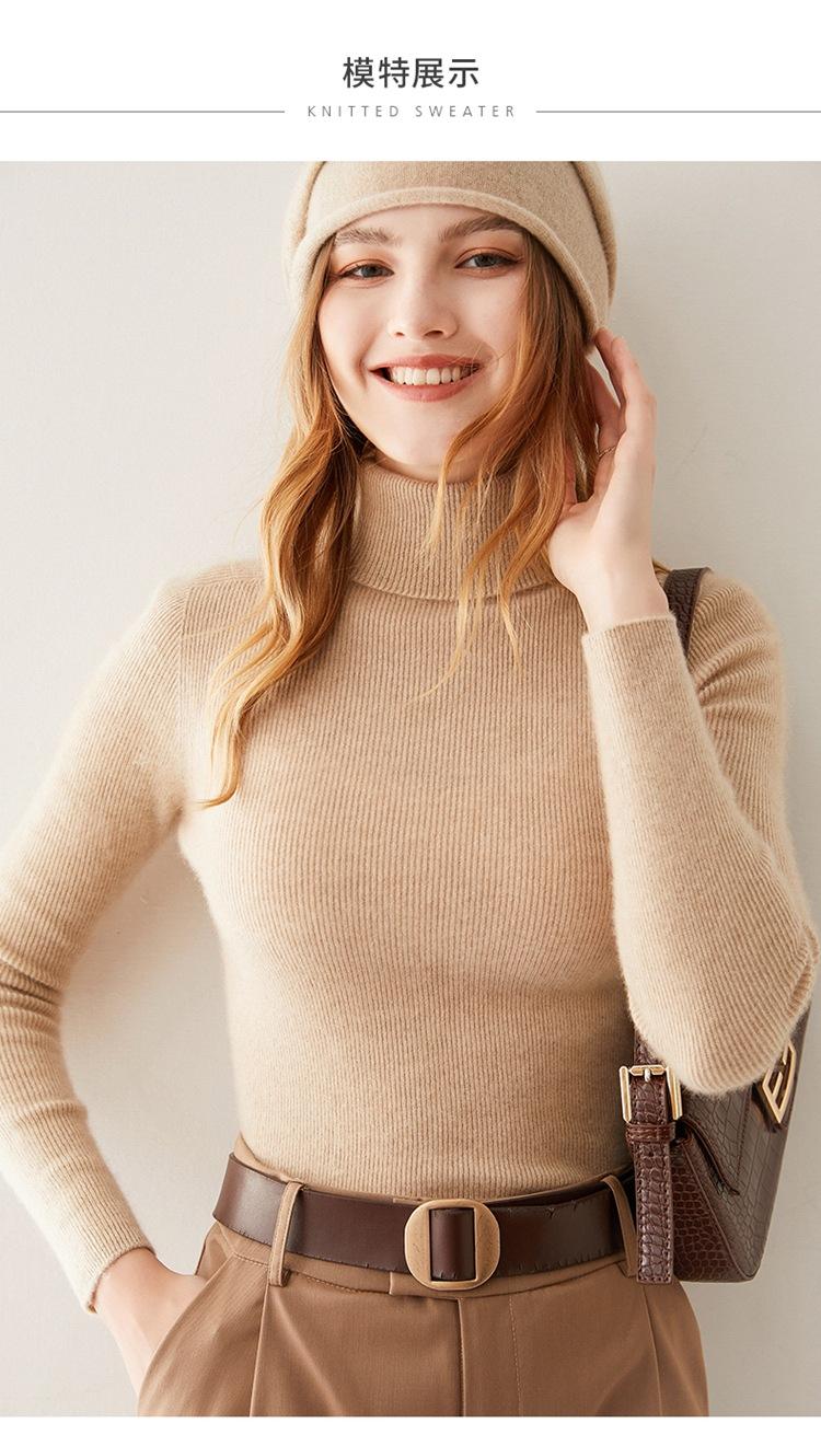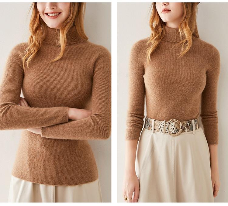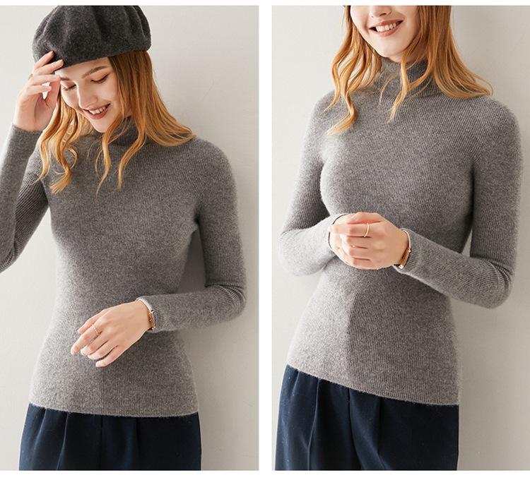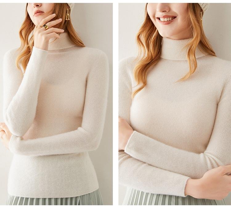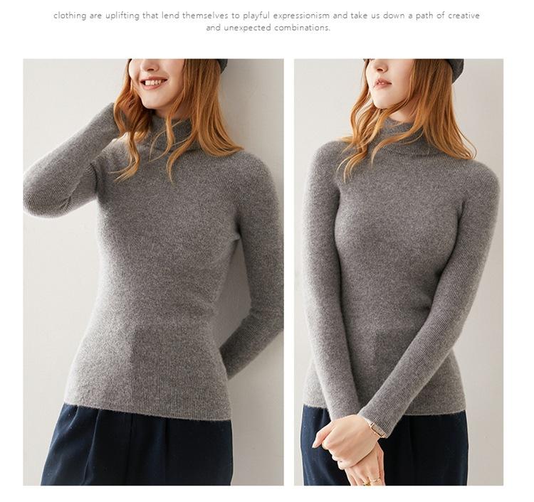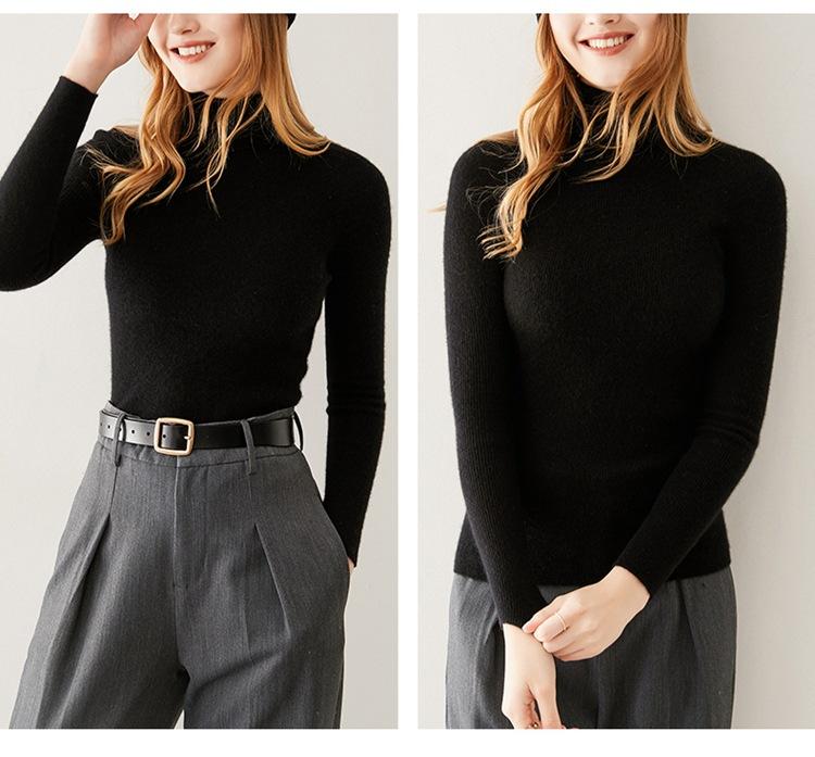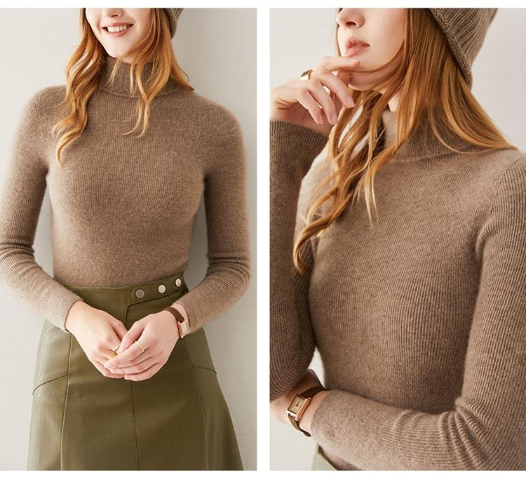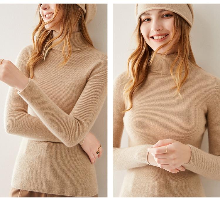 2023 Otoño e Invierno Nuevo Suéter Base Ajustado de Cachemira para Mujer con Solapa Alta Suéter de Cachemira Ajustado Base Interior