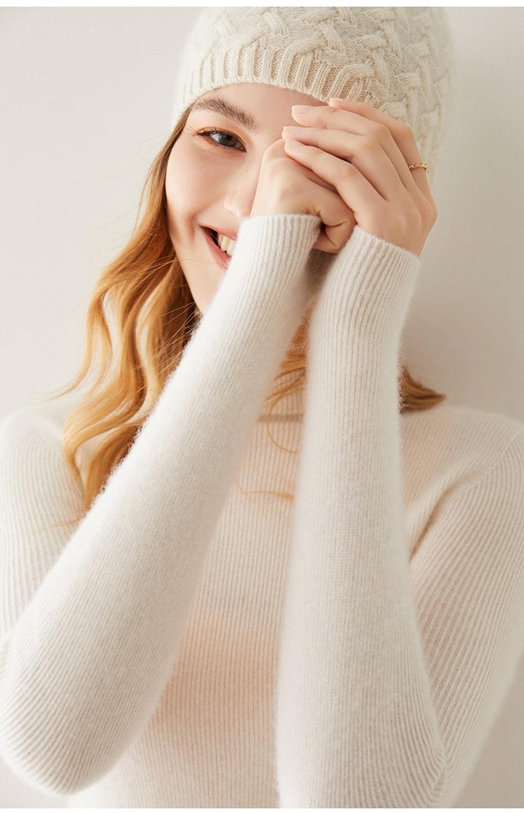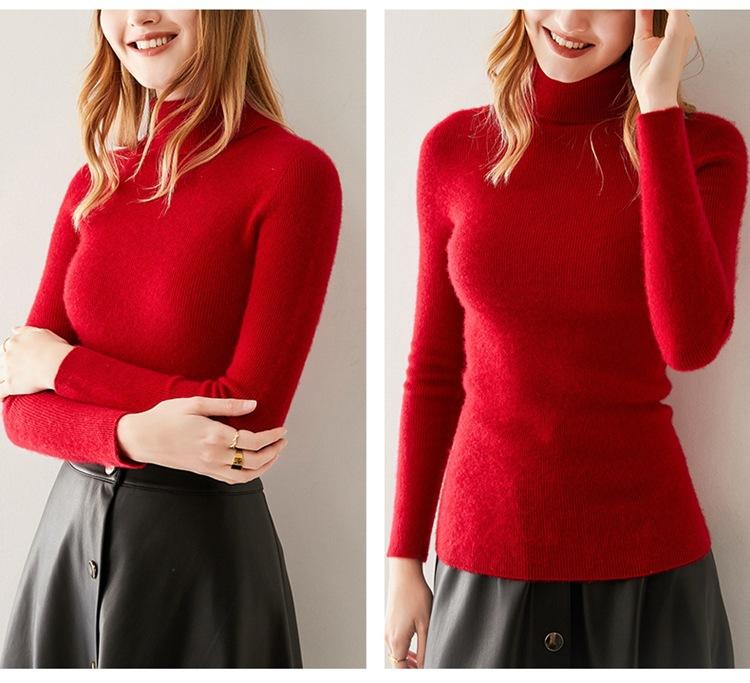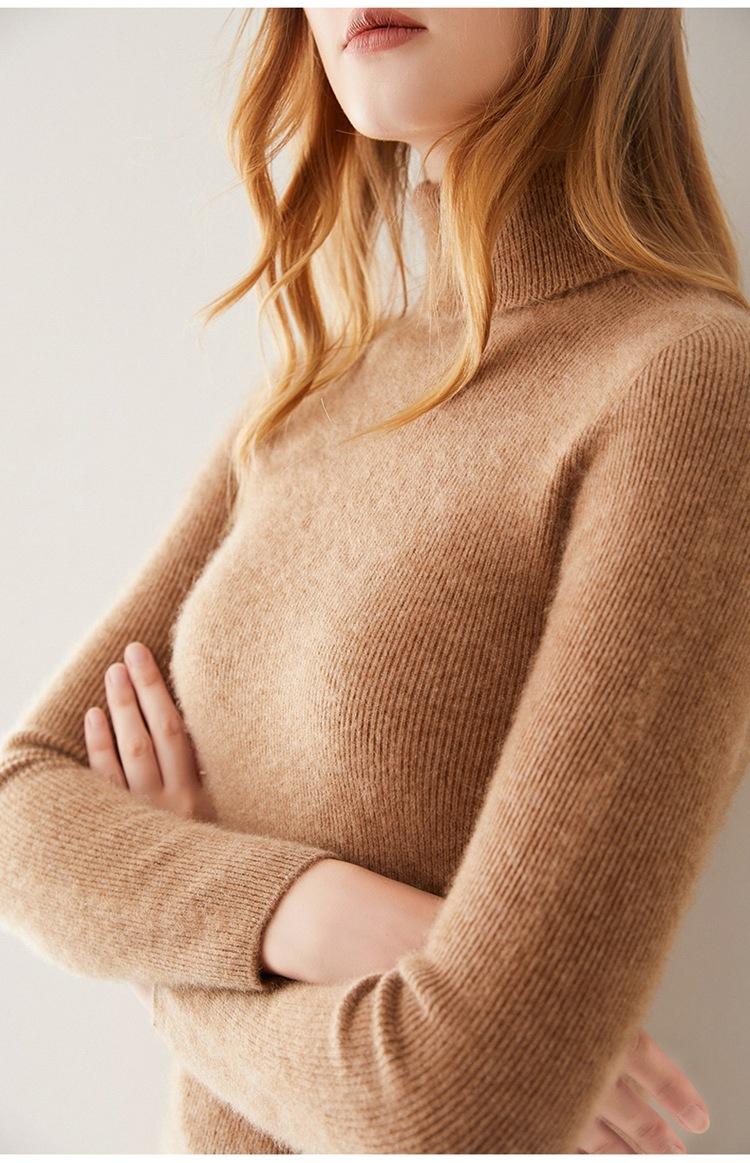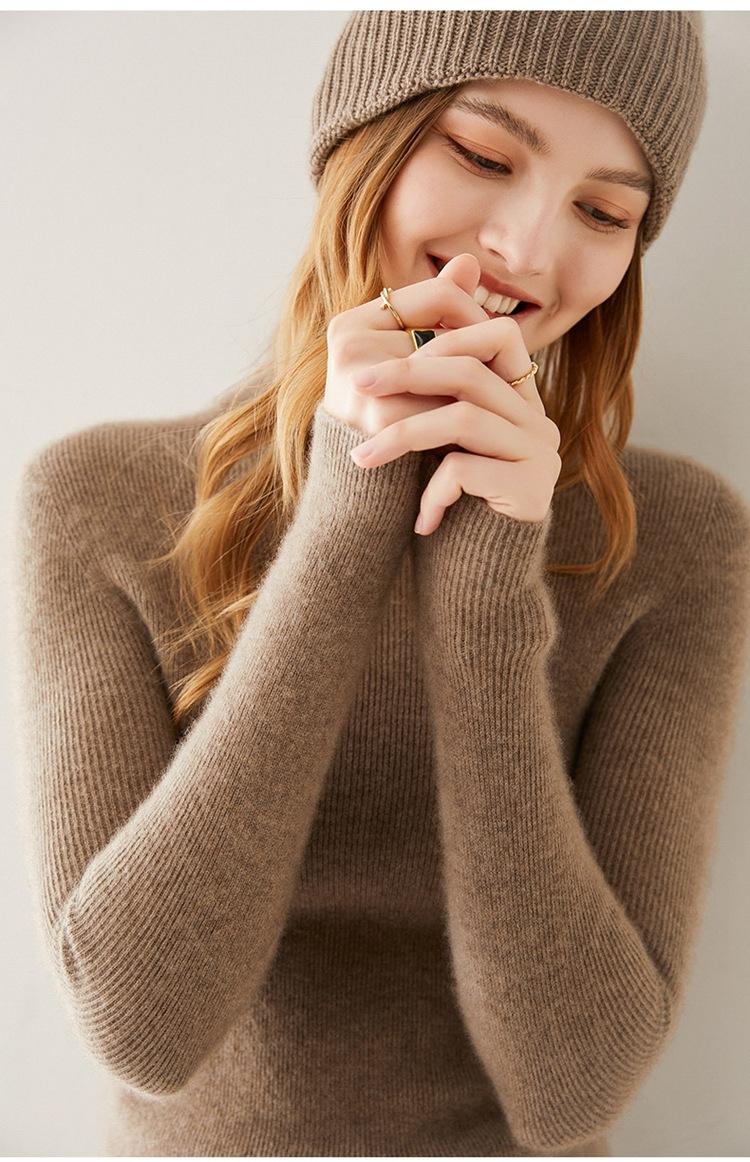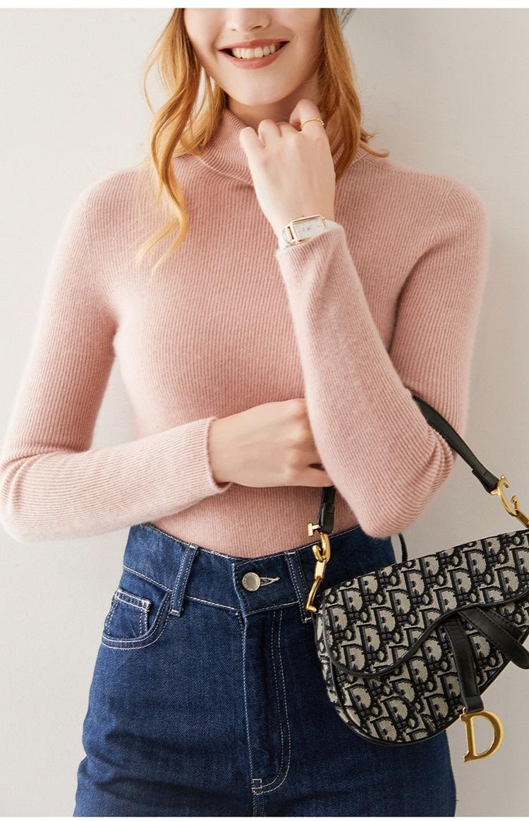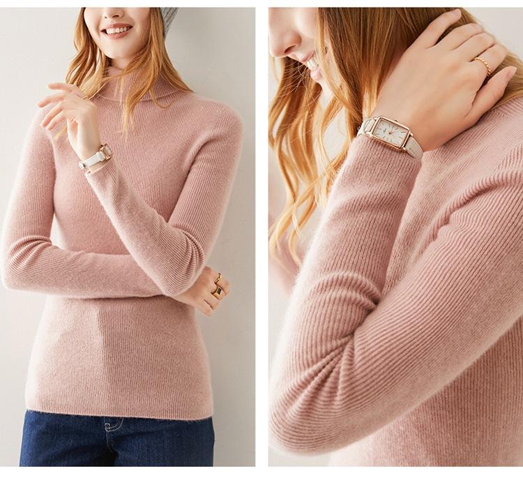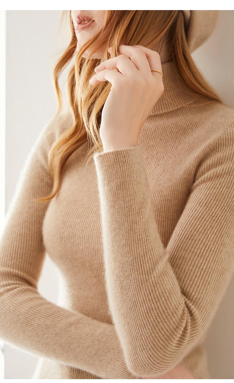 2023 Otoño e Invierno Nuevo Suéter Base Ajustado de Cachemira para Mujer con Solapa Alta Suéter de Cachemira Ajustado Base Interior