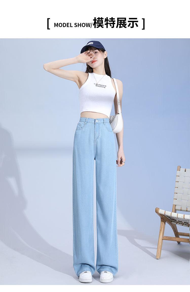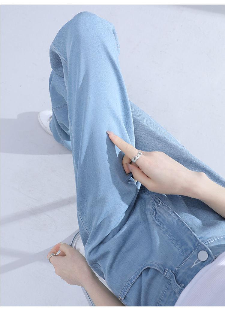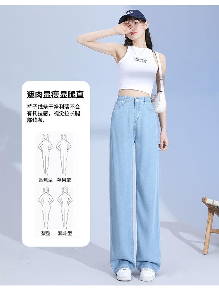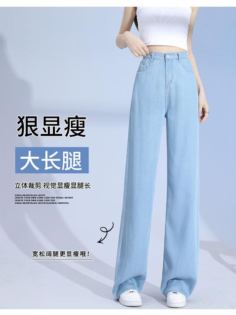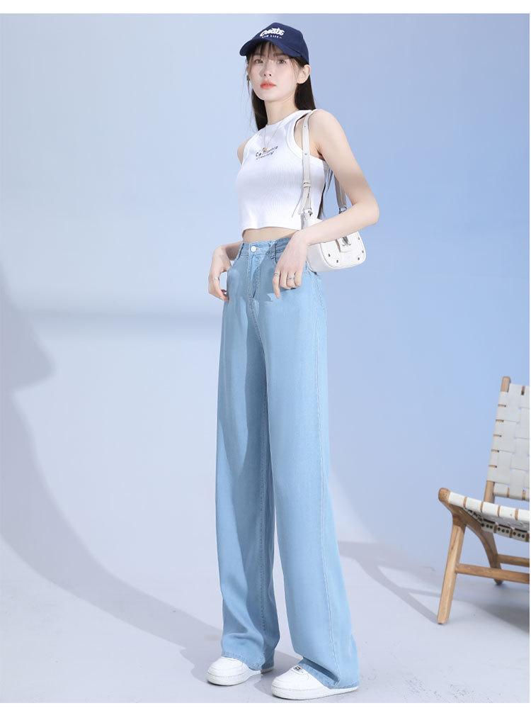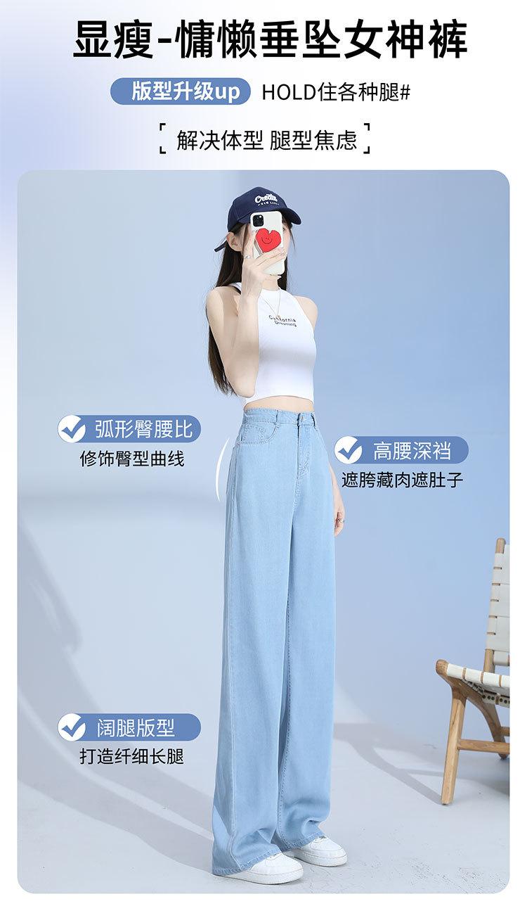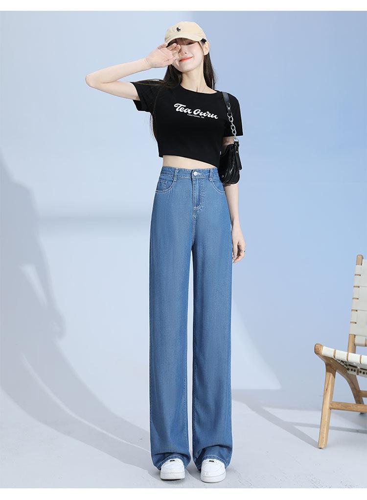Jeans Tencel para Mujer Verano 2025 Nuevo Estilo Pequeños Sueltos Rectos Casual Cintura Alta Drapeados Seda Helada Pantalones Pierna Ancha
