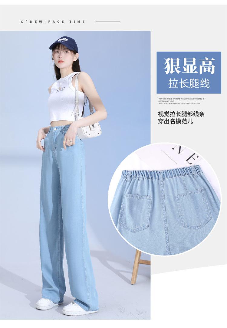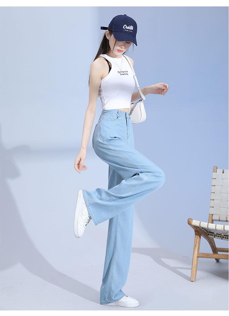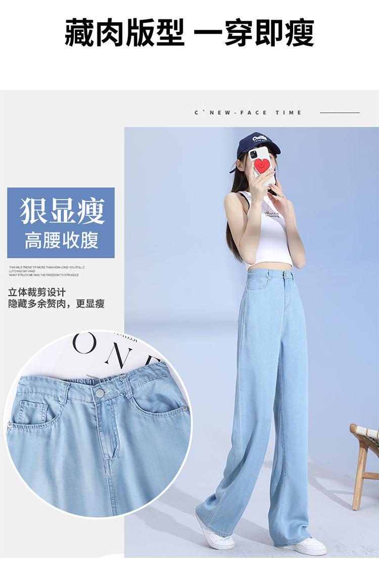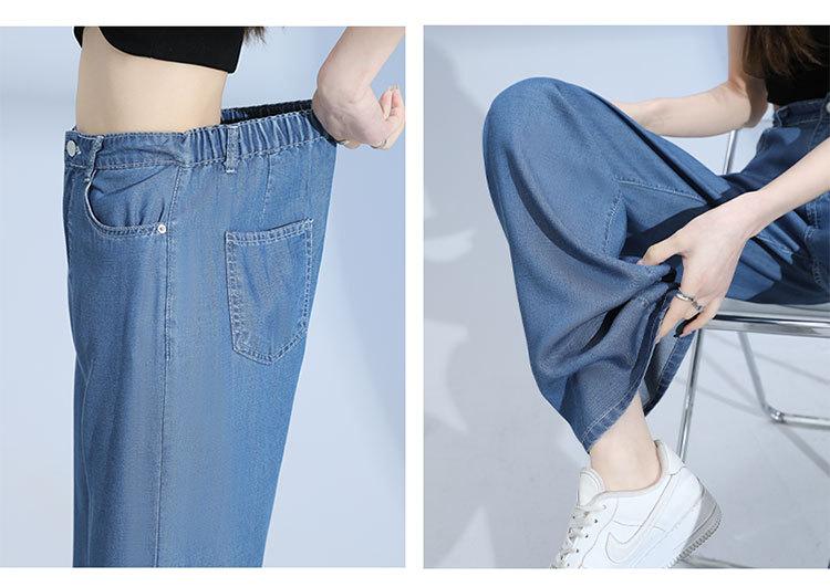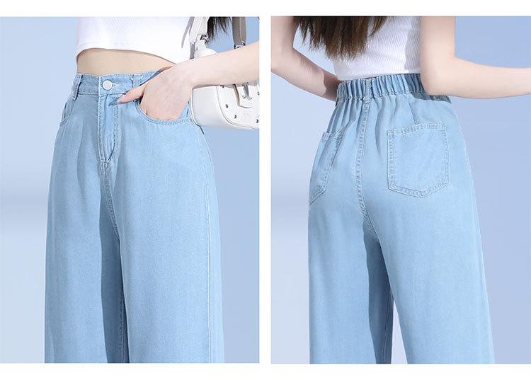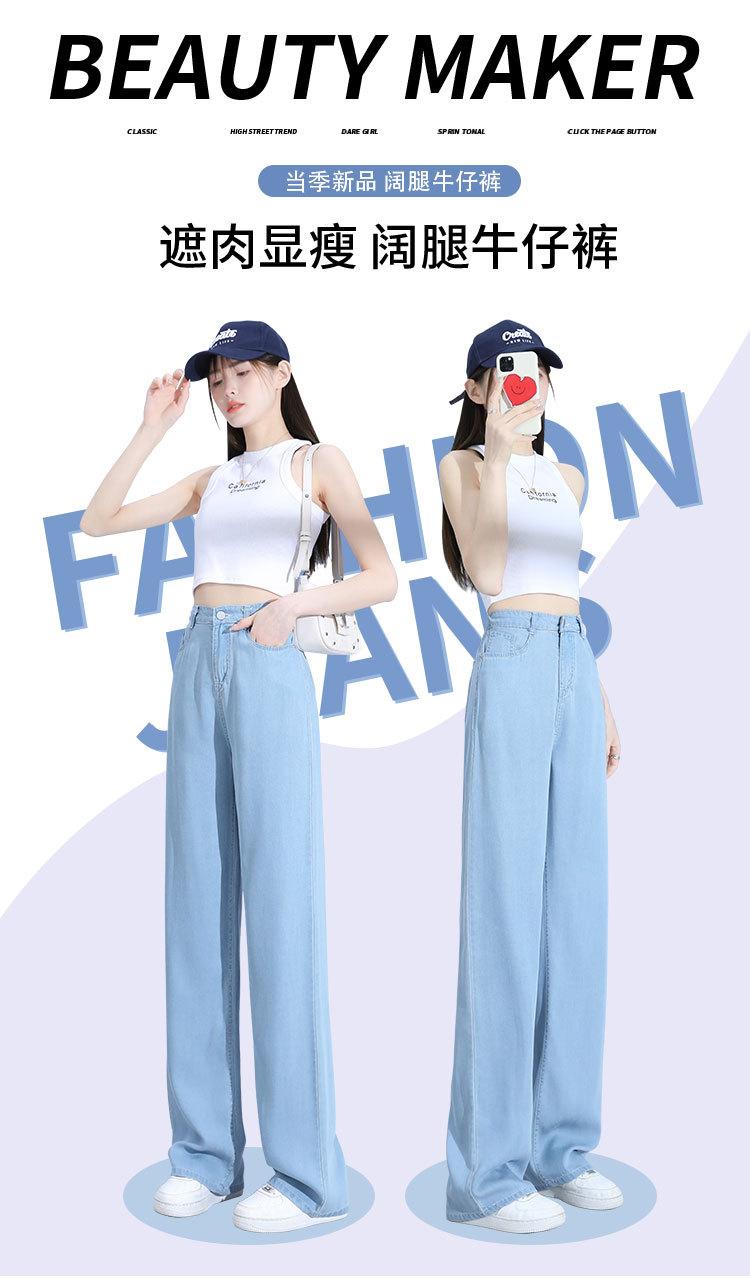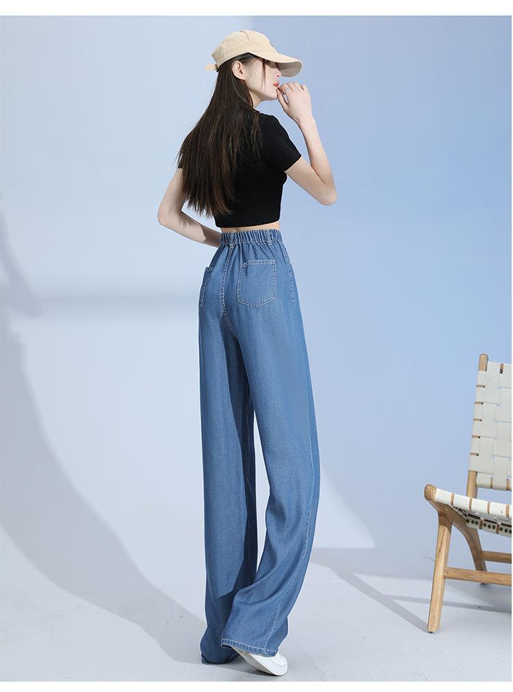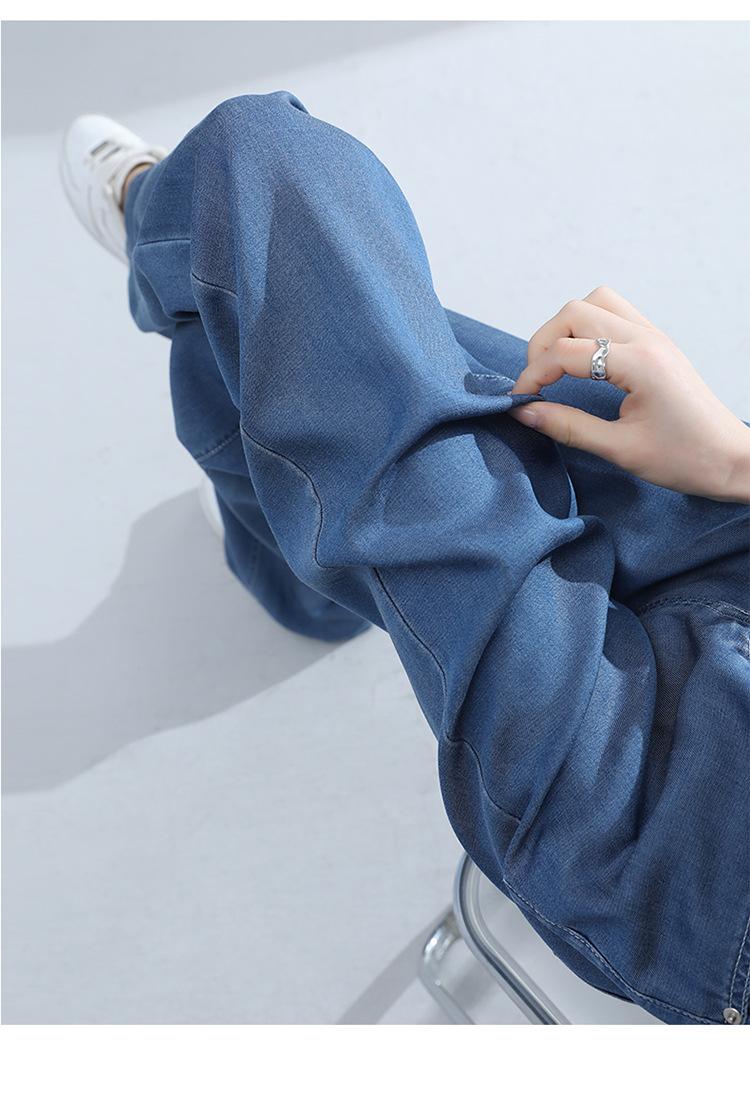 Jeans Tencel para Mujer Verano 2025 Nuevo Estilo Pequeños Sueltos Rectos Casual Cintura Alta Drapeados Seda Helada Pantalones Pierna Ancha