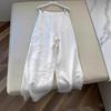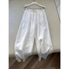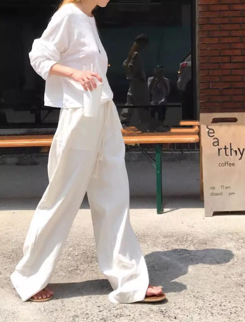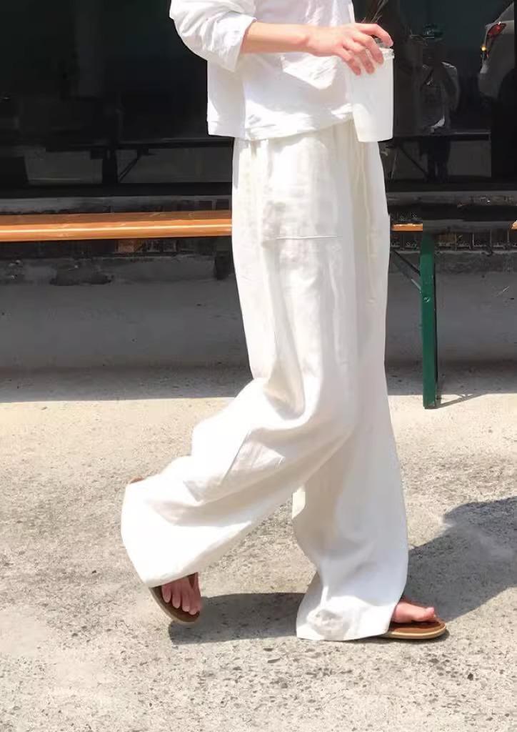 Pantalones blancos de algodón y lino para mujer, verano, delgados, estilo japonés, drapeado holgado, casuales, rectos, largos hasta el suelo, pantalones de lino de pierna ancha