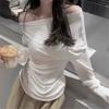 Camiseta Estilo Americano Vintage Tie-Dye Fuera del Hombro Malla Delgada Manga Larga Ajustada Adelgazante Top Protector Solar Trendy