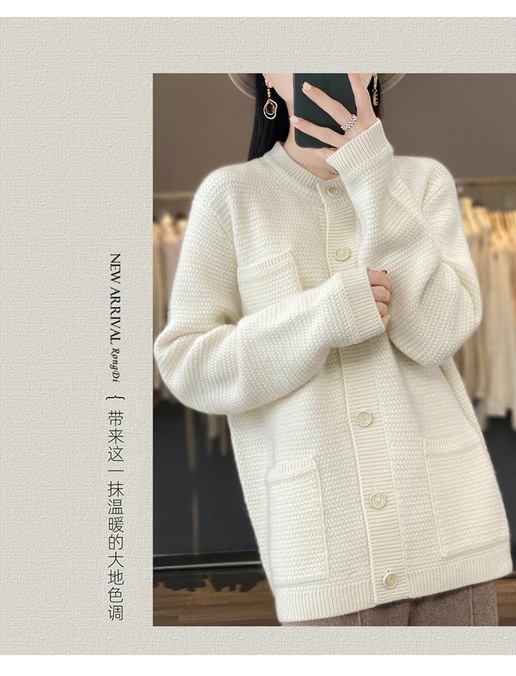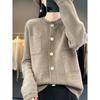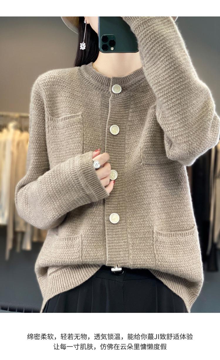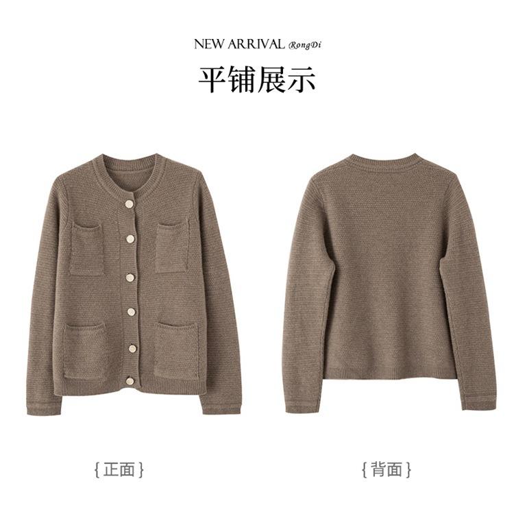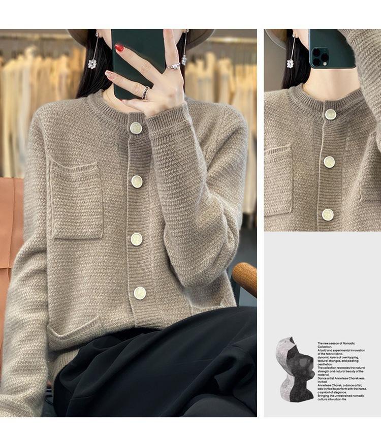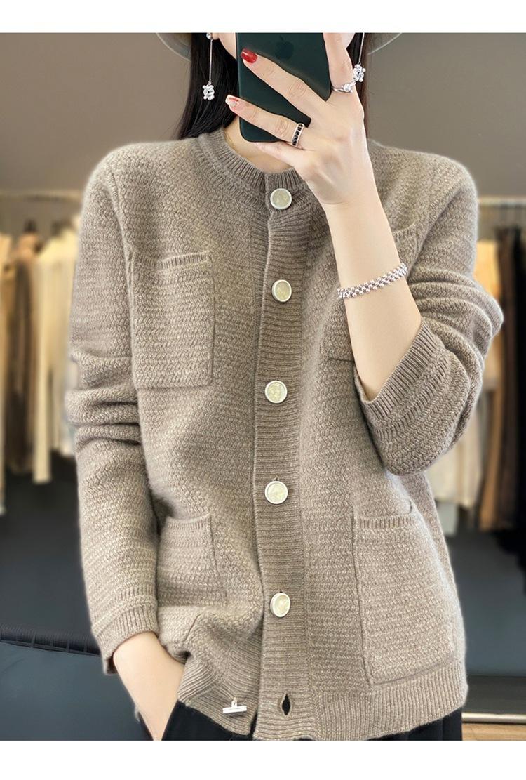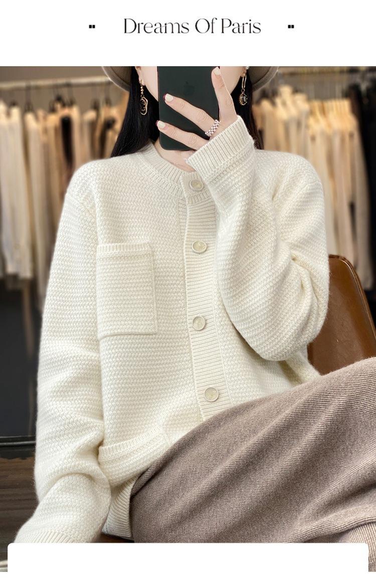 Otoño e invierno nuevo 2023 cárdigan de lana para mujer cuello redondo color sólido suelto con bolsillo abrigo suéter top de punto de cachemira
