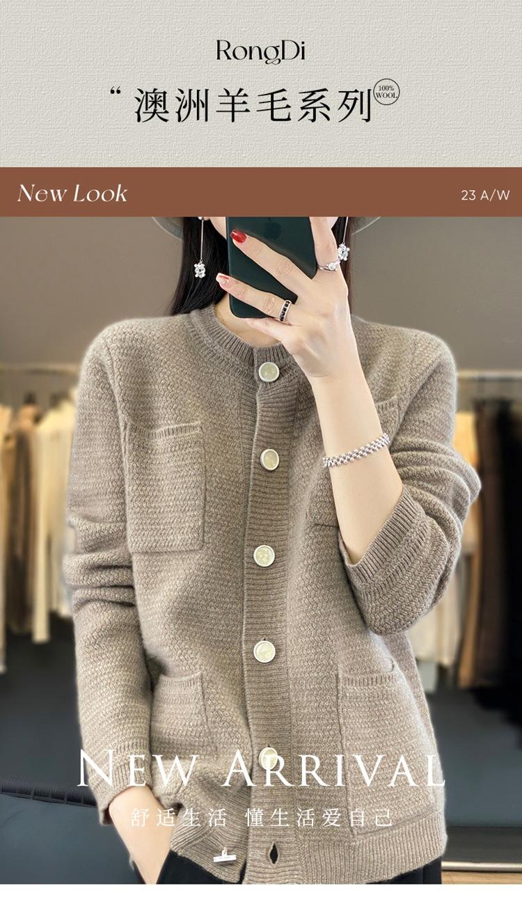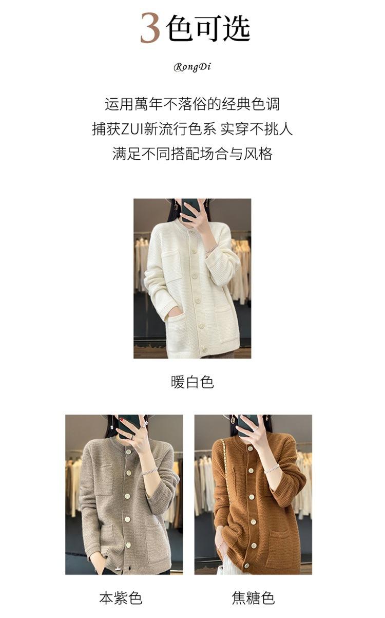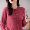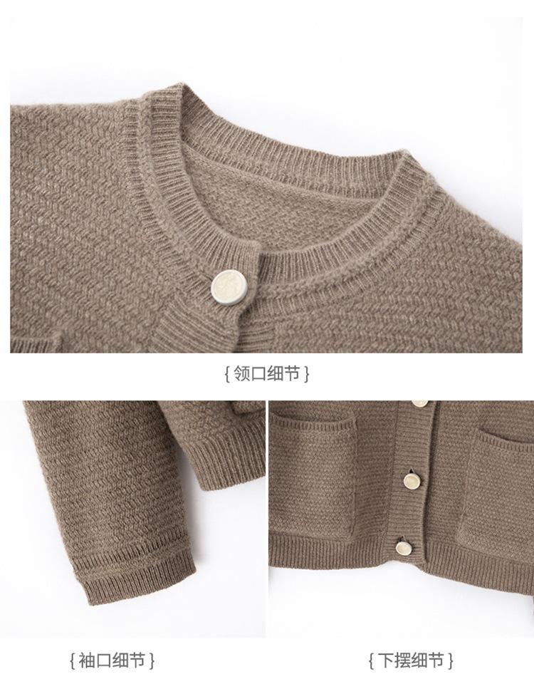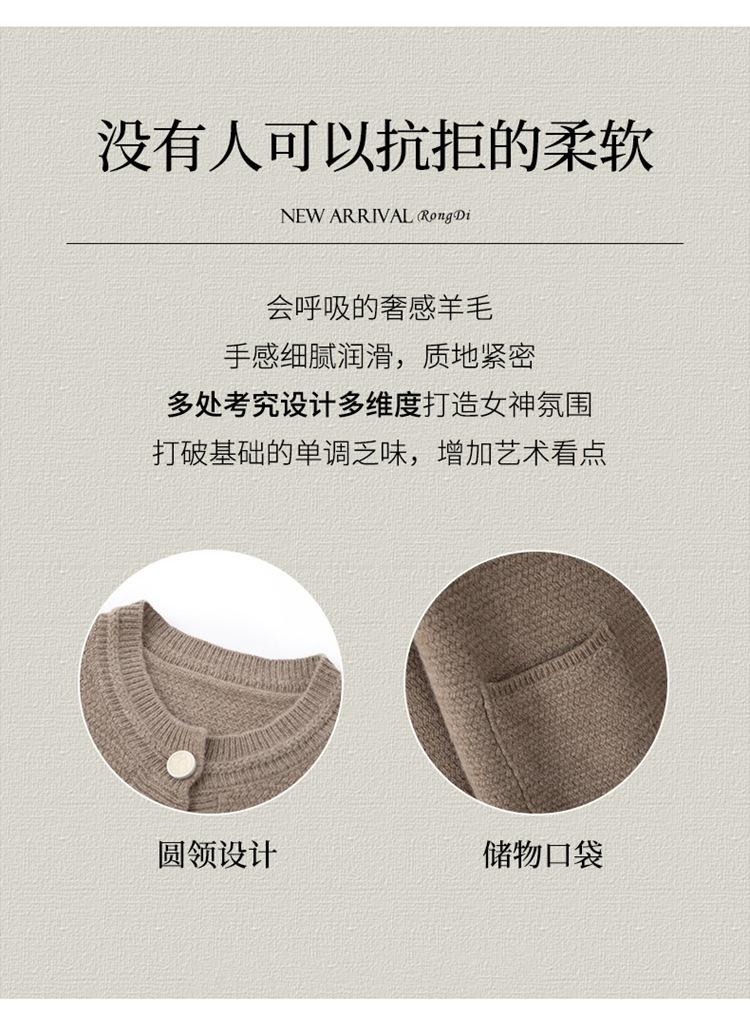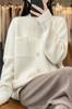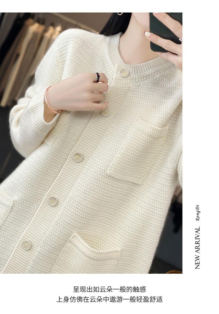 Otoño e invierno nuevo 2023 cárdigan de lana para mujer cuello redondo color sólido suelto con bolsillo abrigo suéter top de punto de cachemira