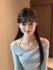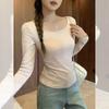 Otoño Estilo Coreano Hombro Descubierto Largo Medio Color Sólido Manga Larga Camiseta de Mujer 2022 Nuevo Verano Top Holgado