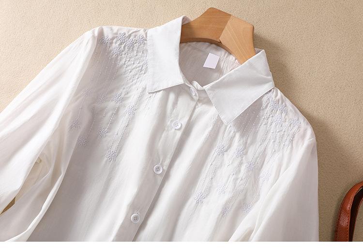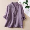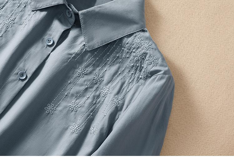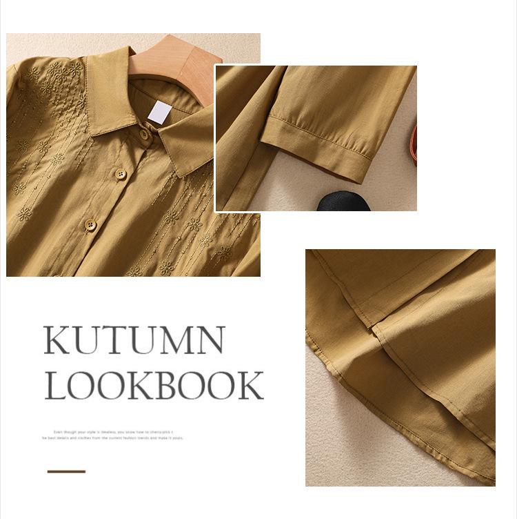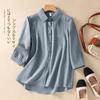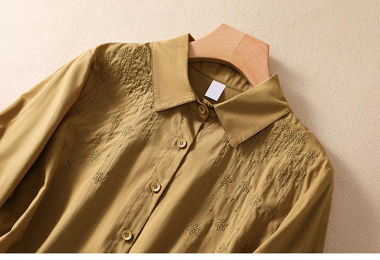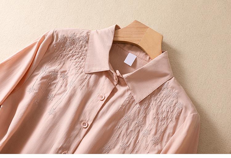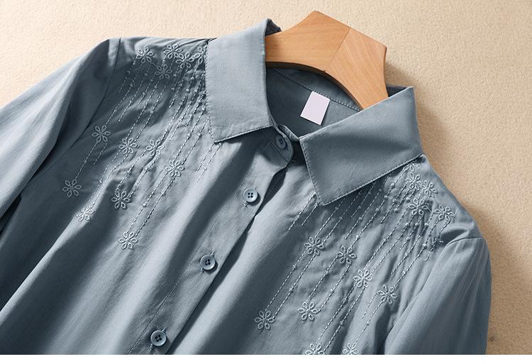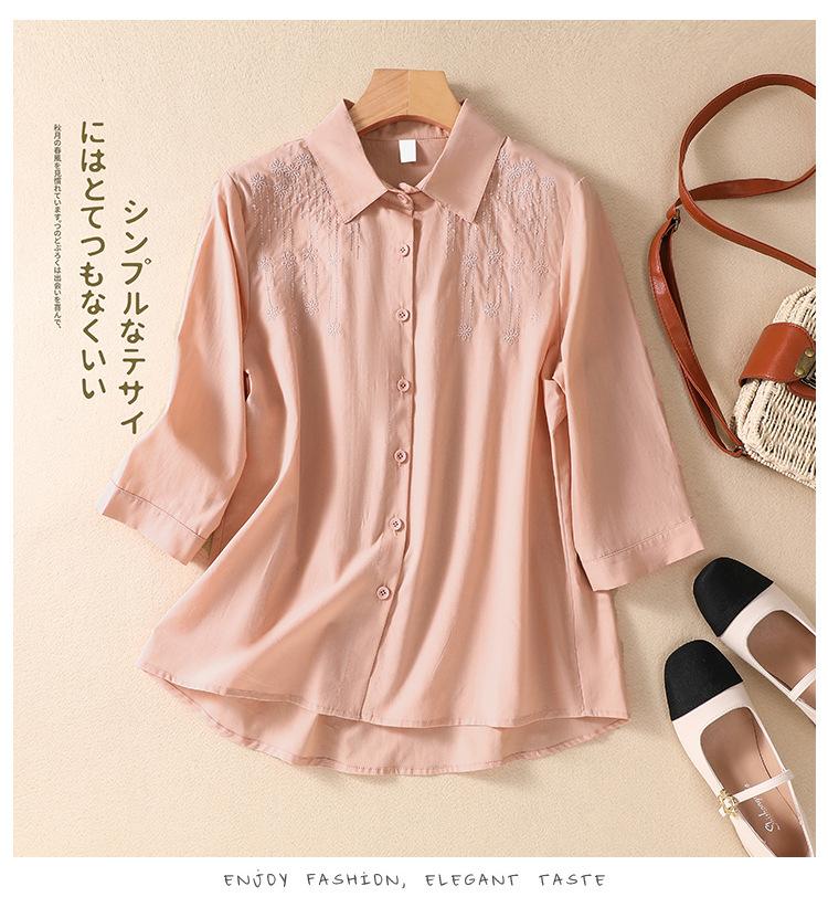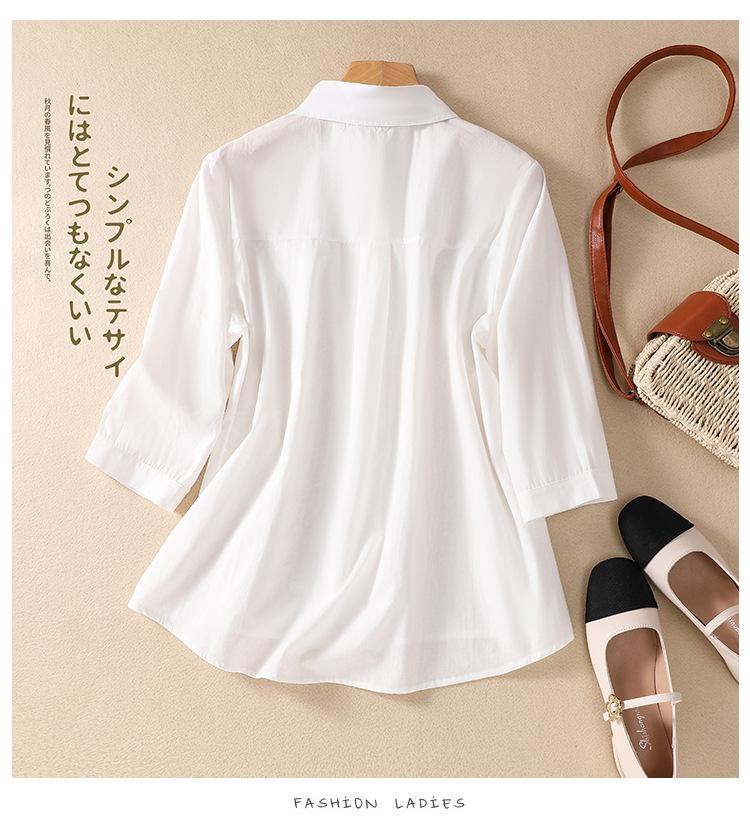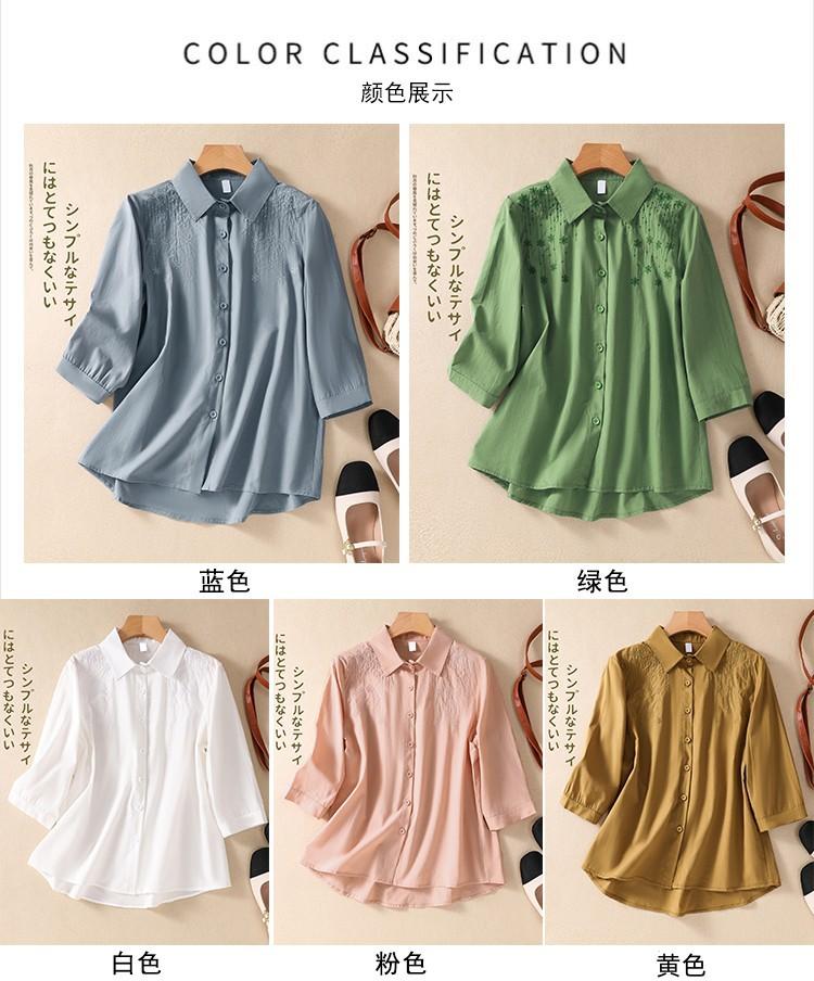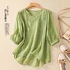 Camisa de Algodón y Lino Suelta Bordada de Tiro Real para Mujer, Literaria Retro Suelta Casual de Manga Tres Cuartos, Verano 2025 Nuevo Estilo