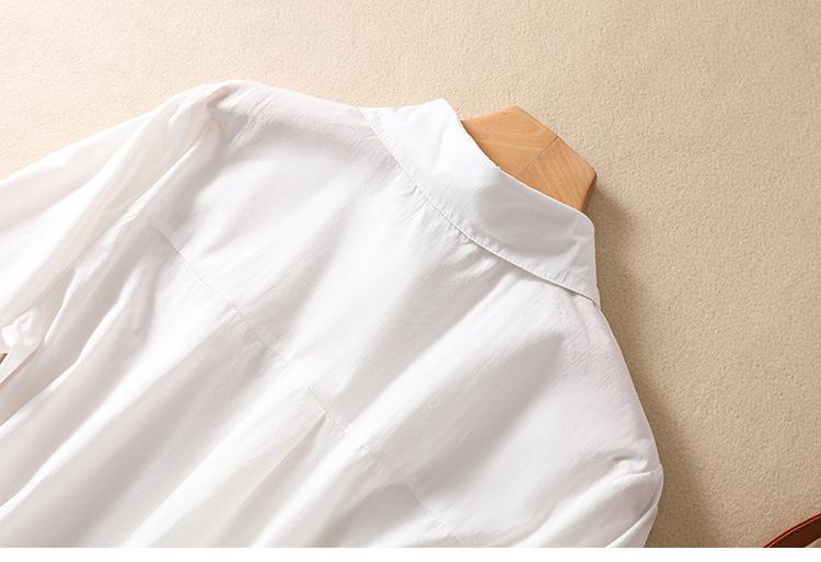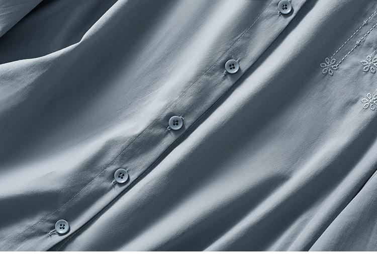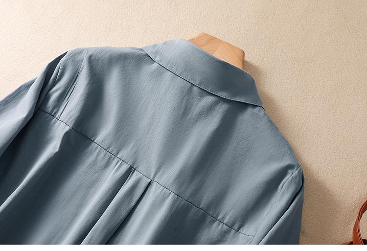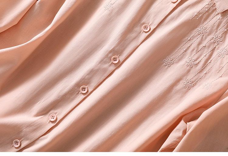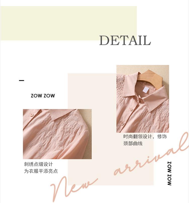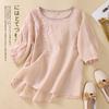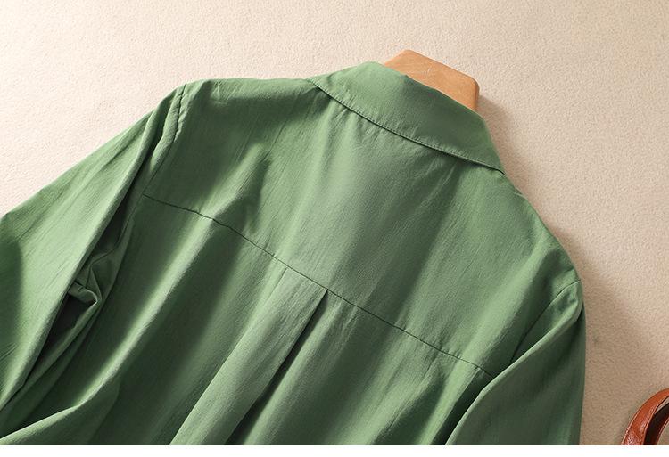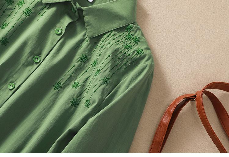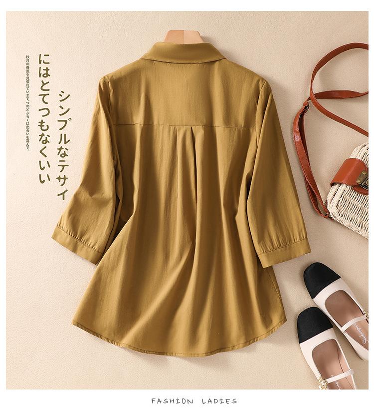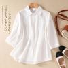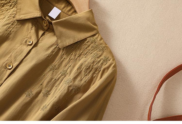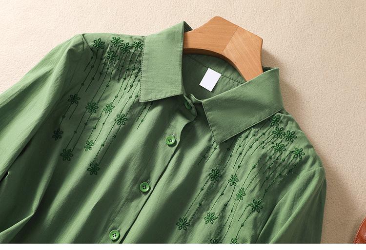 Camisa de Algodón y Lino Suelta Bordada de Tiro Real para Mujer, Literaria Retro Suelta Casual de Manga Tres Cuartos, Verano 2025 Nuevo Estilo