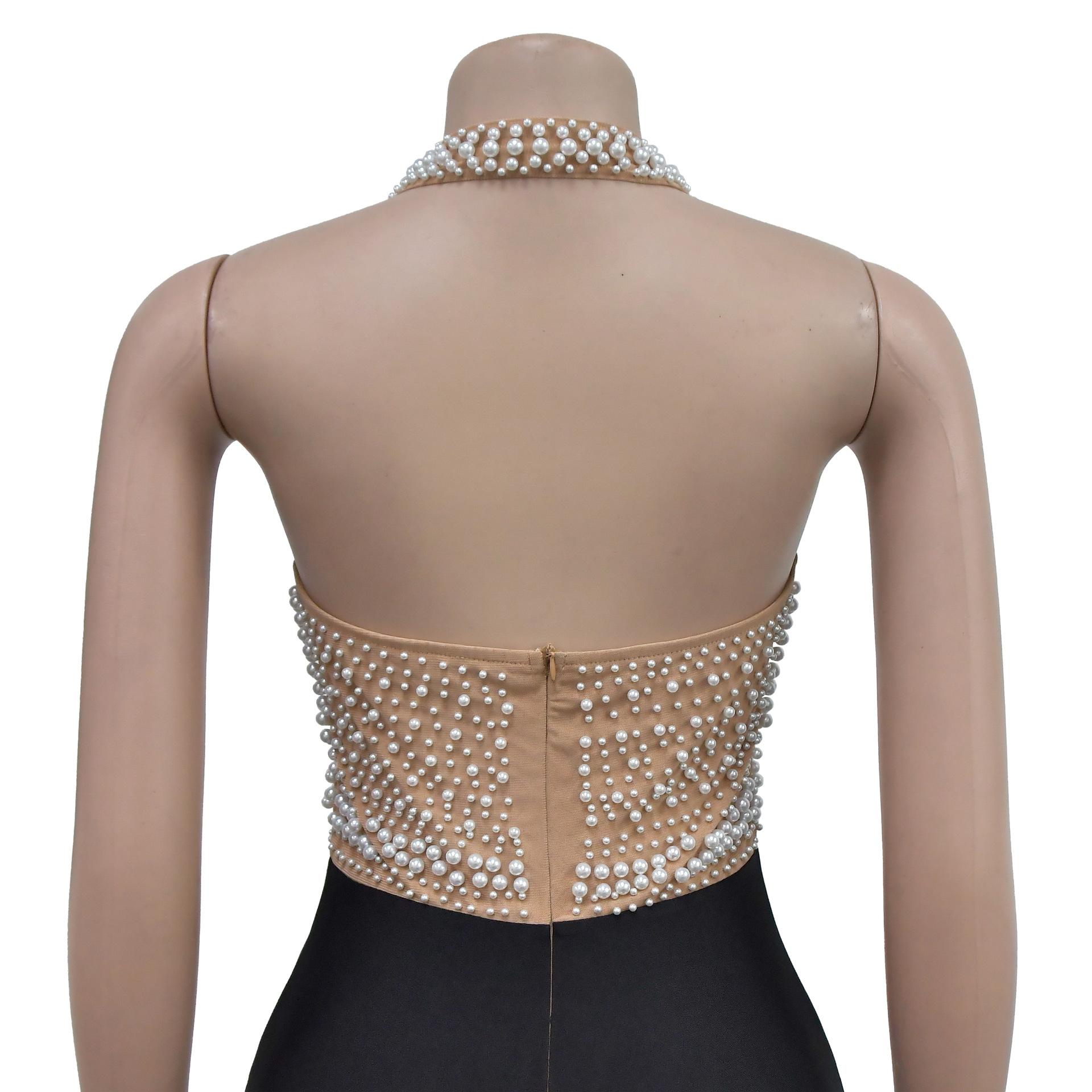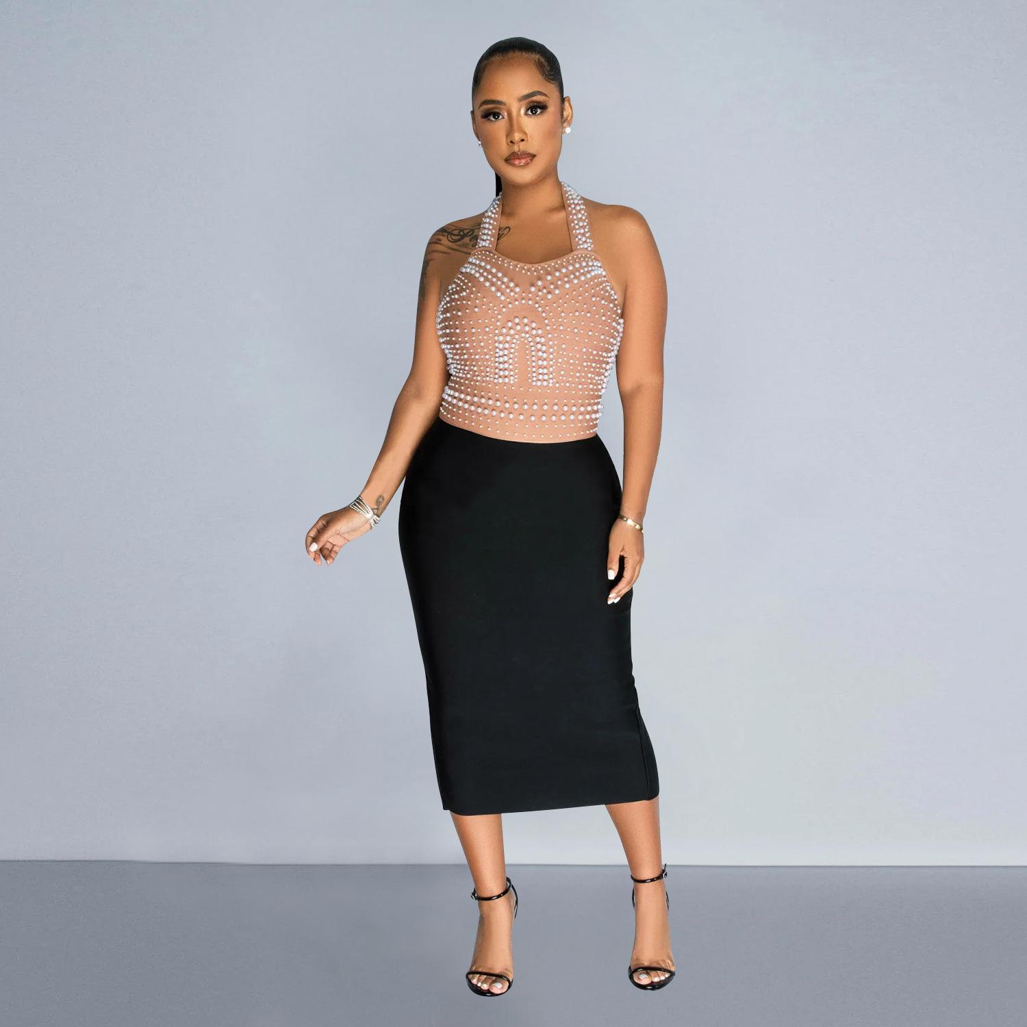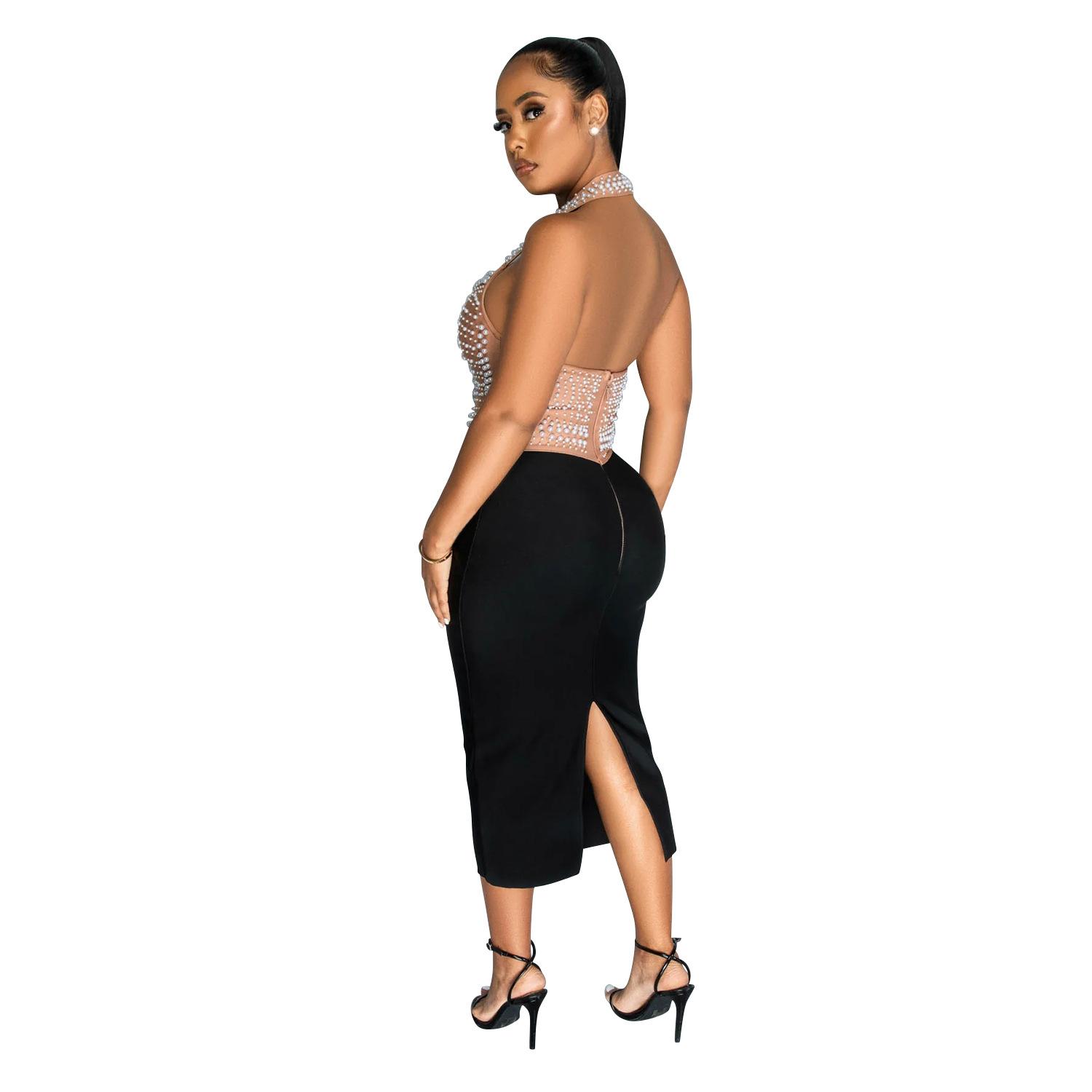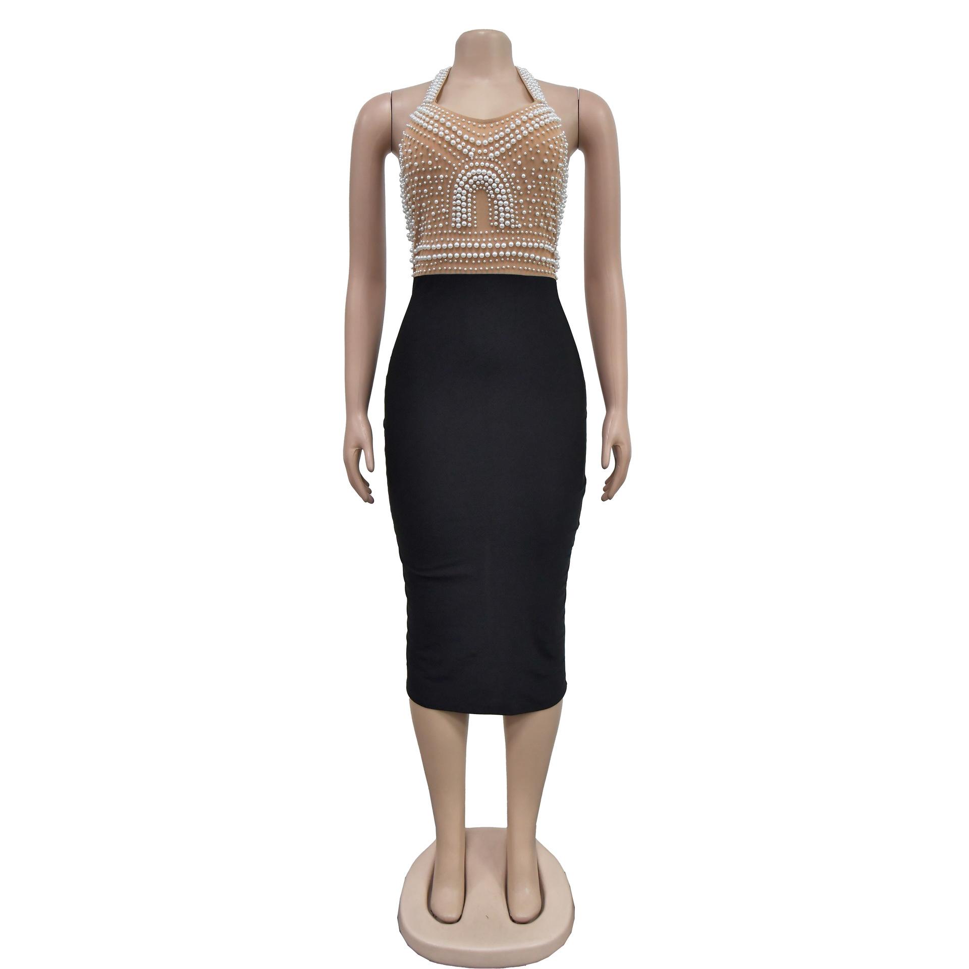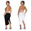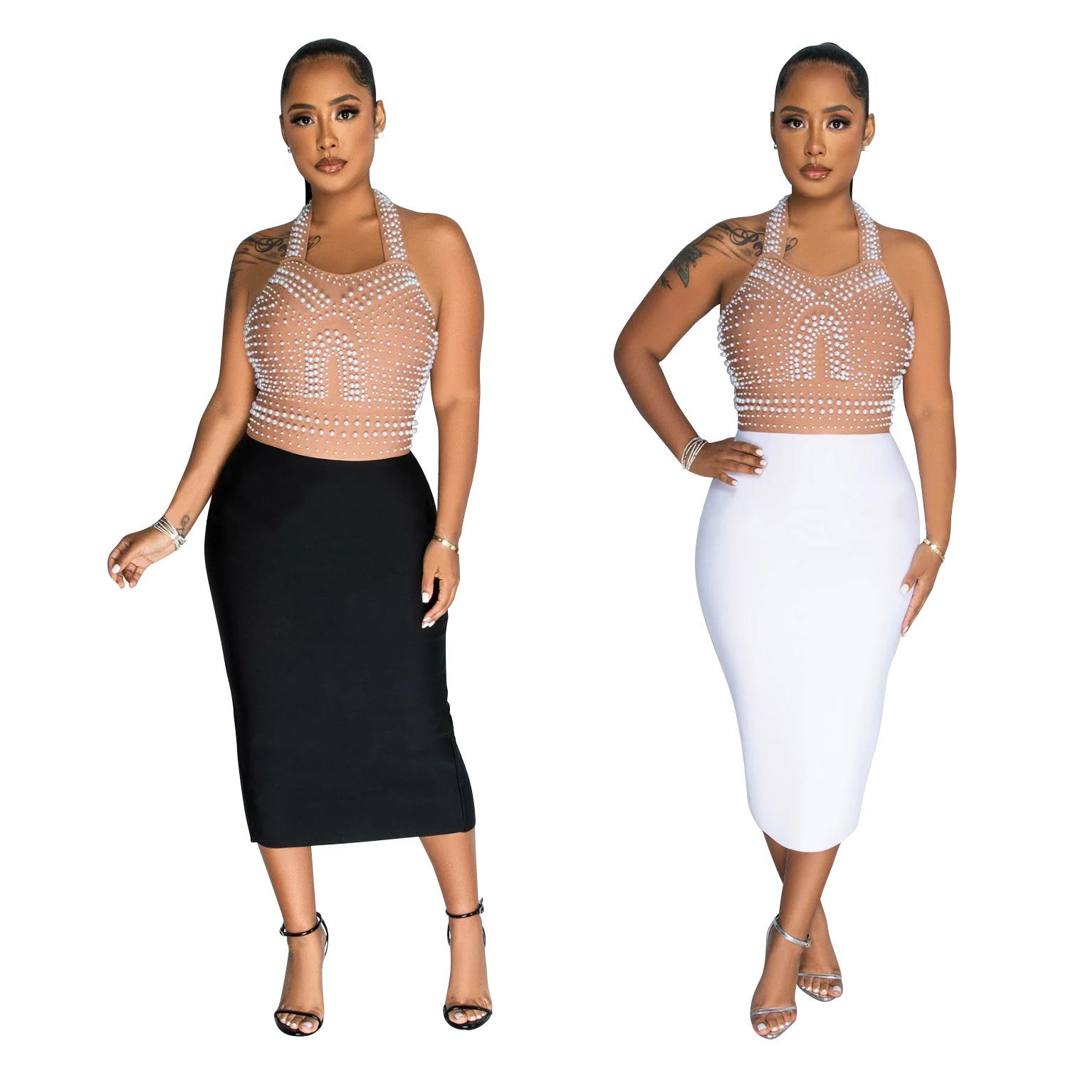 C6873 Transfronterizo Aliexpress Amazon Moda Europea y Americana Vestido de Falda Larga Halter de Malla de Color Sólido con Diamantes Calientes para Mujer
