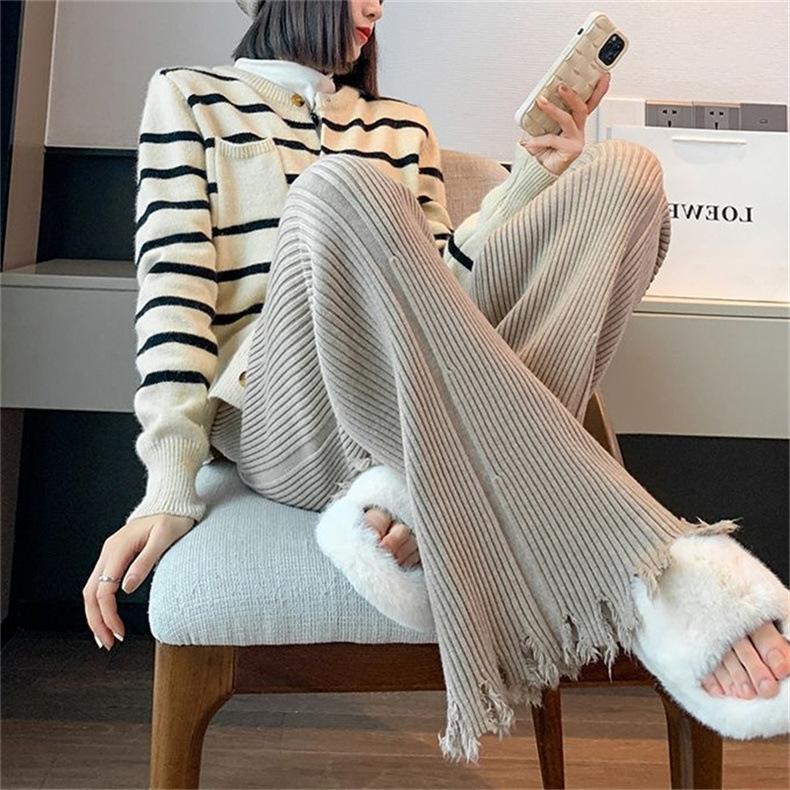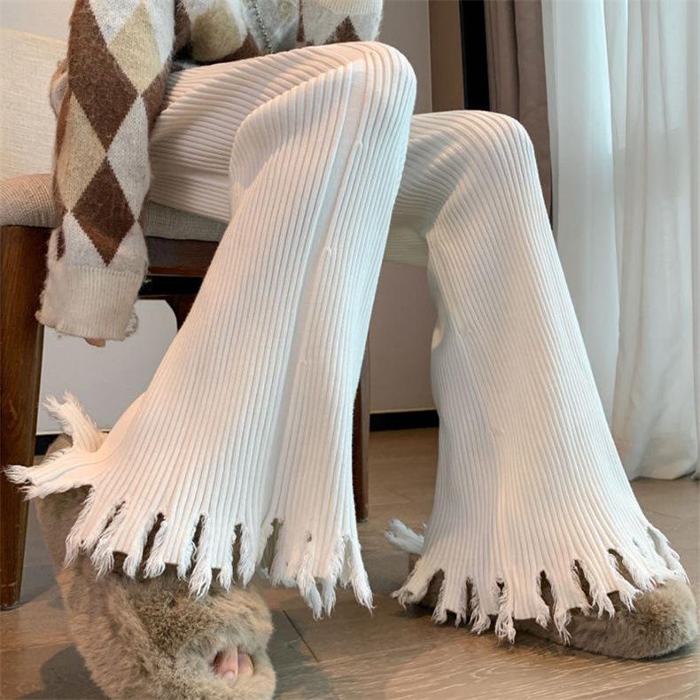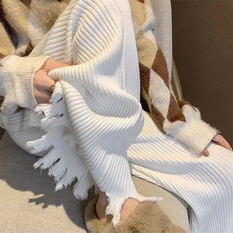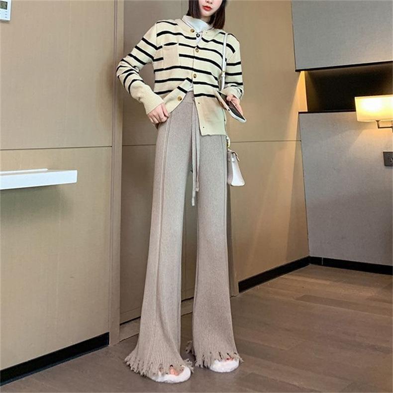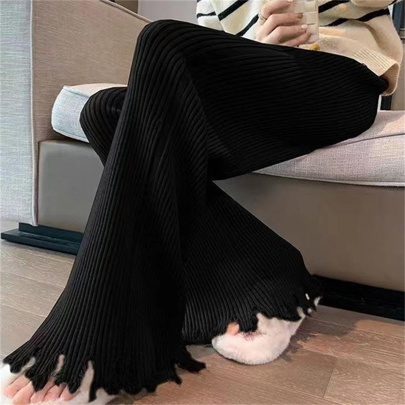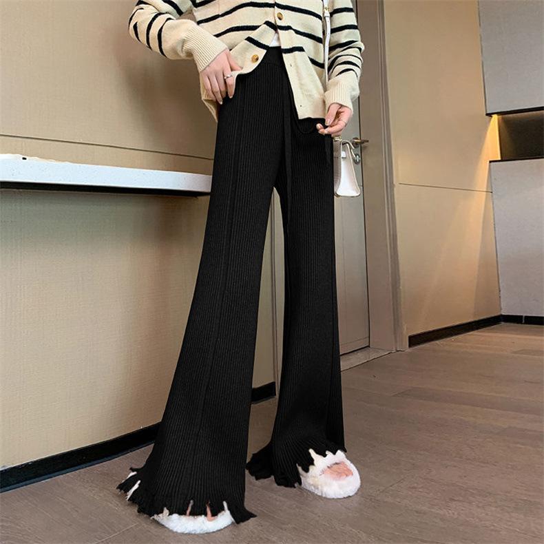 Pantalones de Punto de Color Sólido para Mujer 2025 Nuevo Otoño Casual Borla Cómodo Drapeado Holgado Cintura Alta Bootcut para Mujer
