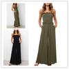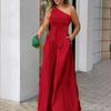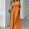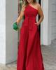 Mono Casual de Verano para Mujer Europeo y Americano 2023 con Cuello Oblicuo, Cordones Laterales Unilaterales, Irregular con Hombro Descubierto, Cintura Alta, Bolsillos y Pierna Ancha