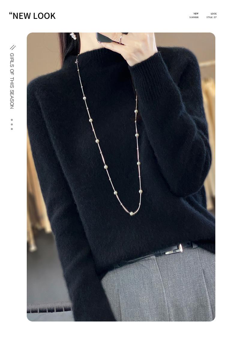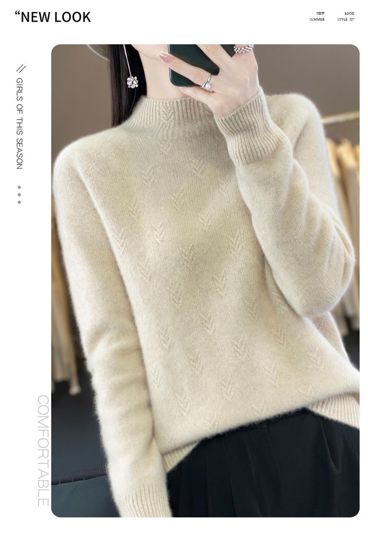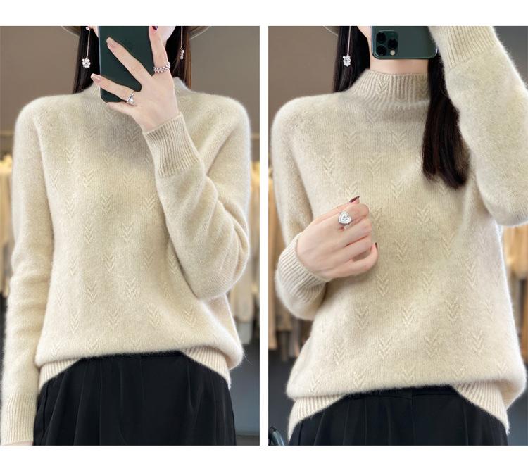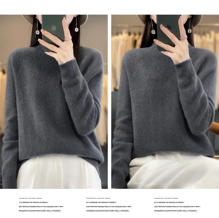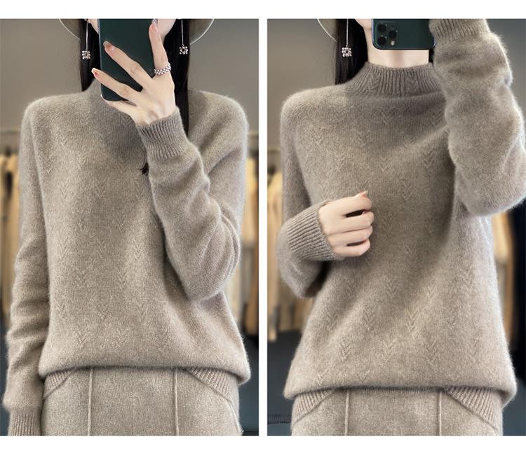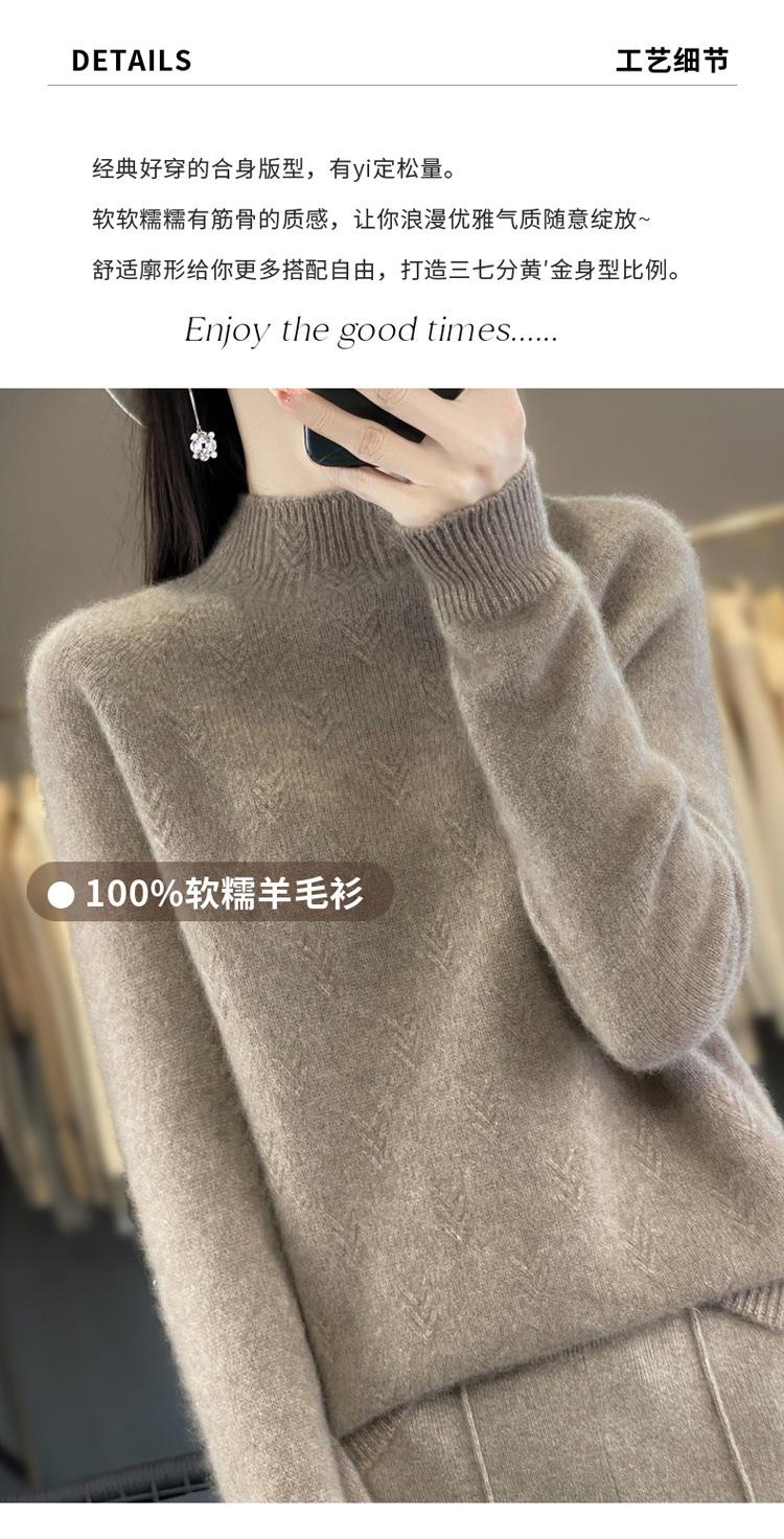 Primera Línea Listo Para Usar Lana Pura Otoño e Invierno 2025 Nuevo Suéter Corto de Cuello Alto Medio para Mujer Ropa de Punto para Fondo