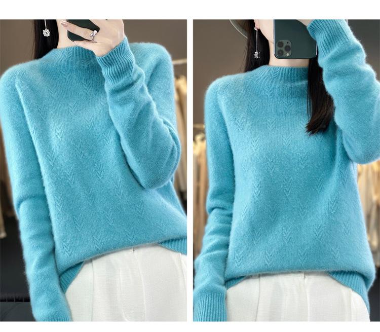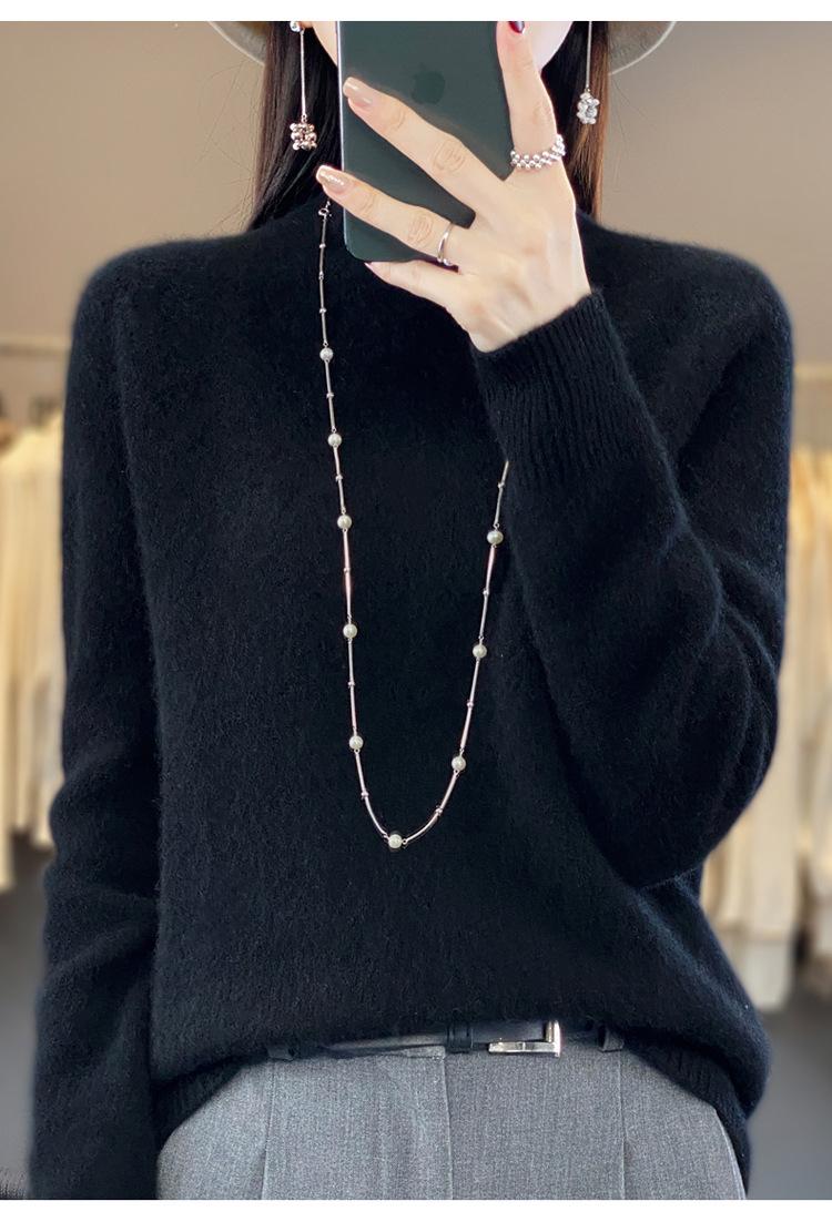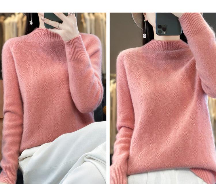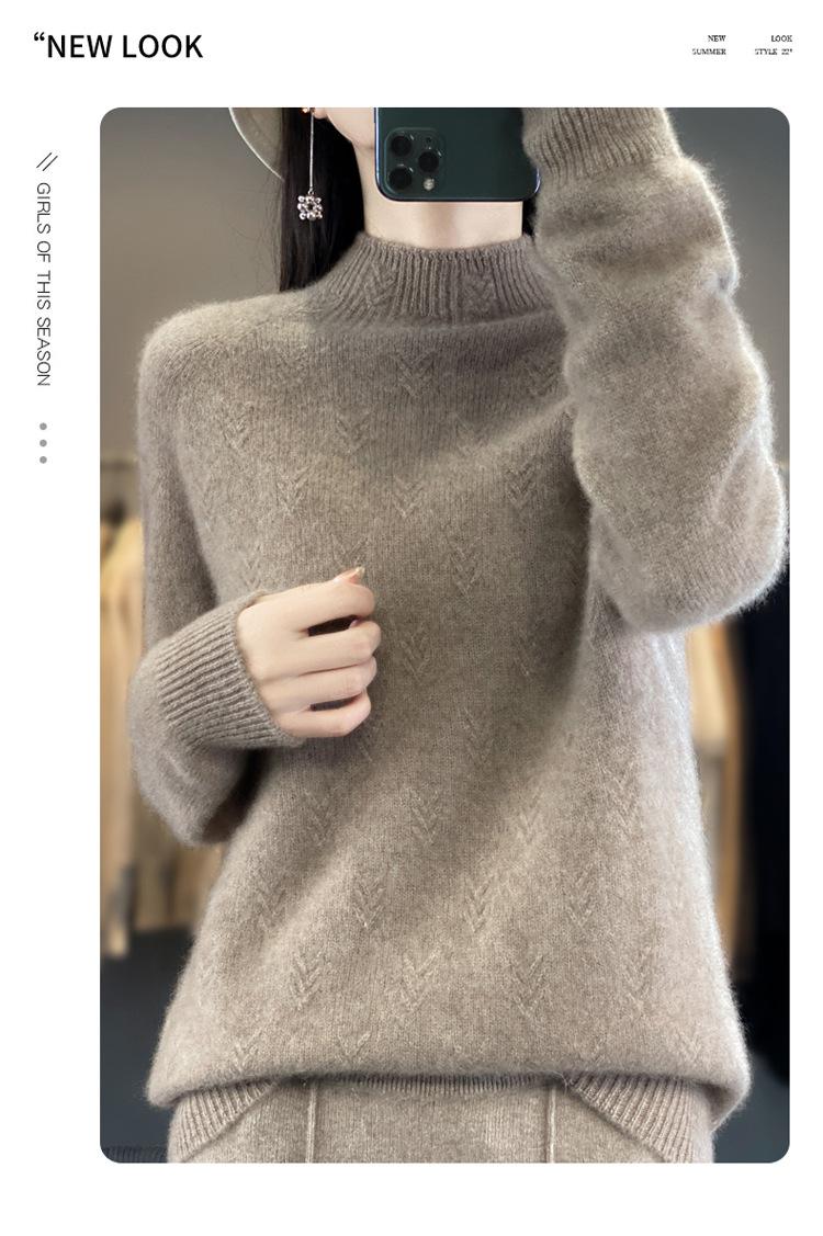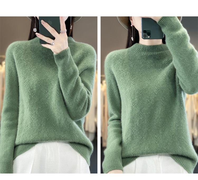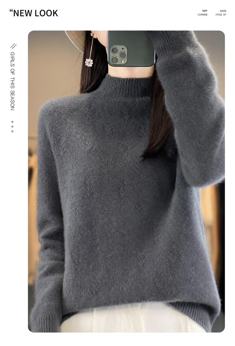 Primera Línea Listo Para Usar Lana Pura Otoño e Invierno 2025 Nuevo Suéter Corto de Cuello Alto Medio para Mujer Ropa de Punto para Fondo