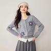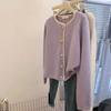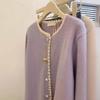 Cárdigan de punto morado de encaje de cuello redondo estilo Chanel primavera 2024 para mujer, diseño de abrigo suéter