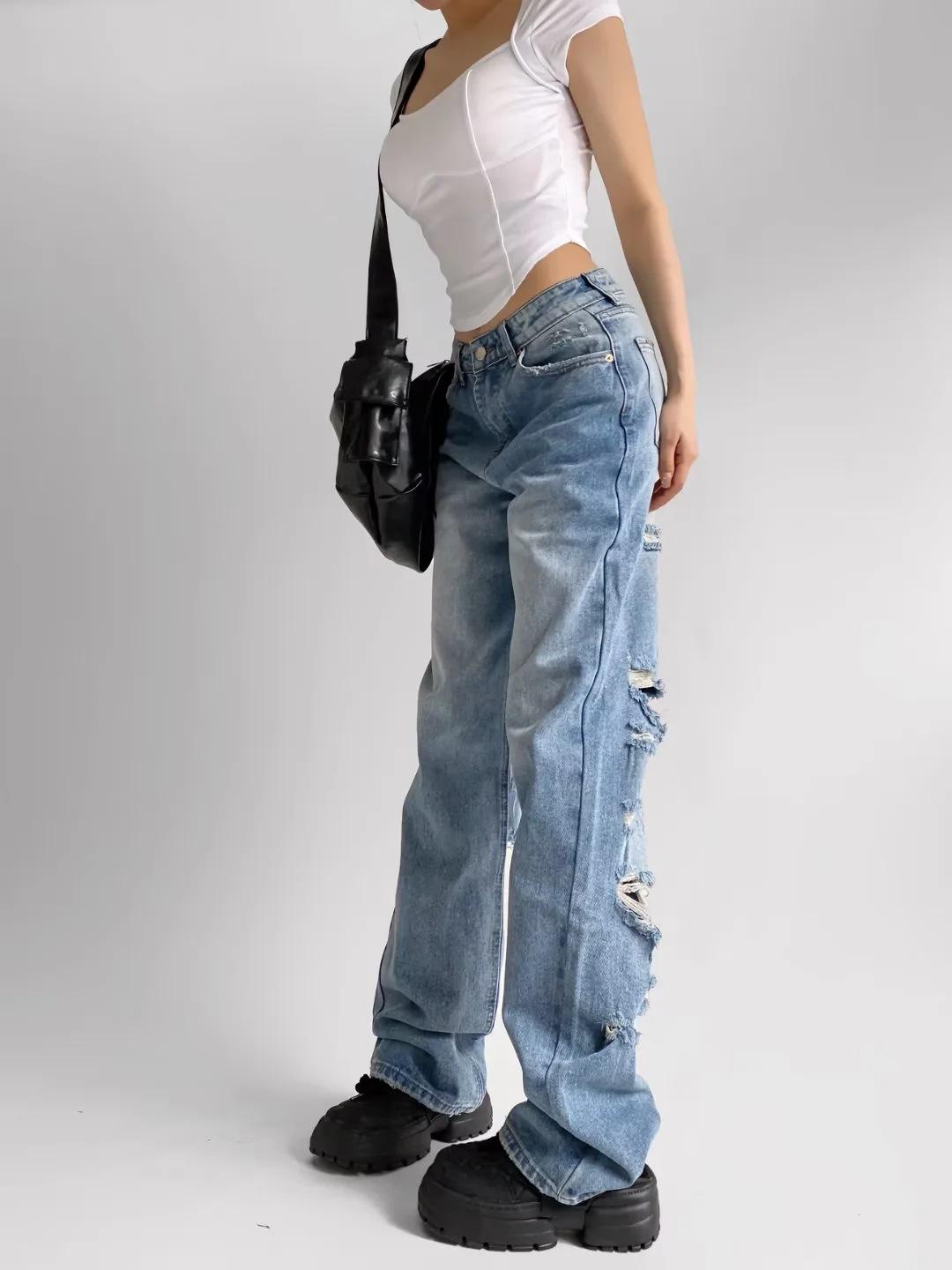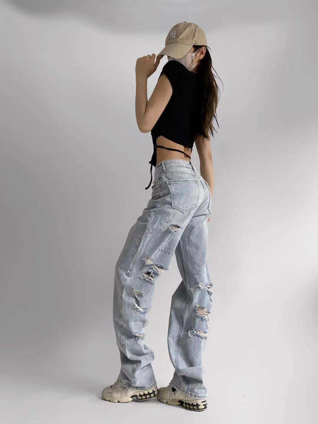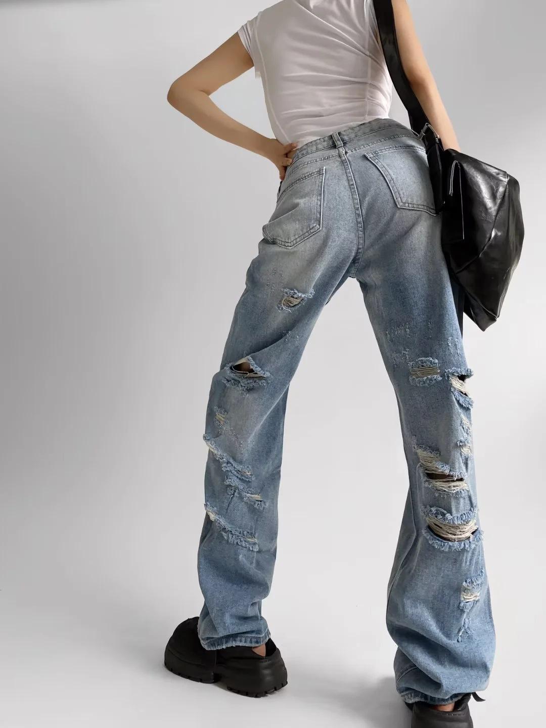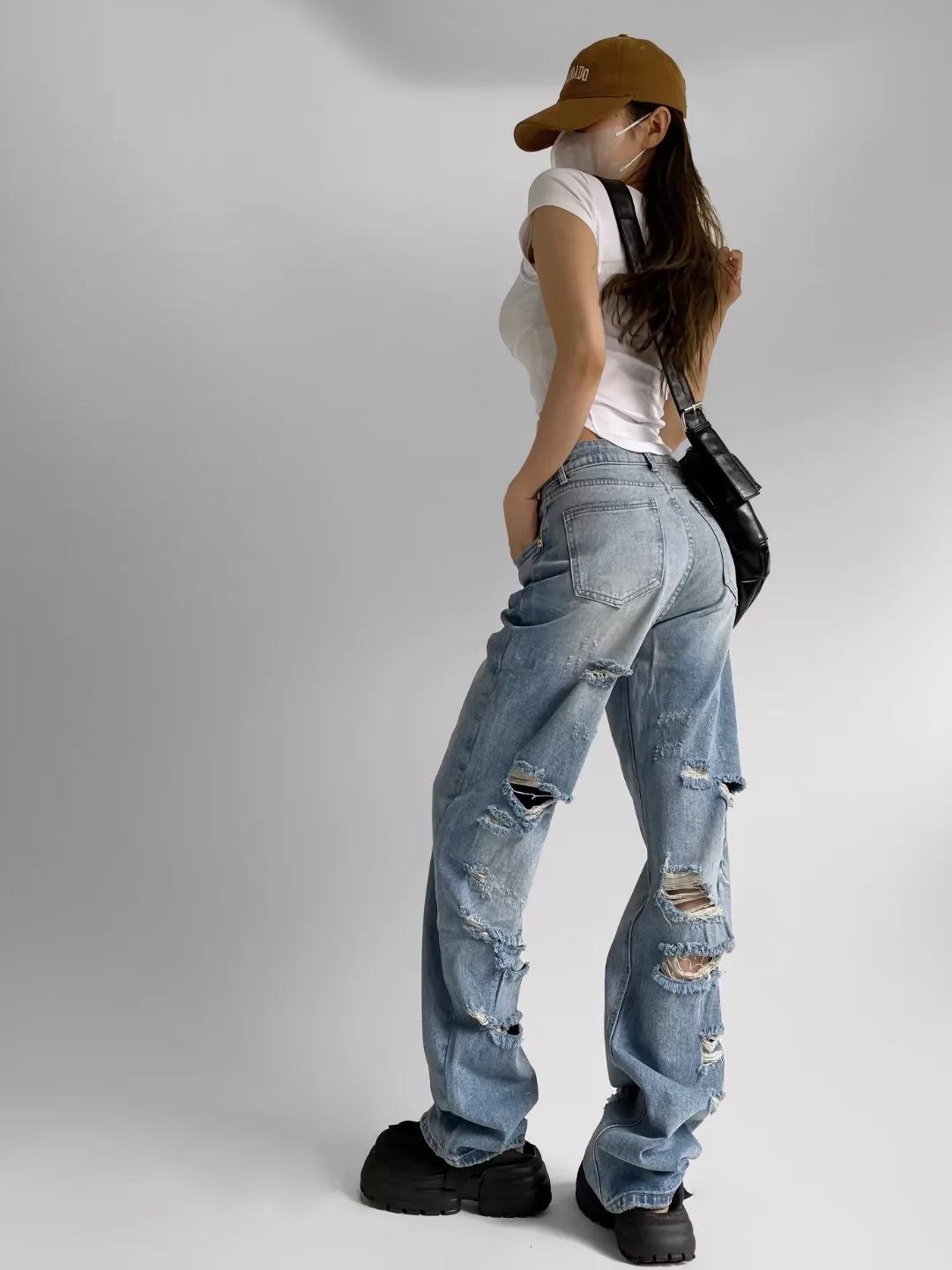 Pantalones vaqueros rasgados estilo americano para mujer, estilo Hare Hare, cintura alta, adelgazantes, rectos, novedad de verano 2023