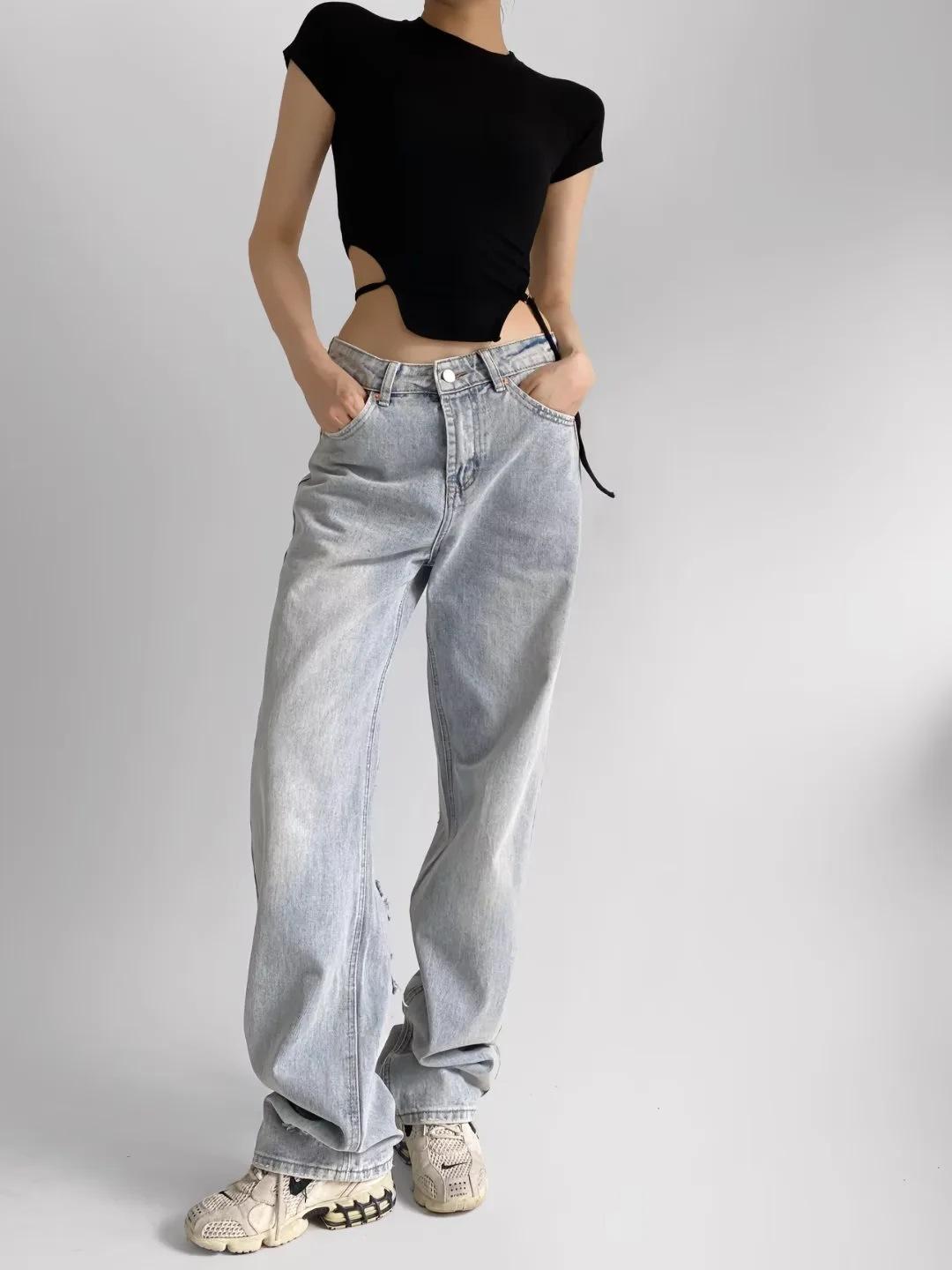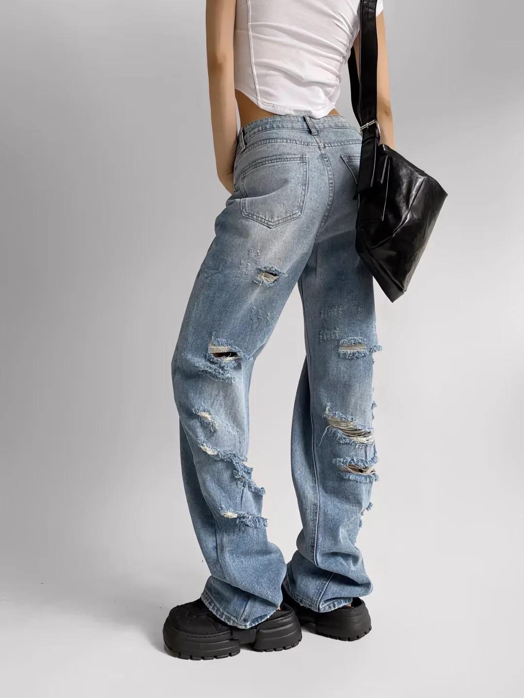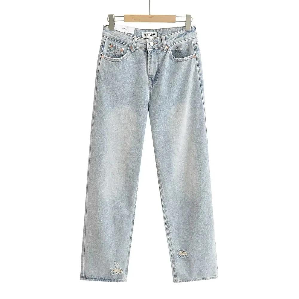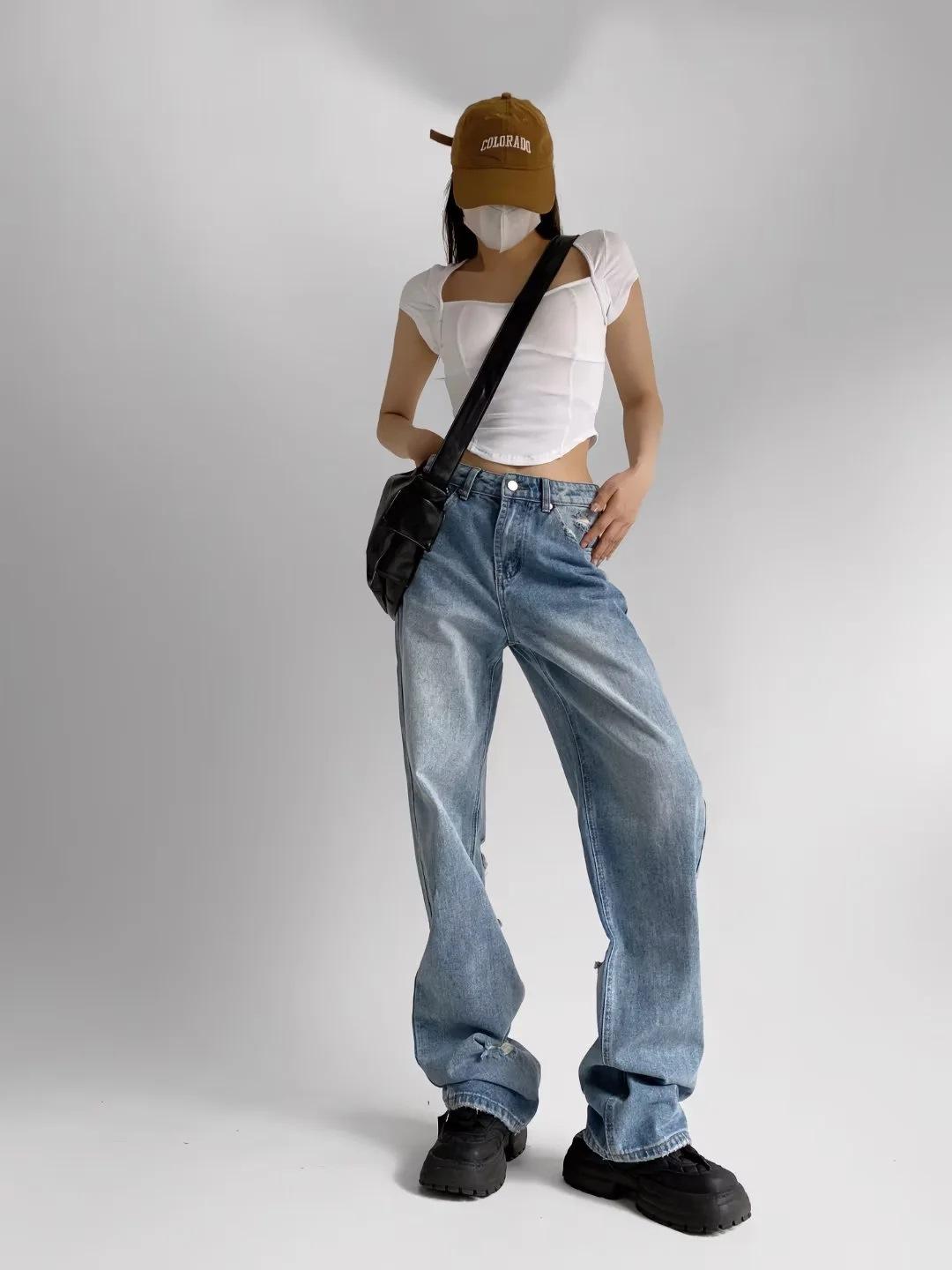 Pantalones vaqueros rasgados estilo americano para mujer, estilo Hare Hare, cintura alta, adelgazantes, rectos, novedad de verano 2023