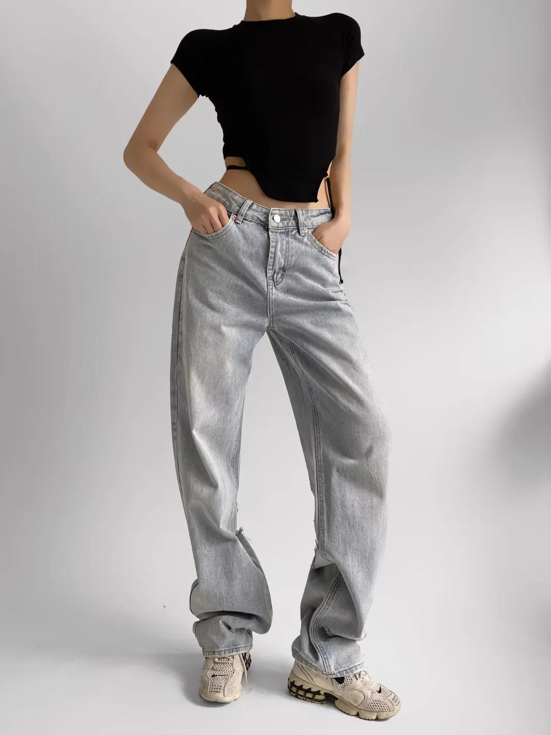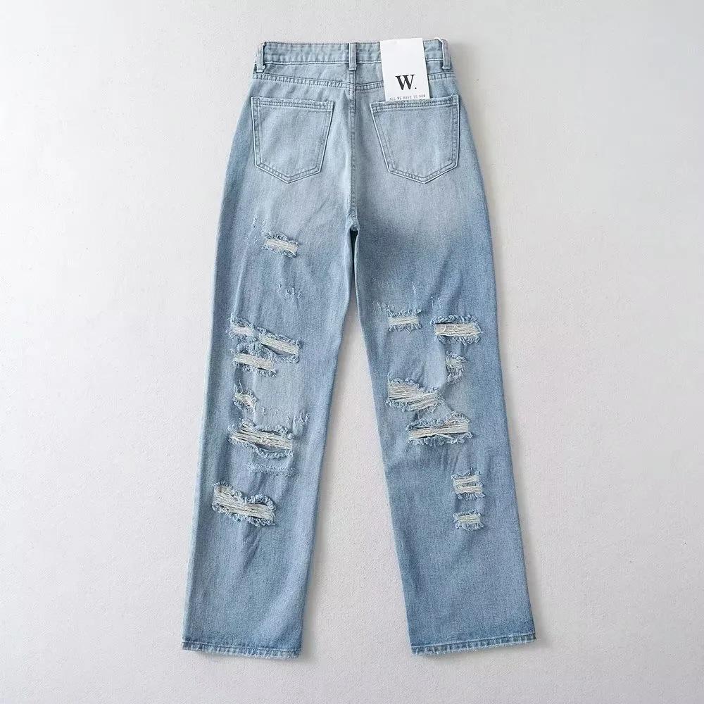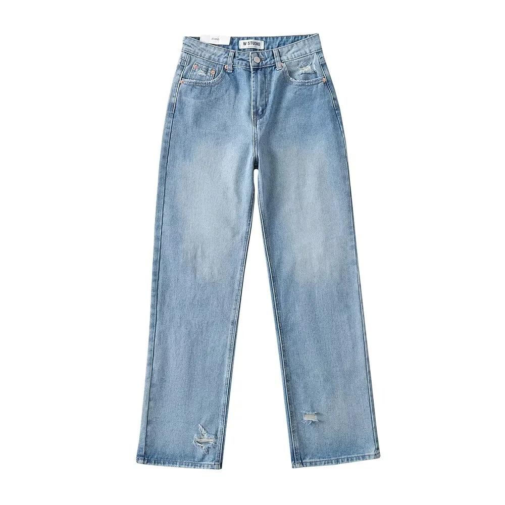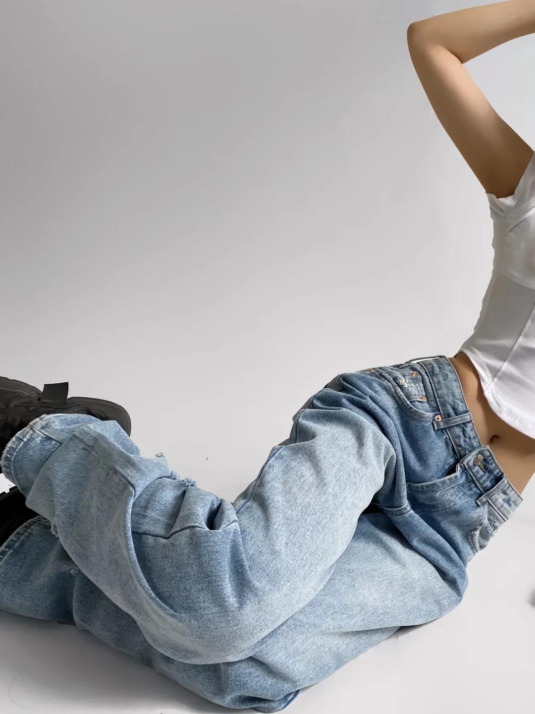 Pantalones vaqueros rasgados estilo americano para mujer, estilo Hare Hare, cintura alta, adelgazantes, rectos, novedad de verano 2023