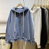 Foto Real de Sudadera con Capucha Estilo Harajuku Plus Terciopelo y Gruesa para Mujer Otoño e Invierno Holgada Tops de Manga Larga con Media Cremallera Comercio Exterior