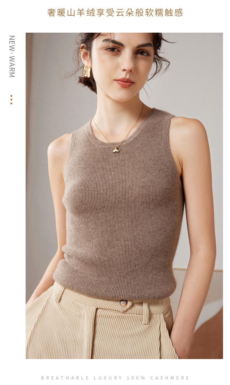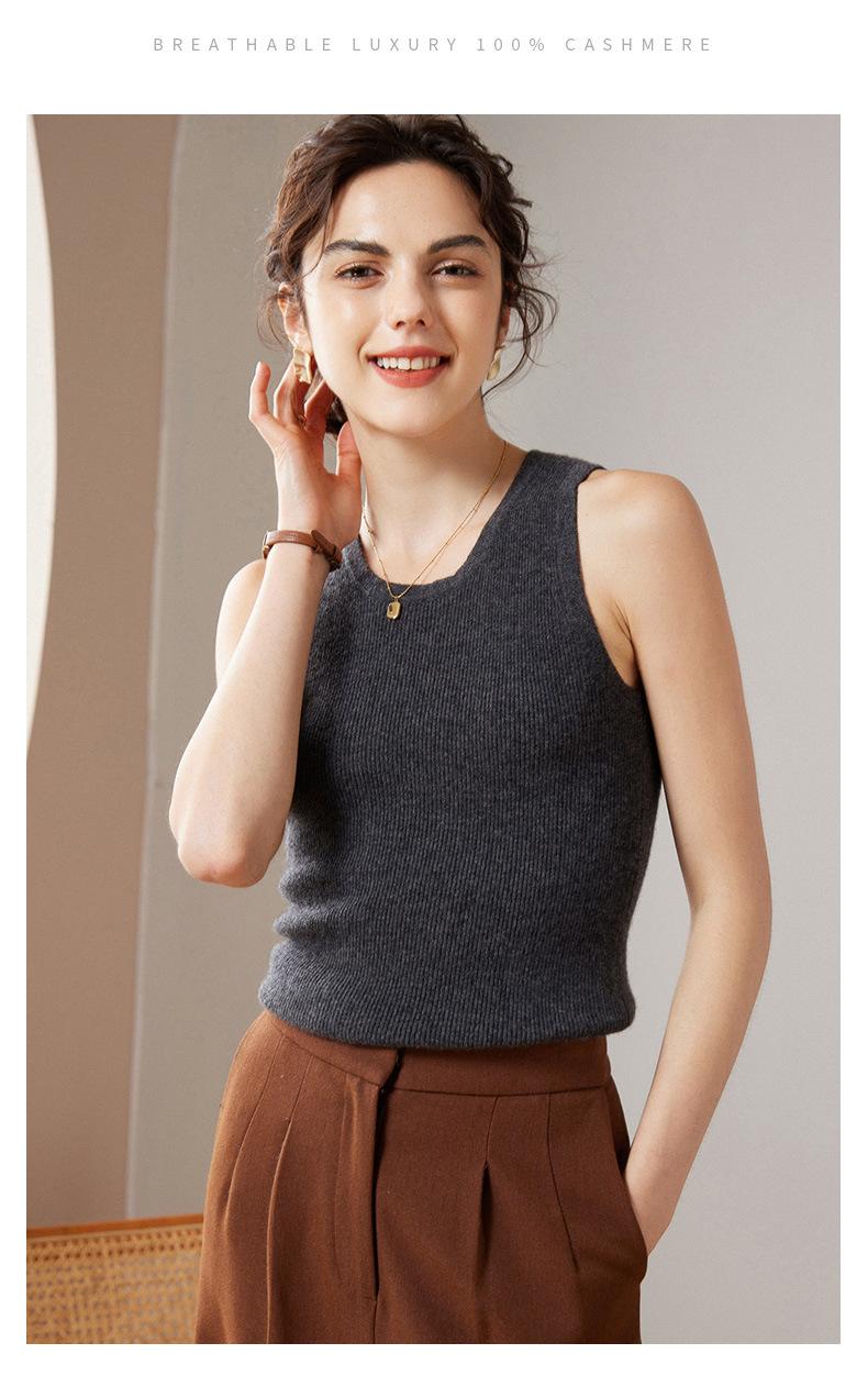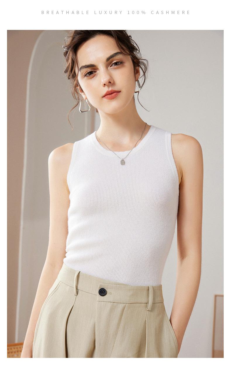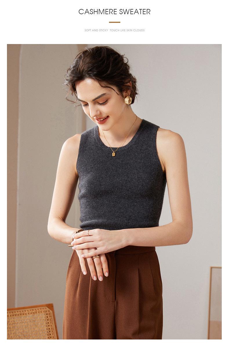 Chaleco de cachemira 100% pura para mujer, prenda interior de primavera/otoño/invierno, de punto ajustado, sin mangas, con escote en U apilado y tirantes pequeños.